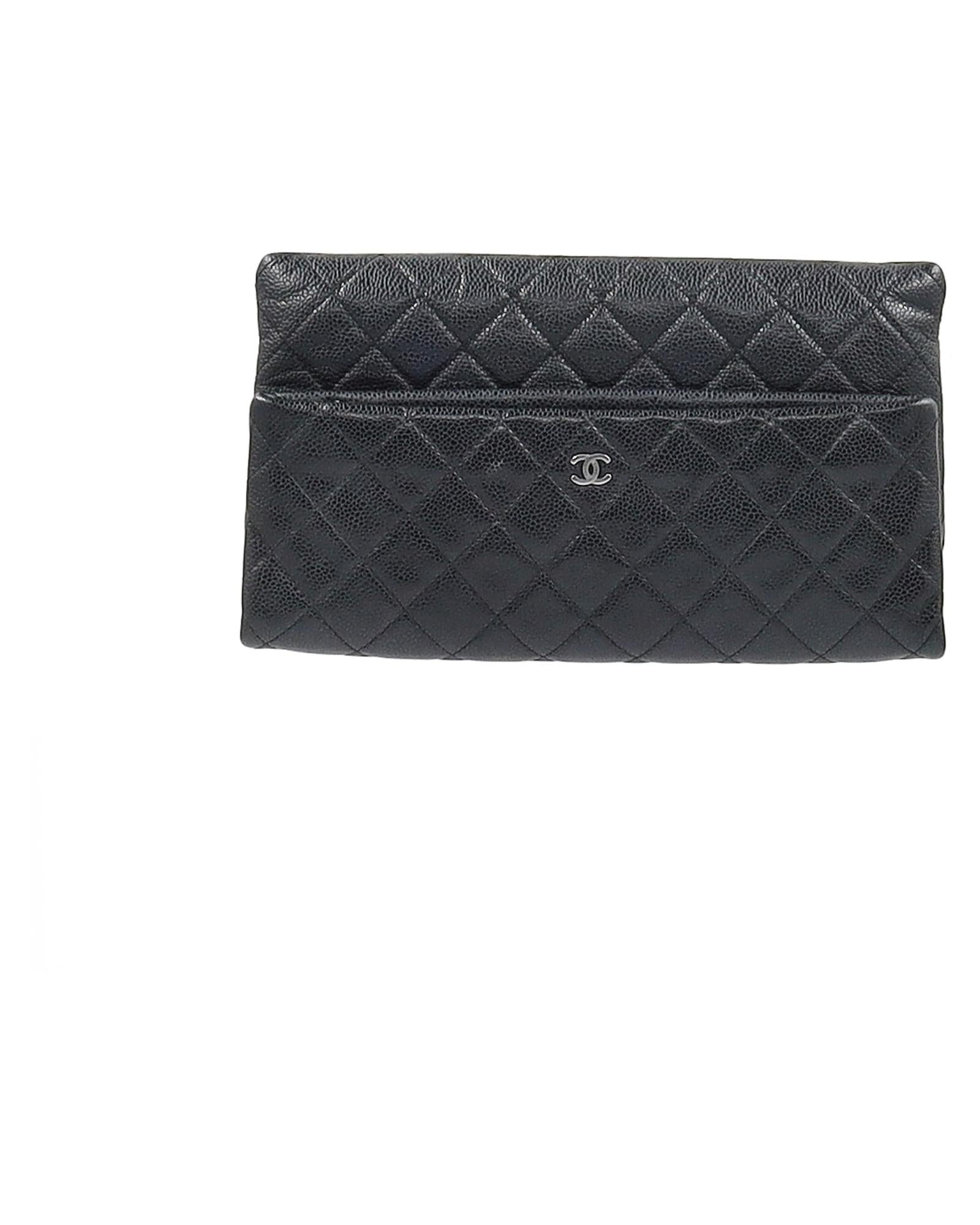 - Chanel Beauty CC Quilted Caviar Clutch in Black Leather