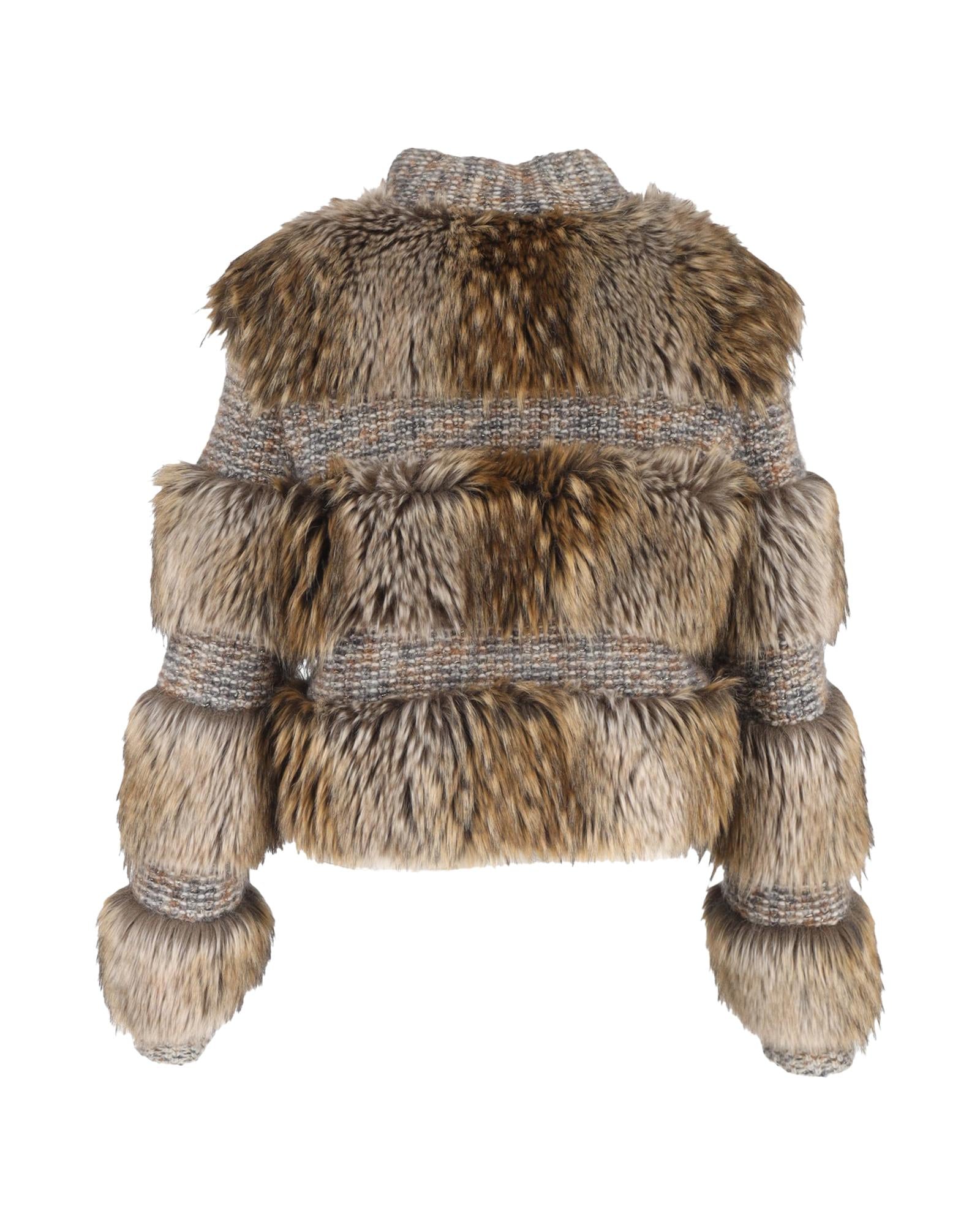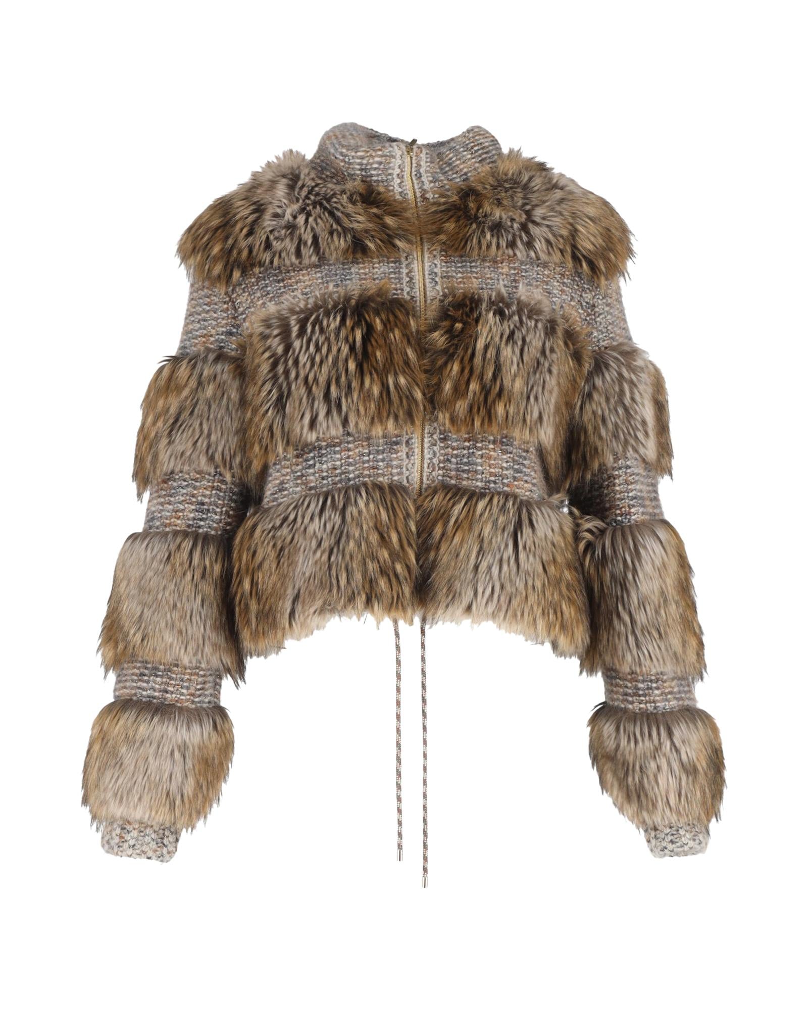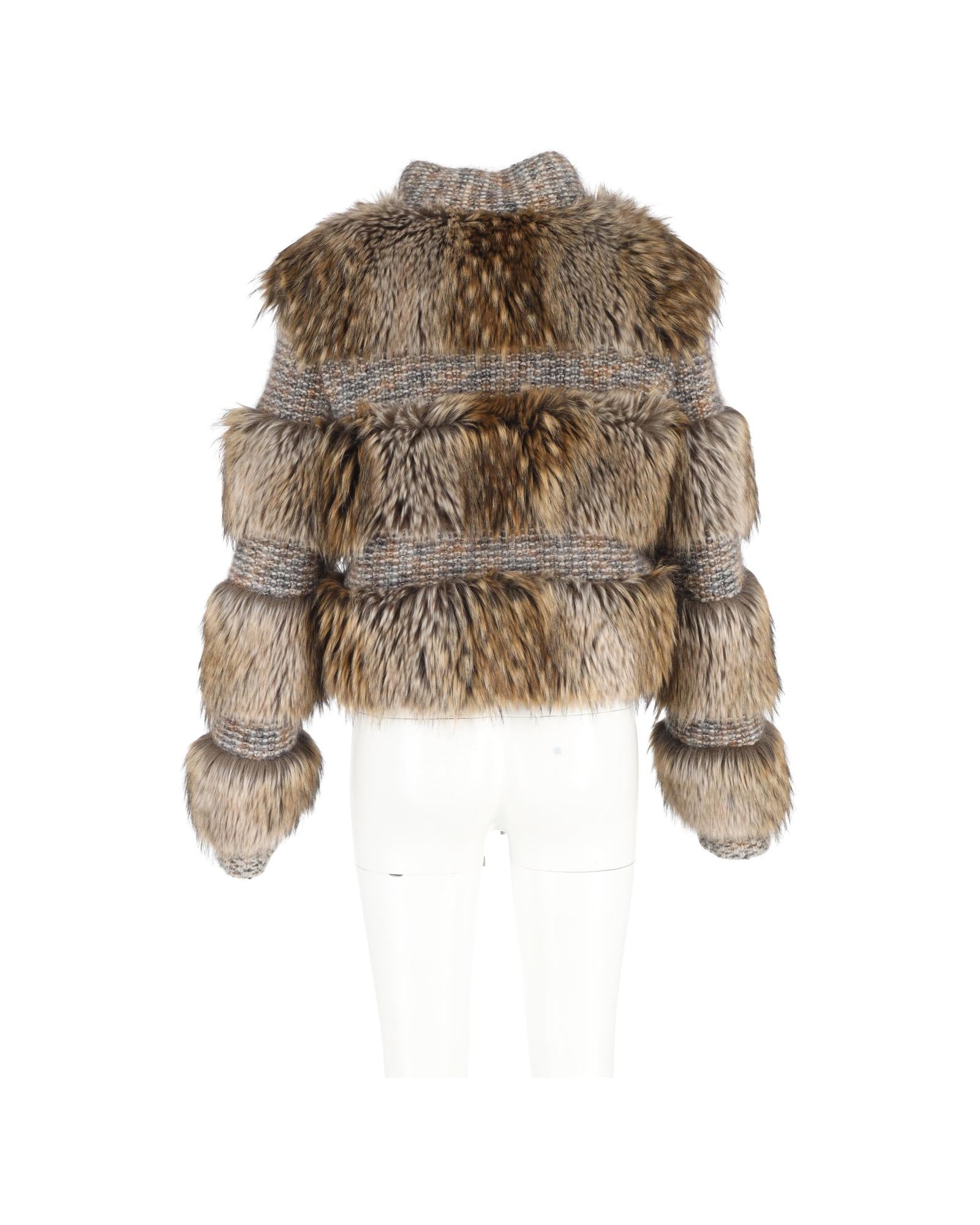 • Chanel Tweed and Faux Fur Jacket in Brown Cashmere