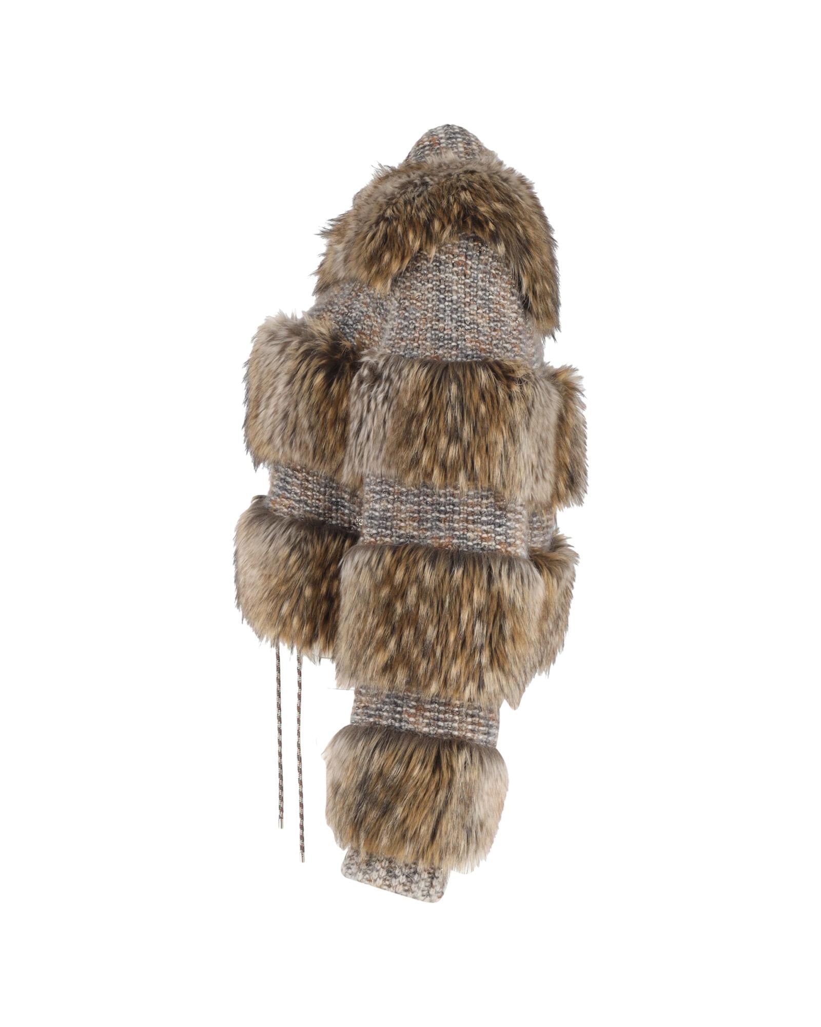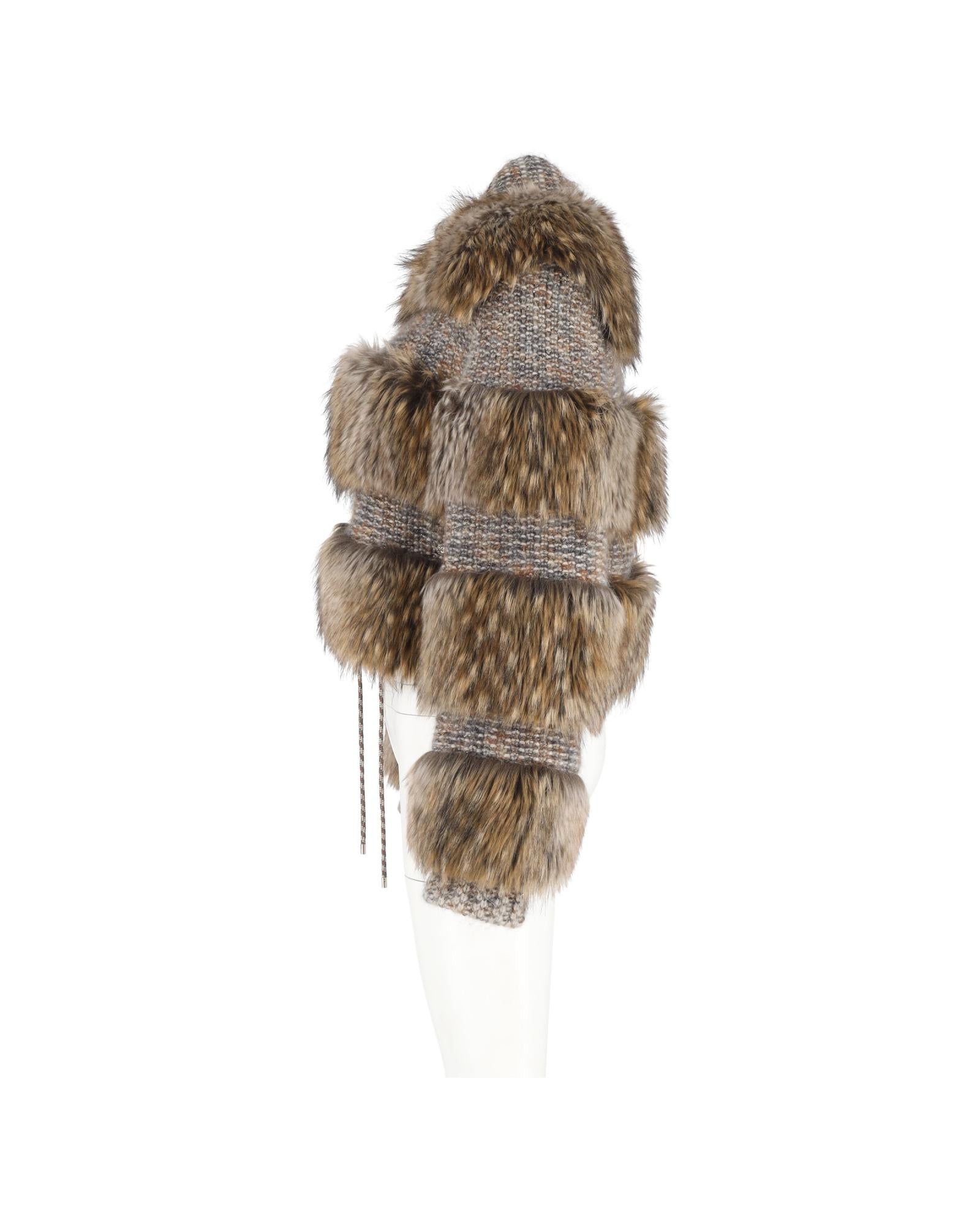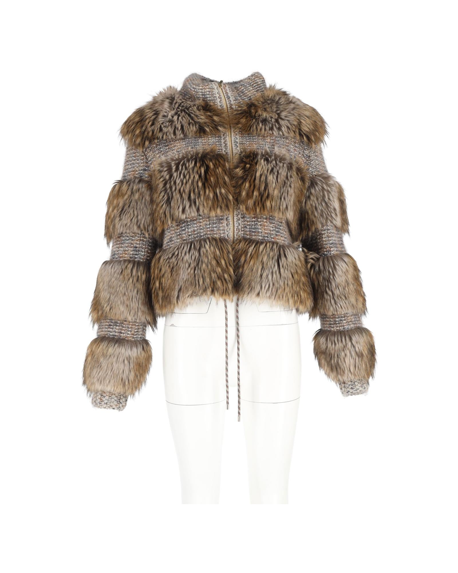 • Chanel Tweed and Faux Fur Jacket in Brown Cashmere