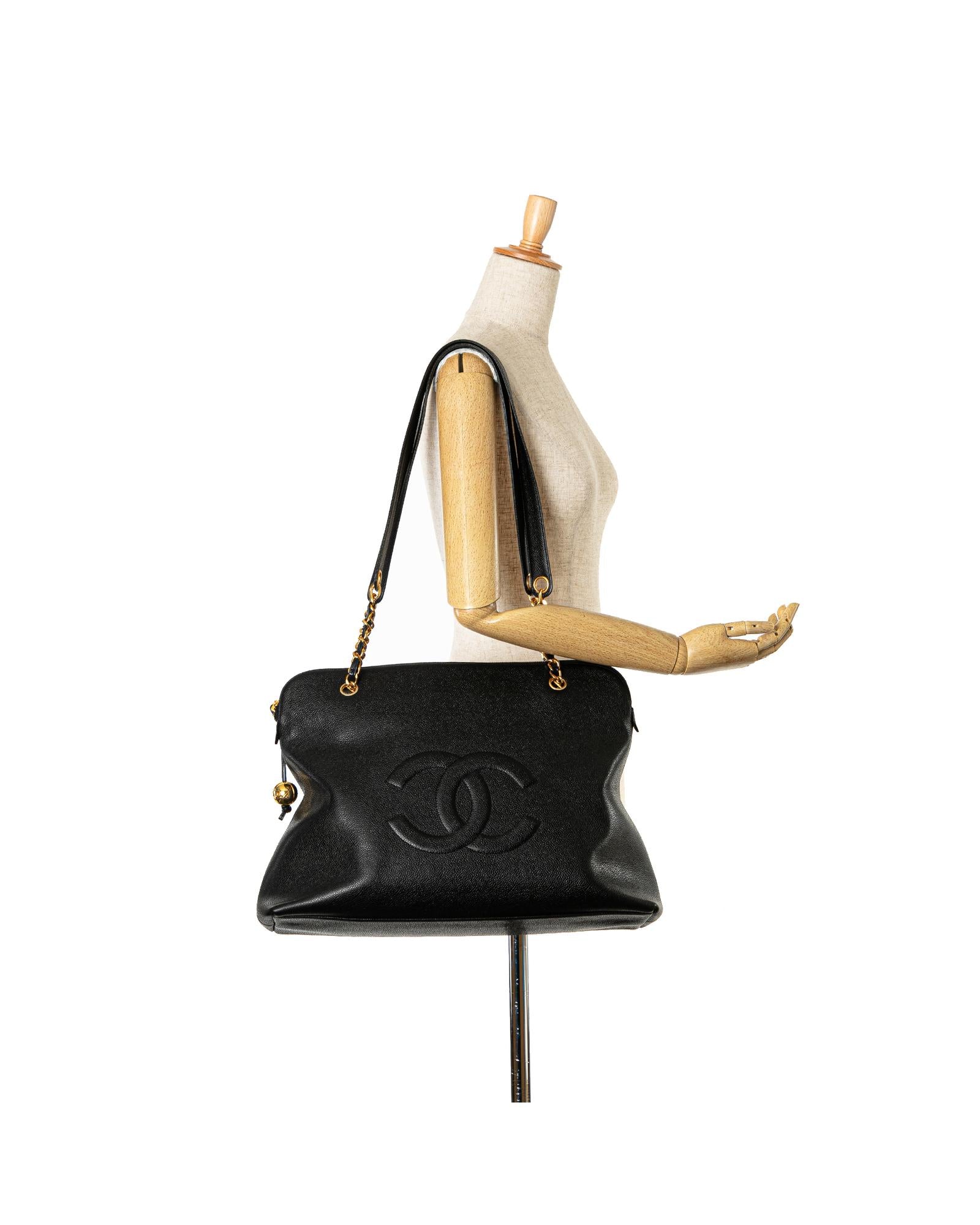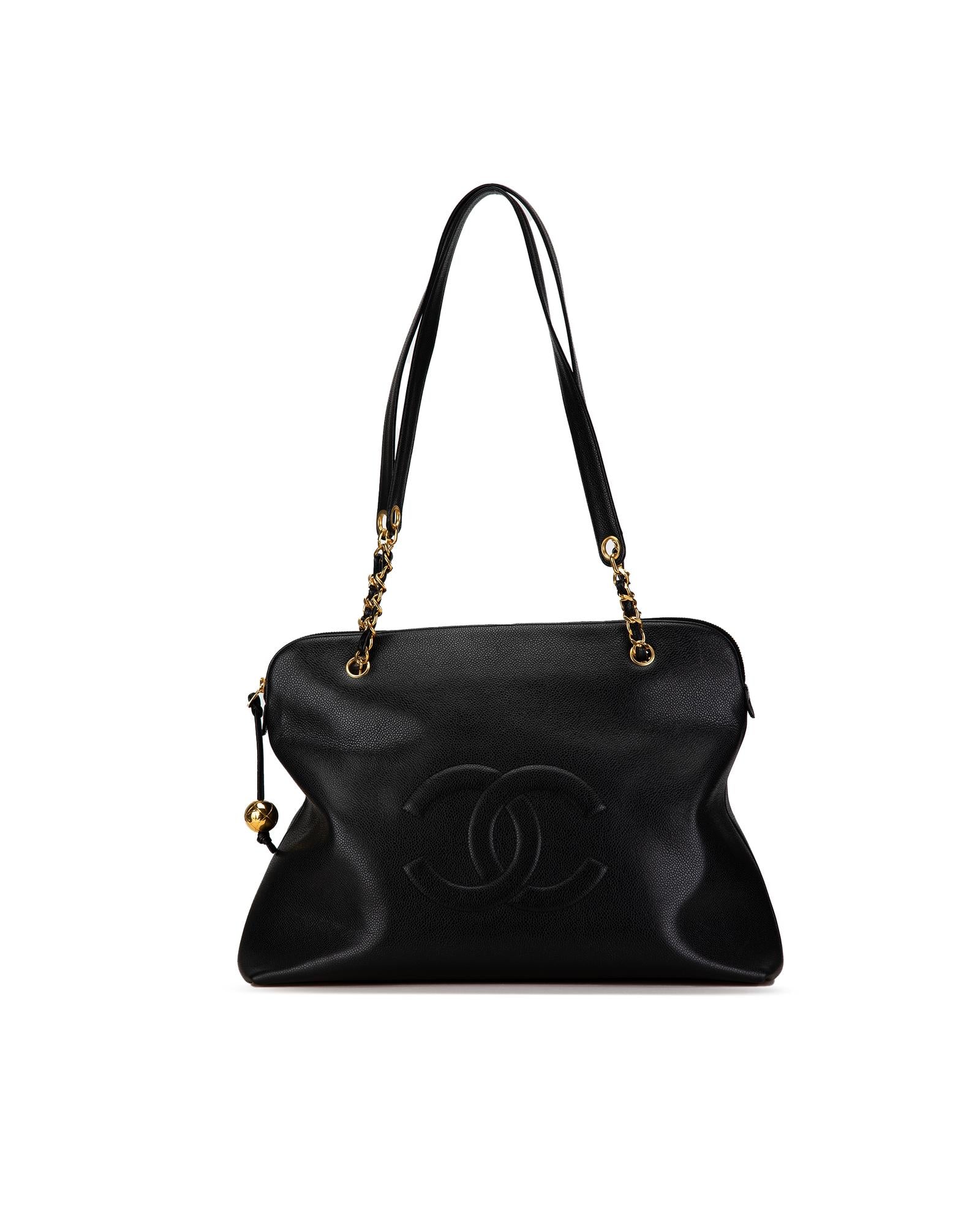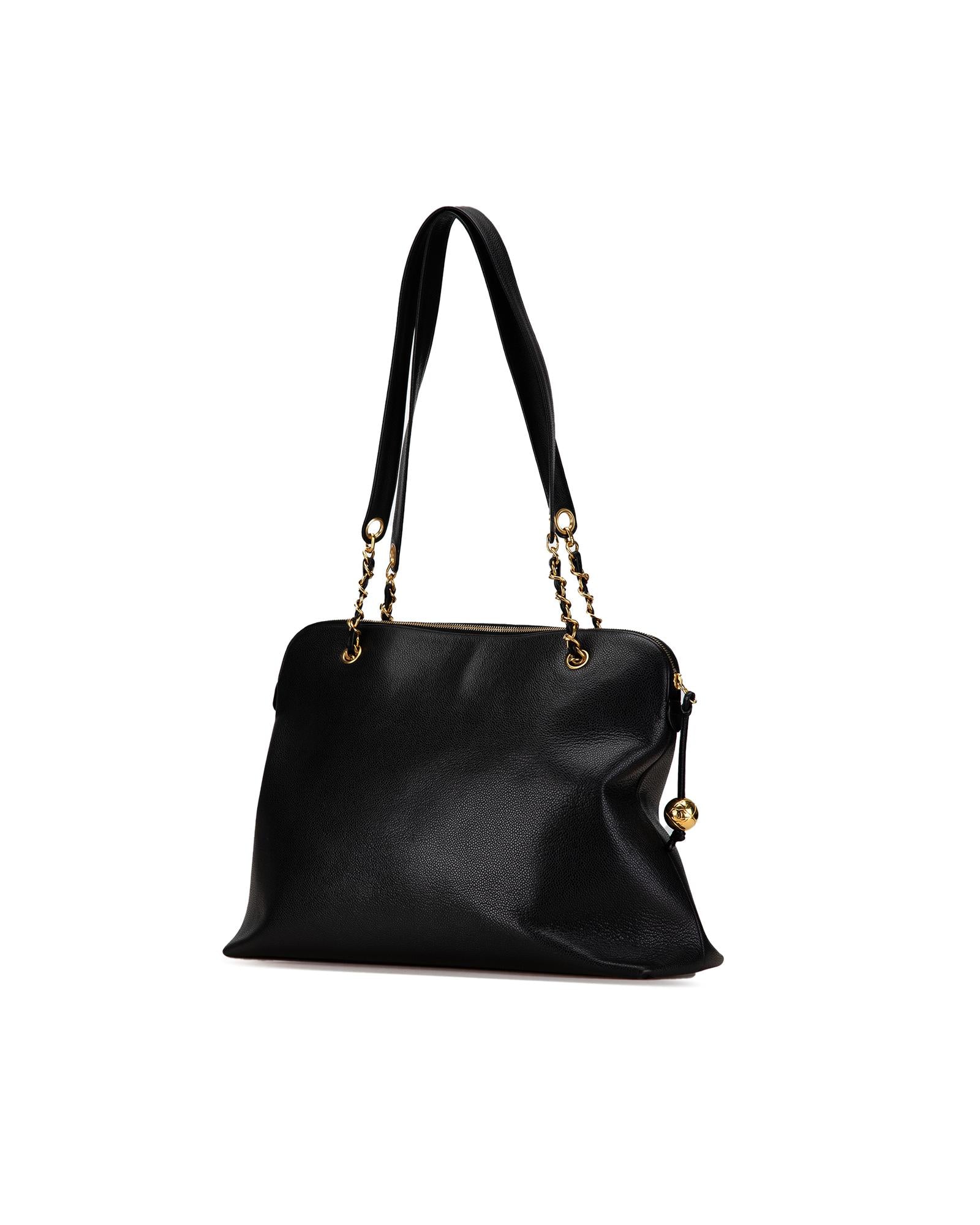 Caviar Leather Shoulder Bag with Woven Chain and Interior Zip Pocket
