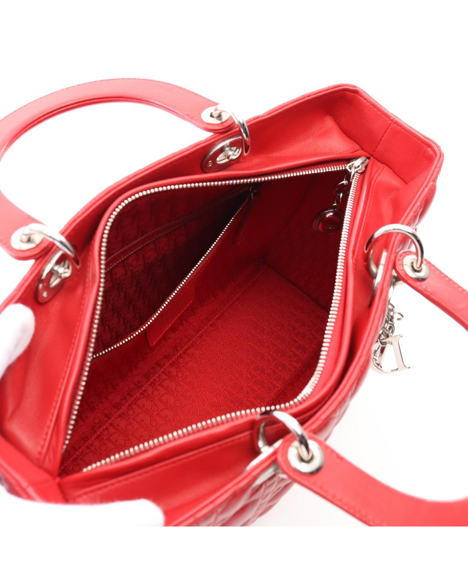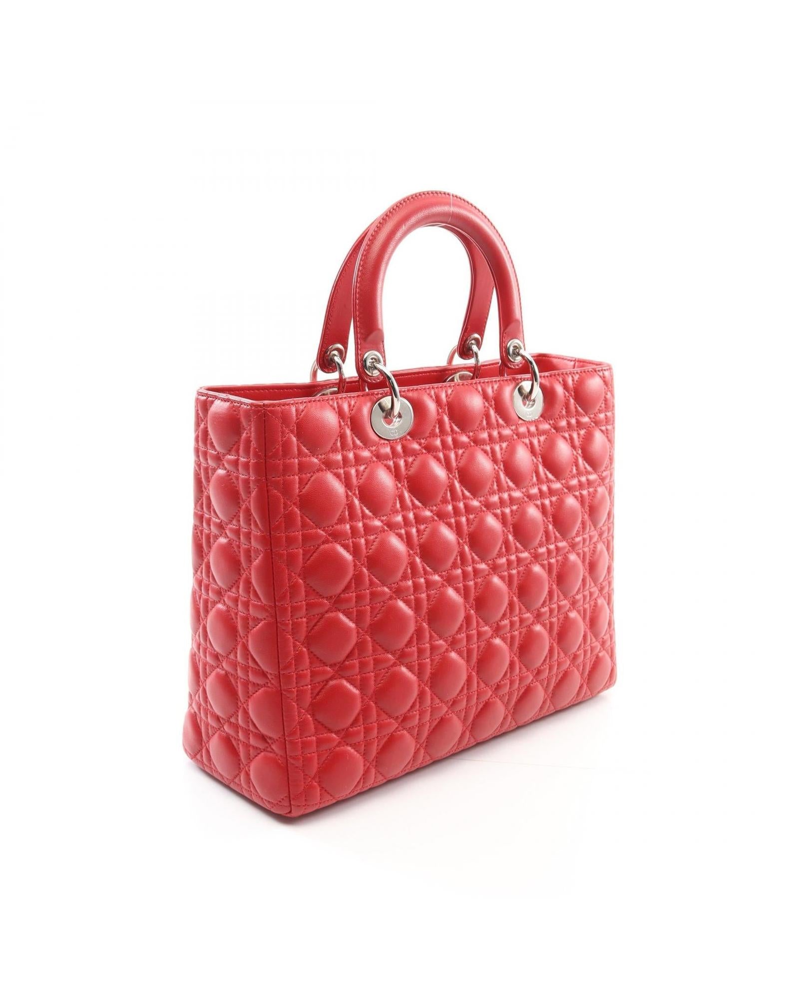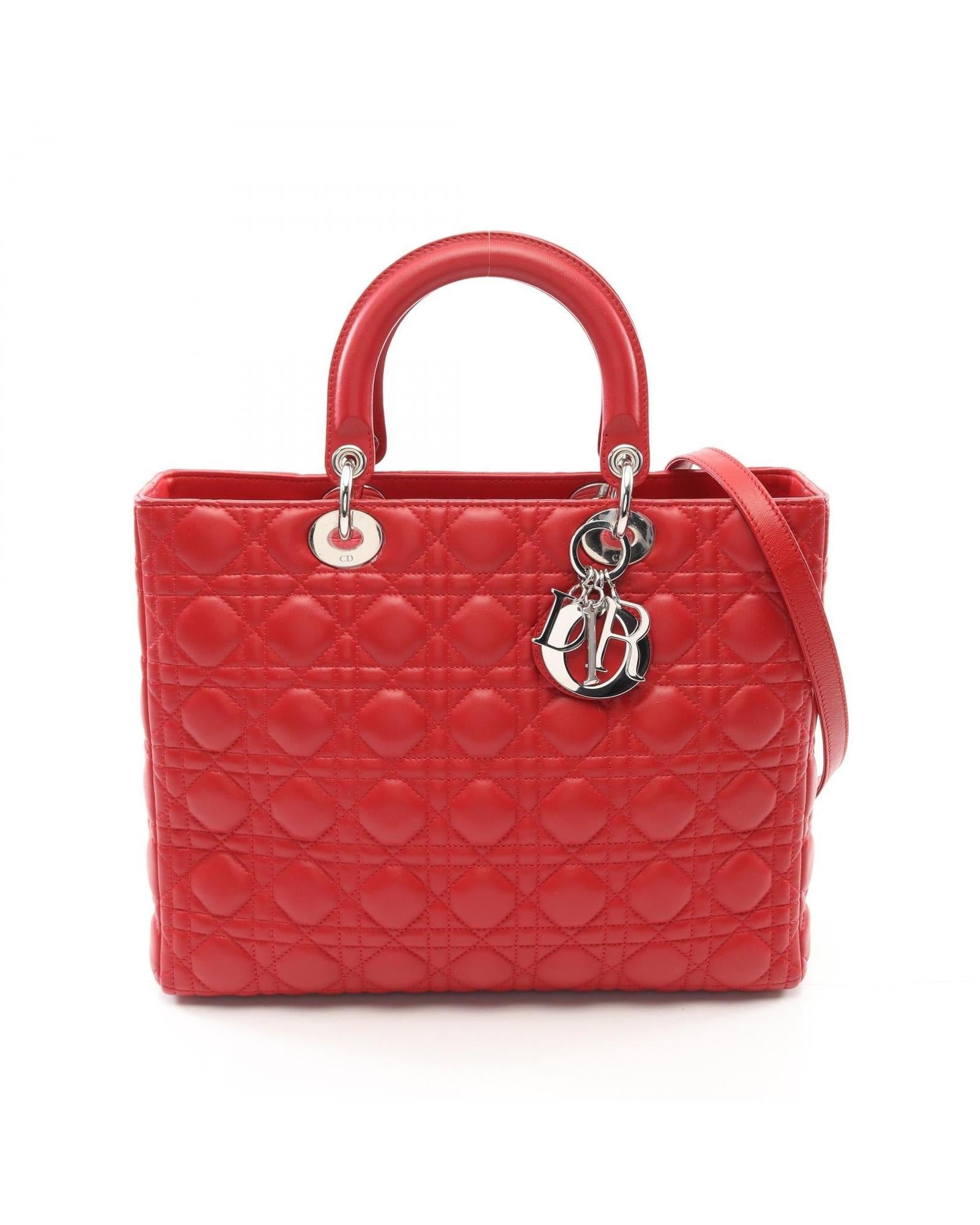 Lady Dior Leather Handbag with Flap Closure and Shoulder Strap
