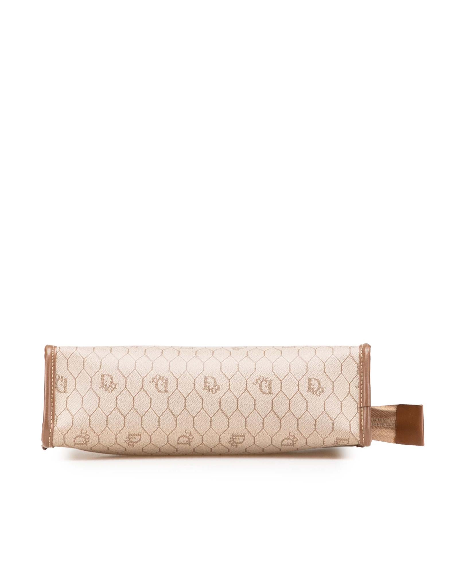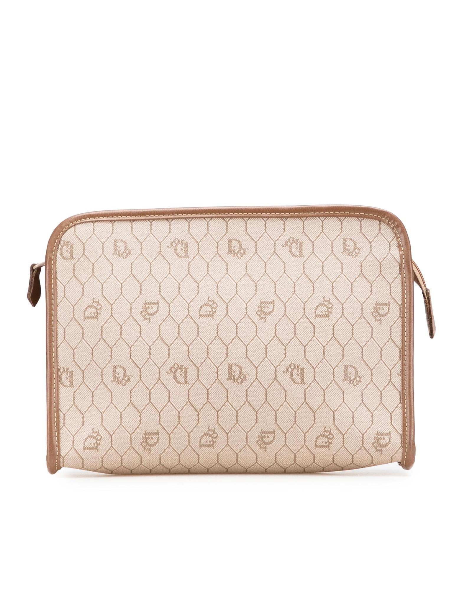 This clutch bag features a coated canvas body with leather trim a top zip closure and an interior slip pocket.Brand: Dior