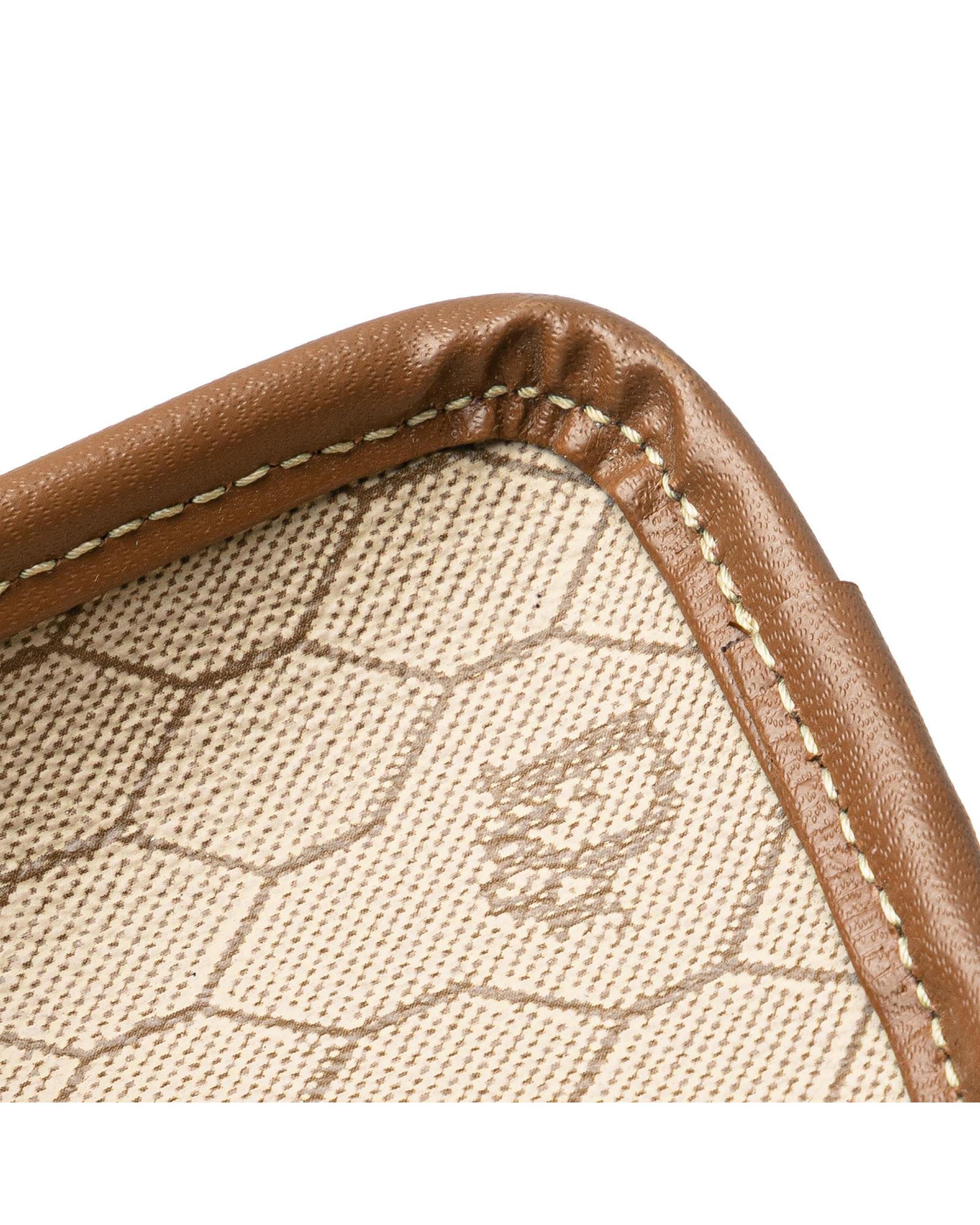 Exterior Bottom stained with Other. Exterior Corners Worn. Exterior Corners stained with Other. Embellishment Scratched. Exterior Front stained with Other. Exterior Handle Worn. Interior Pocket Loose Stitching. Interior Pocket stained with Other. Exterior Top Scratched. Zipper Scratched.