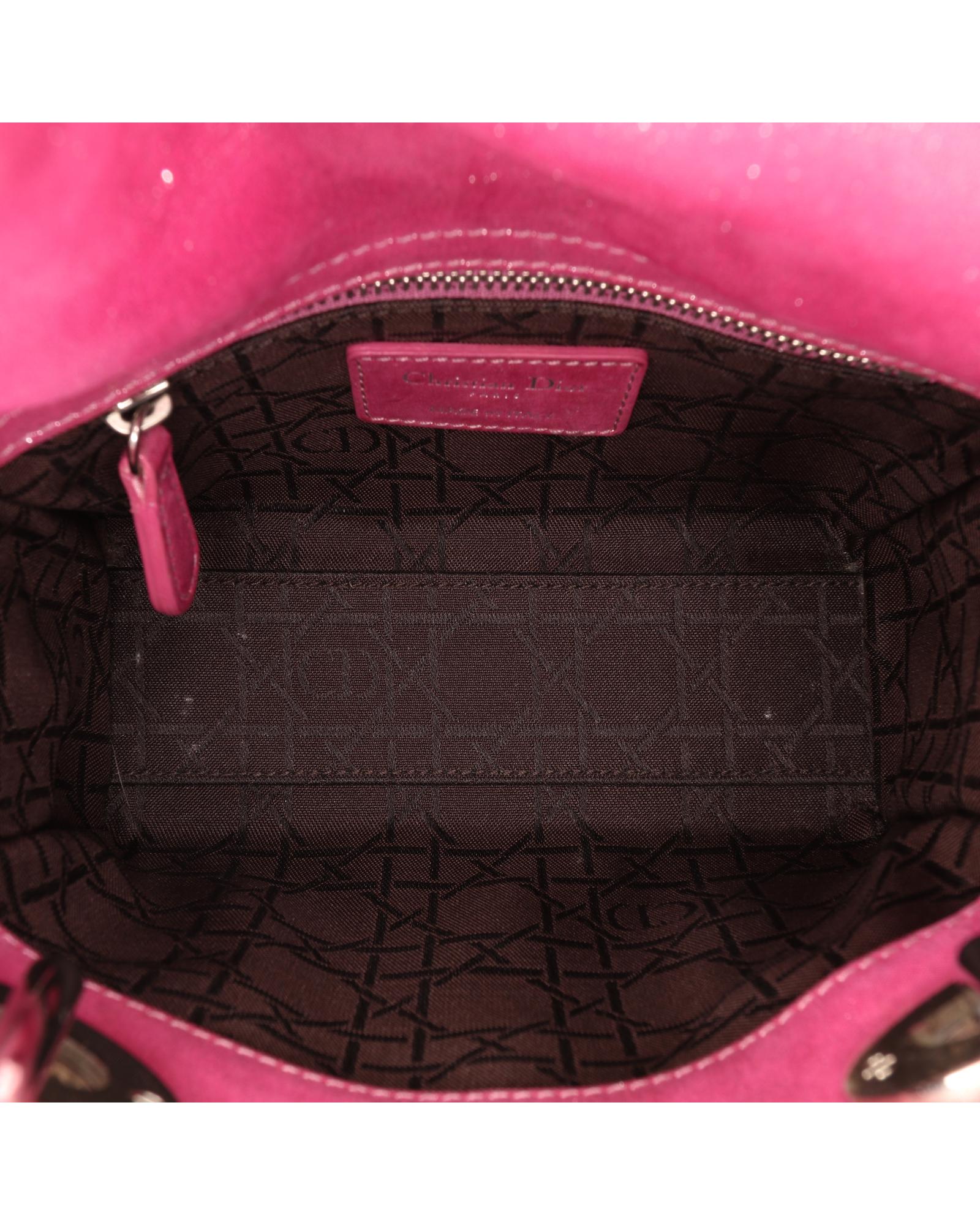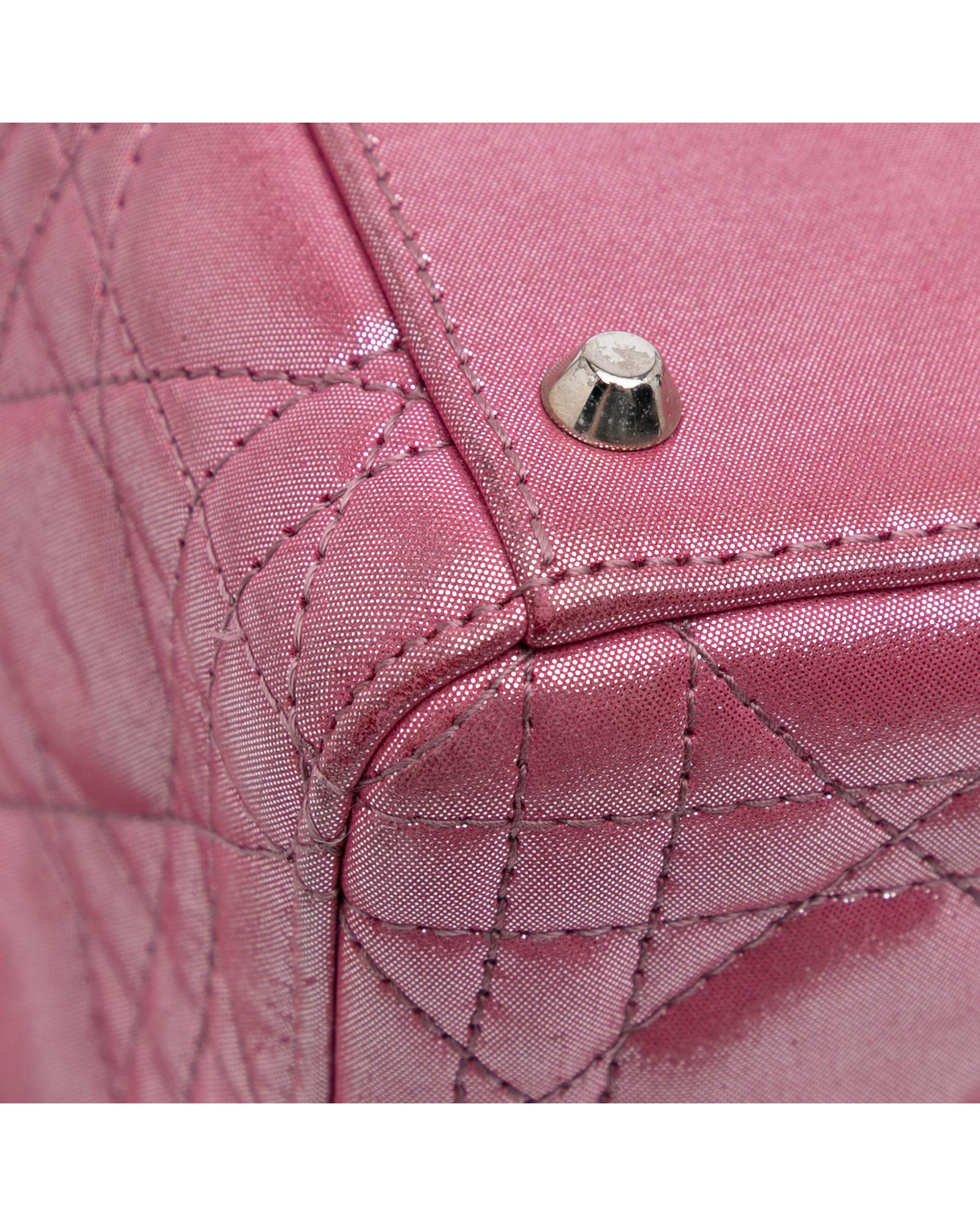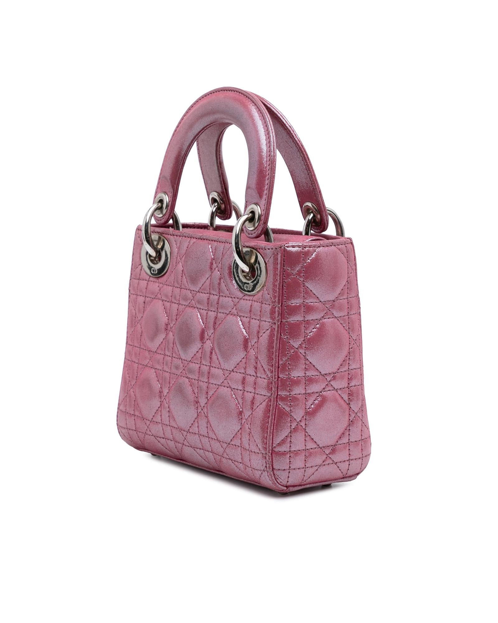 The Mini Lady Dior features a quilted iridescent lambskin leather body flat leather top handles a detachable curb chain shoulder strap with leather guard a fold-in flap closure and an interior zip pocket.Brand: Dior