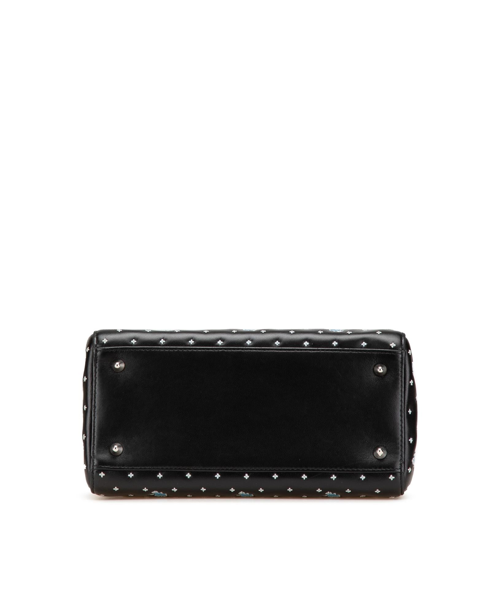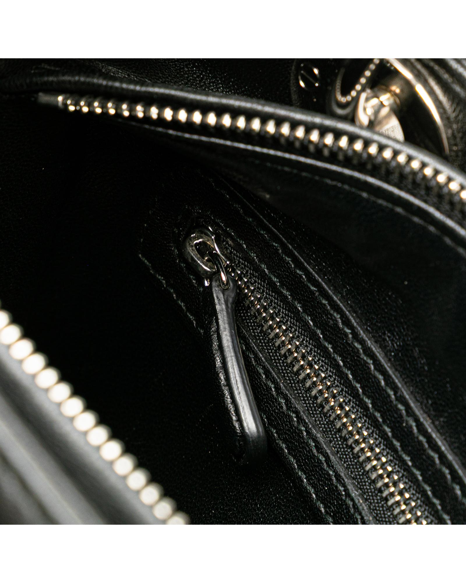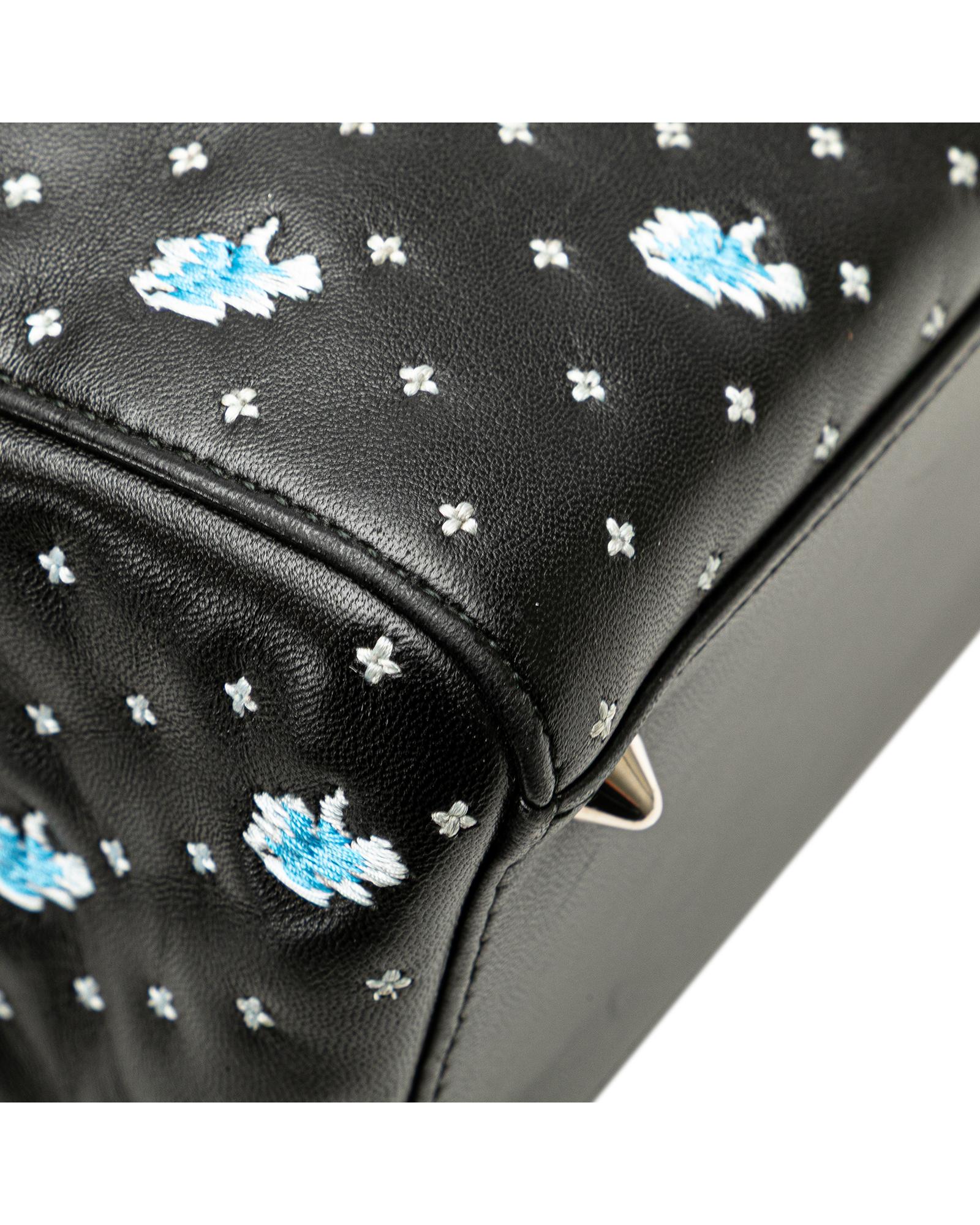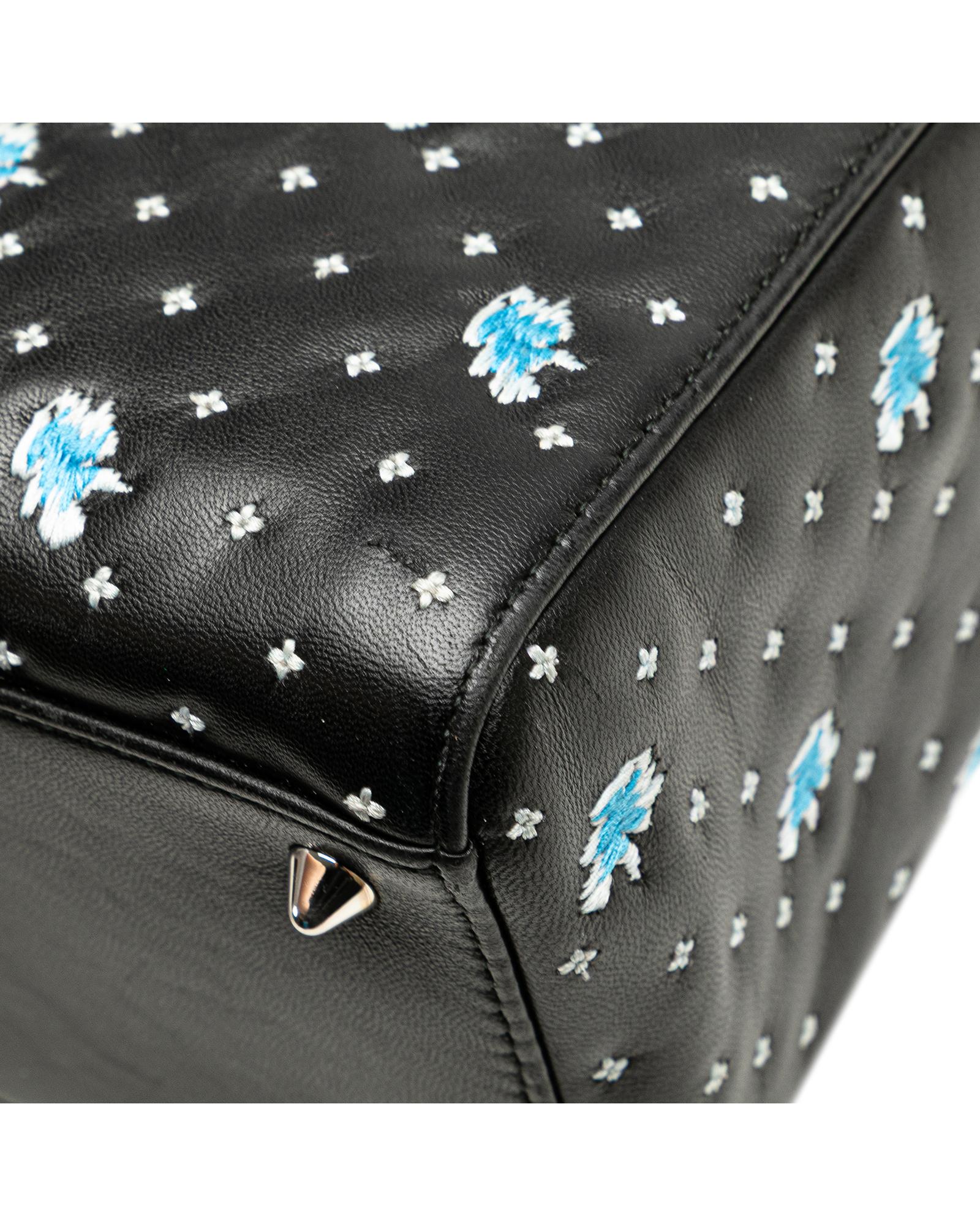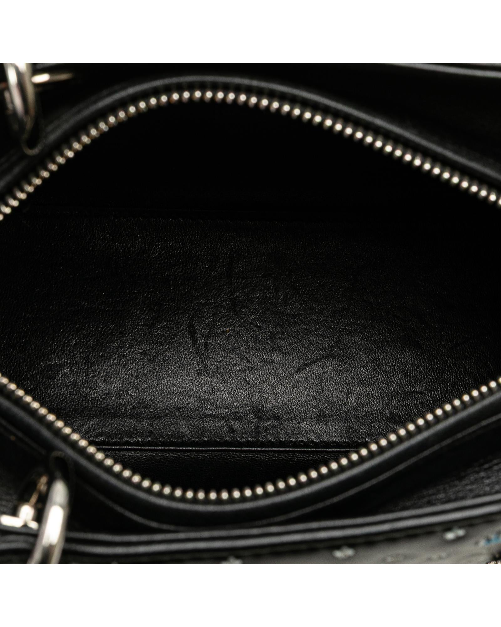 The Lady Dior satchel features an embroidered leather body flat leather handles a detachable flat leather strap a top zip closure and an interior zip pocket.Brand: Dior