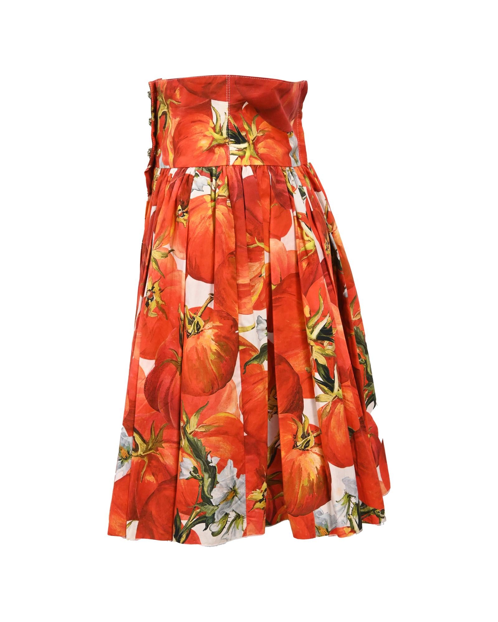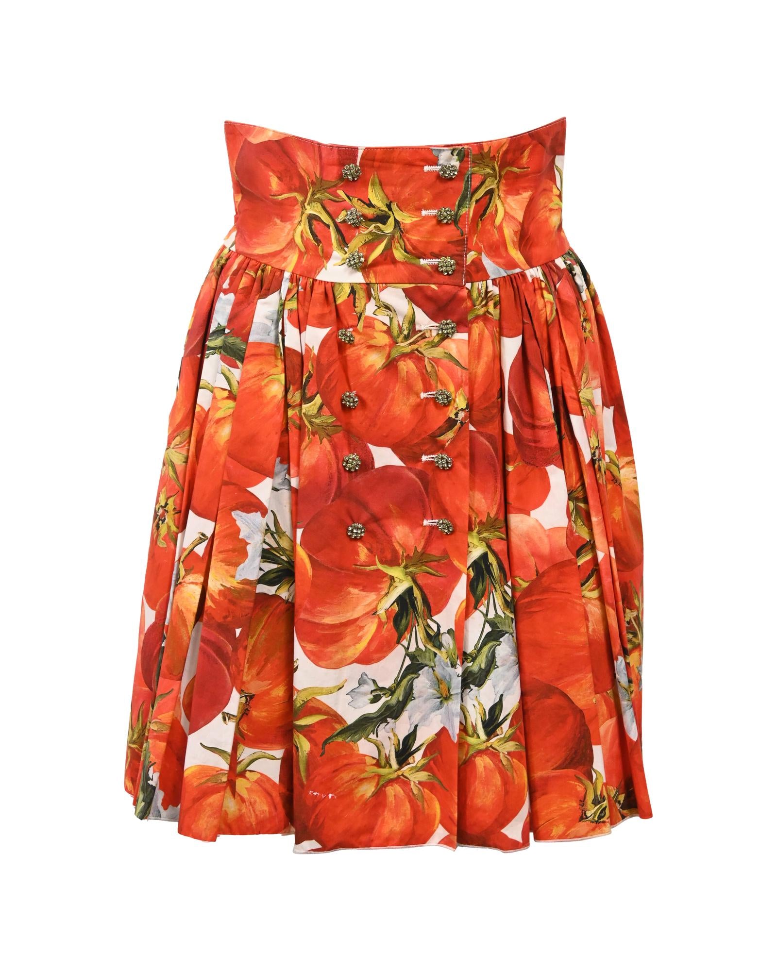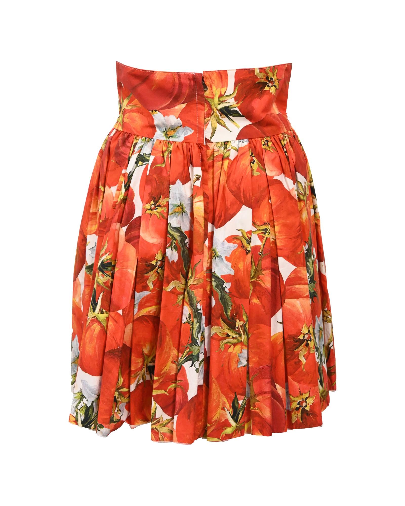 - Dolce & Gabbana Tomato Print Skirt in Red Cotton