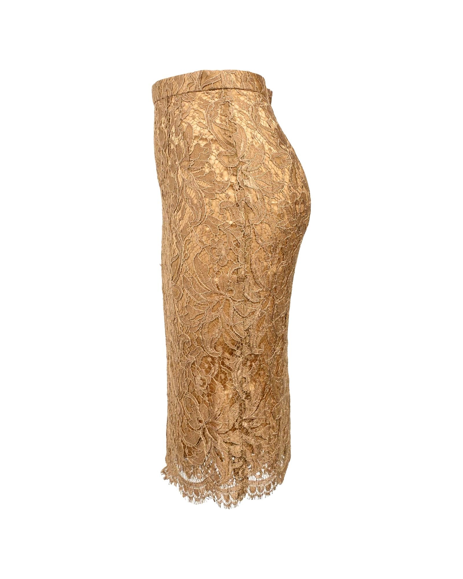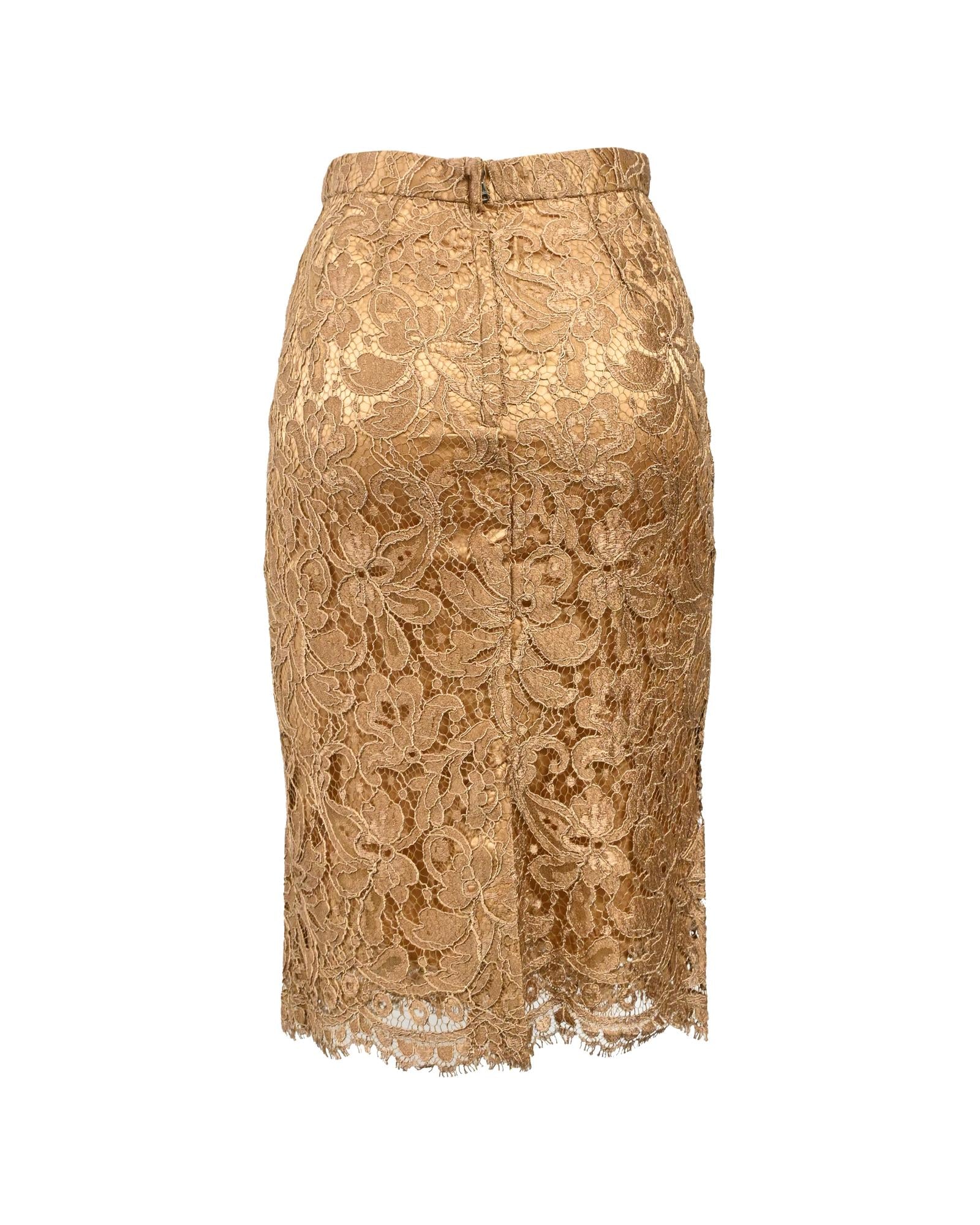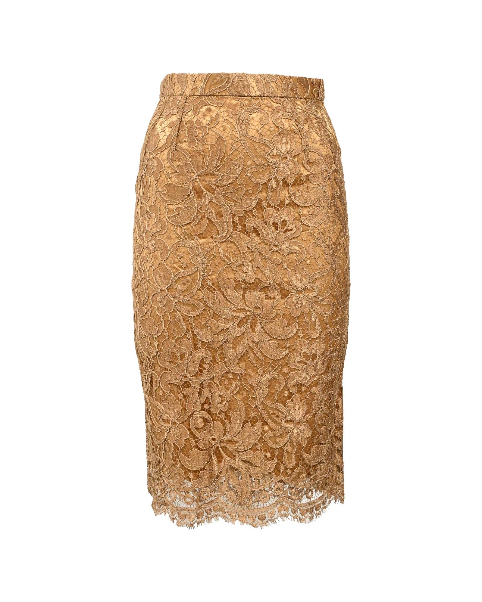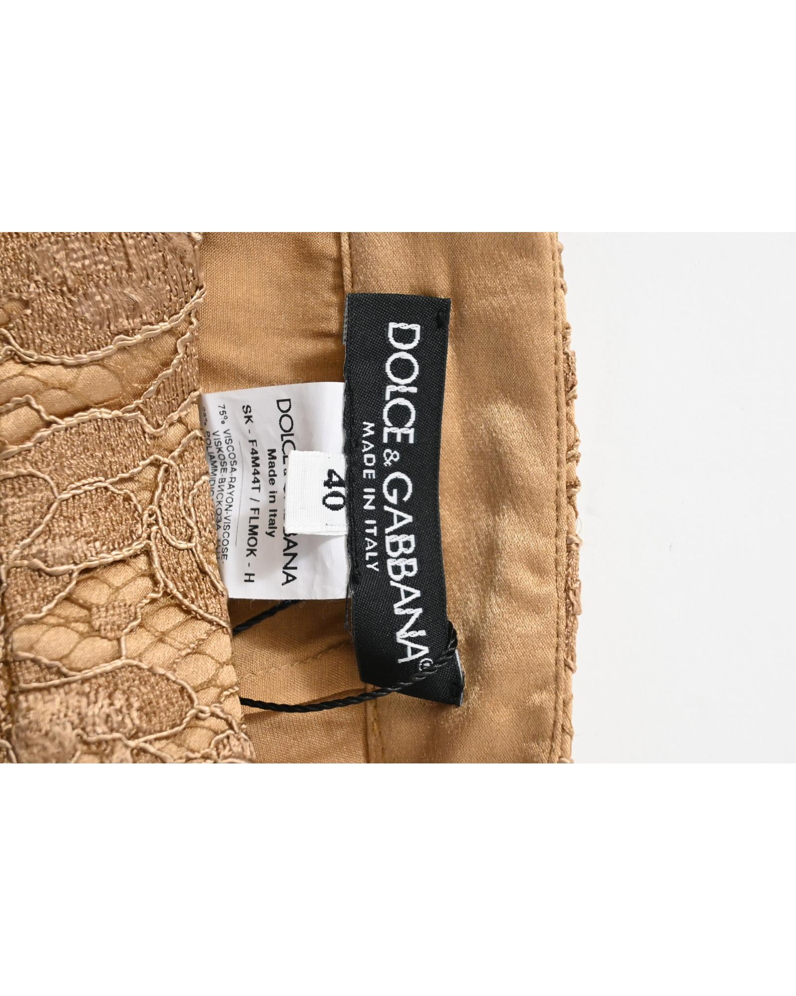 - Dolce & Gabbana Lace Detail Midi Pencil Skirt in Brown Viscose