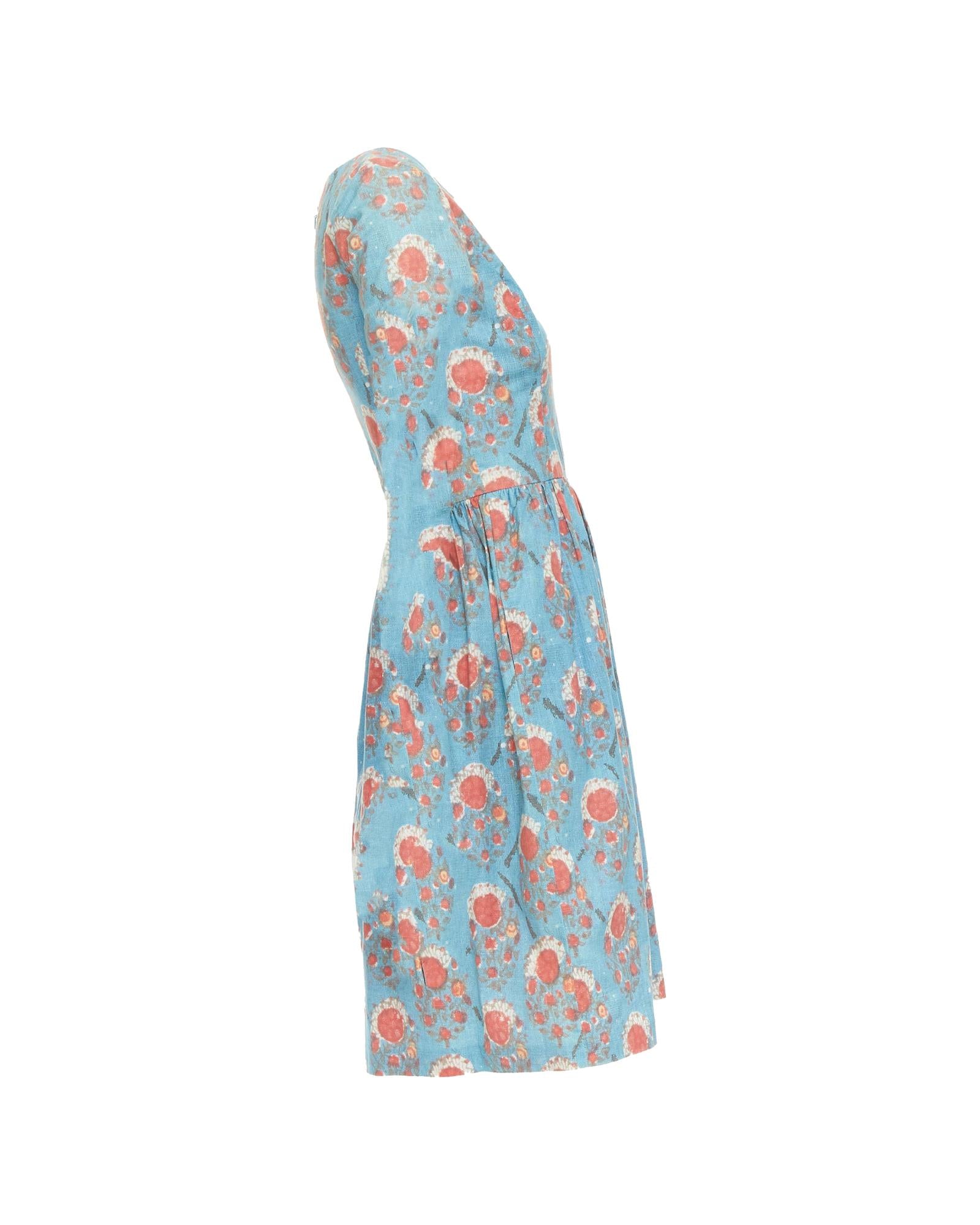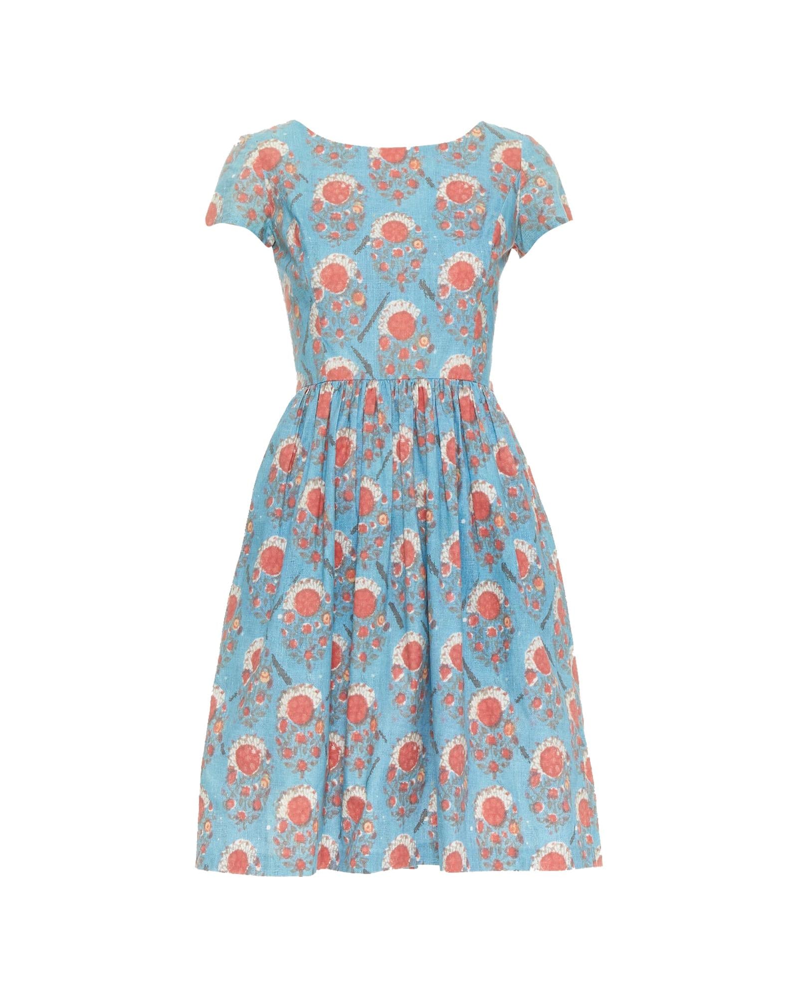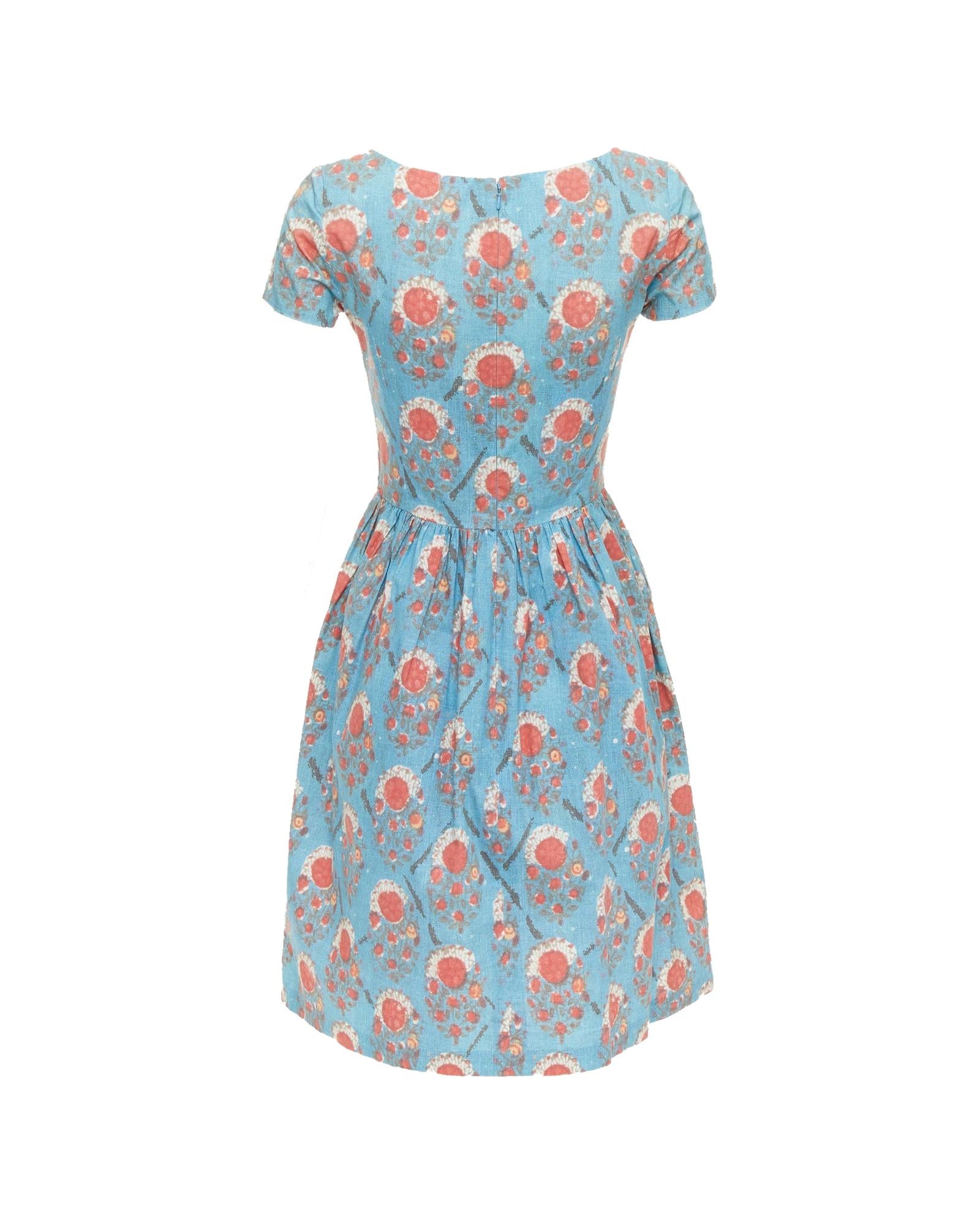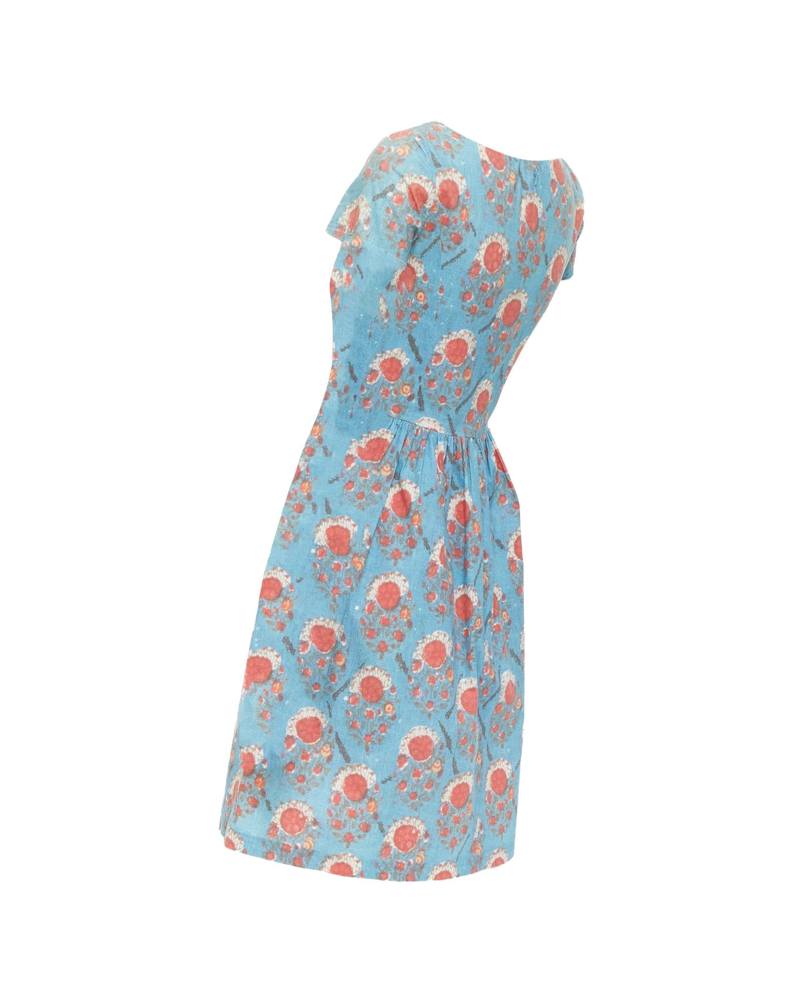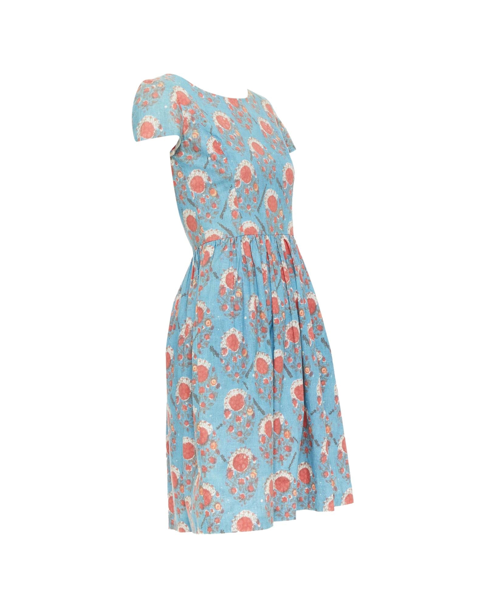 Pre-owned Elegant Fit & Flare Dress with Short Sleeves and Floral Print