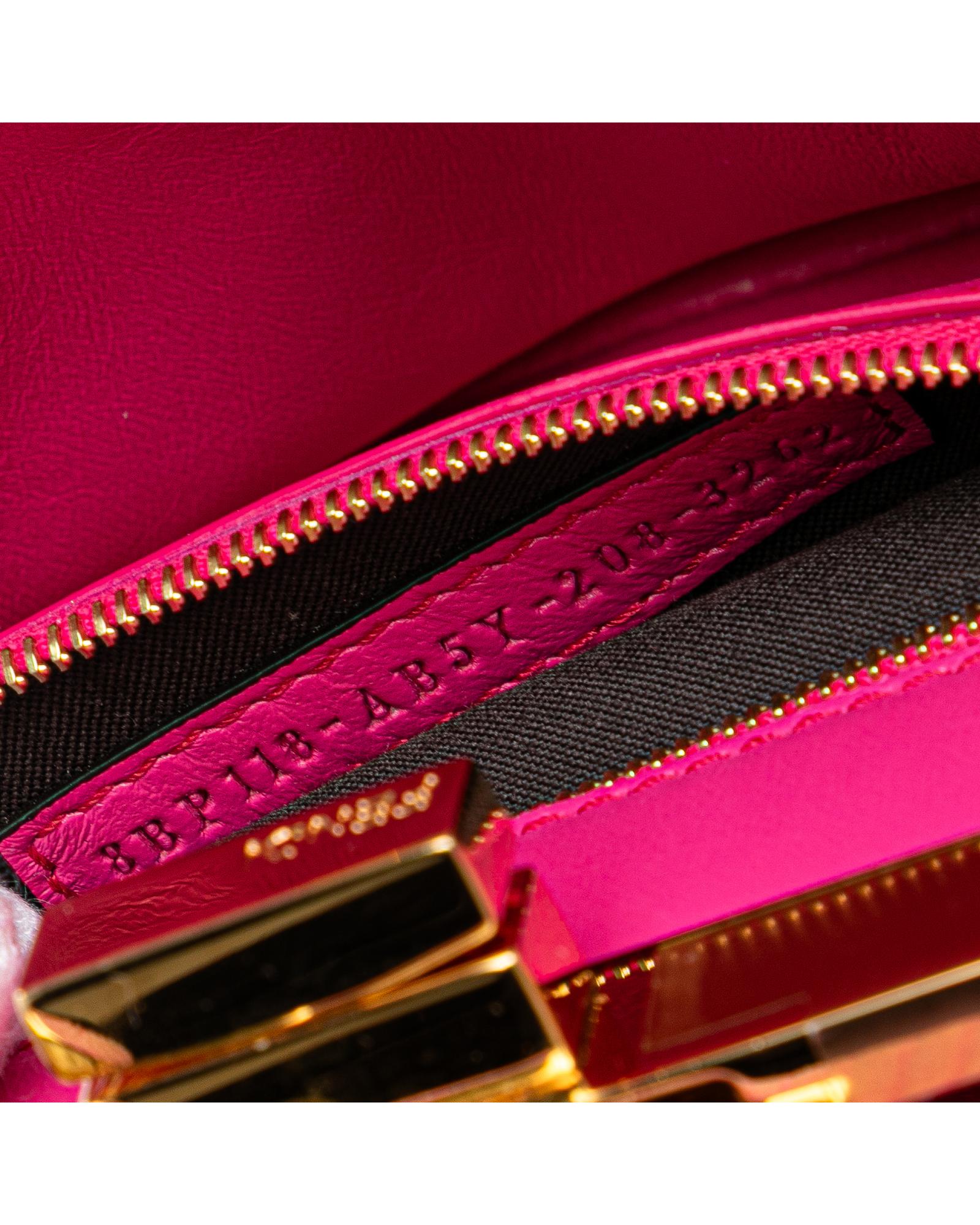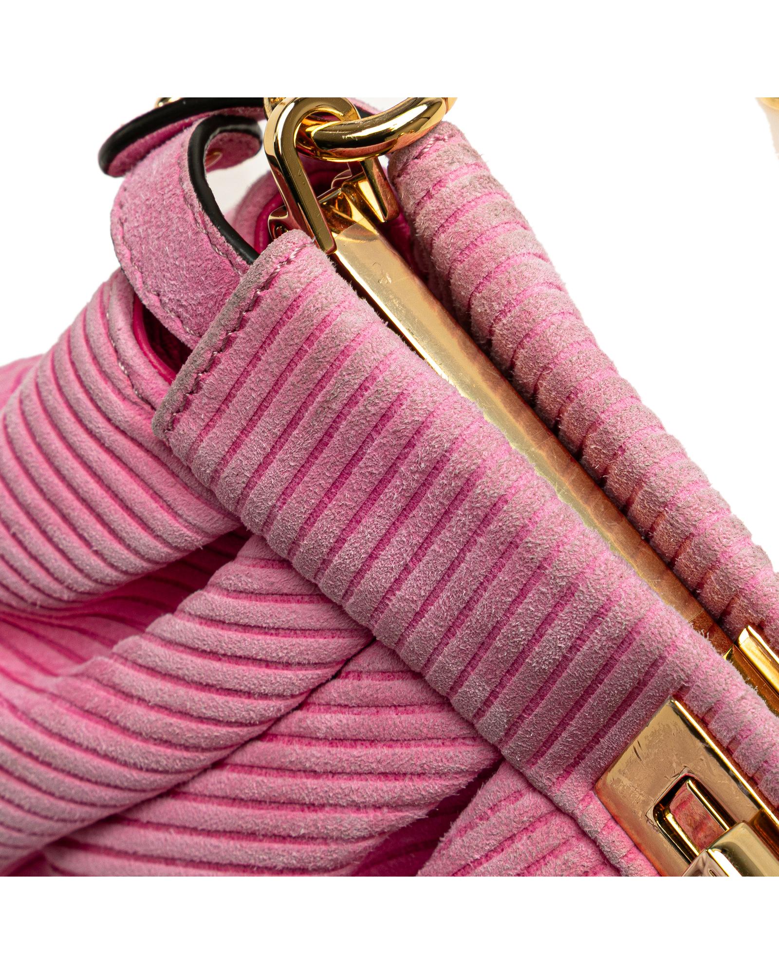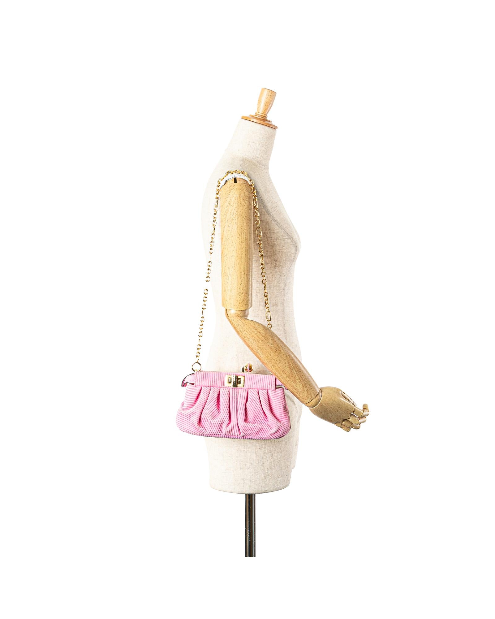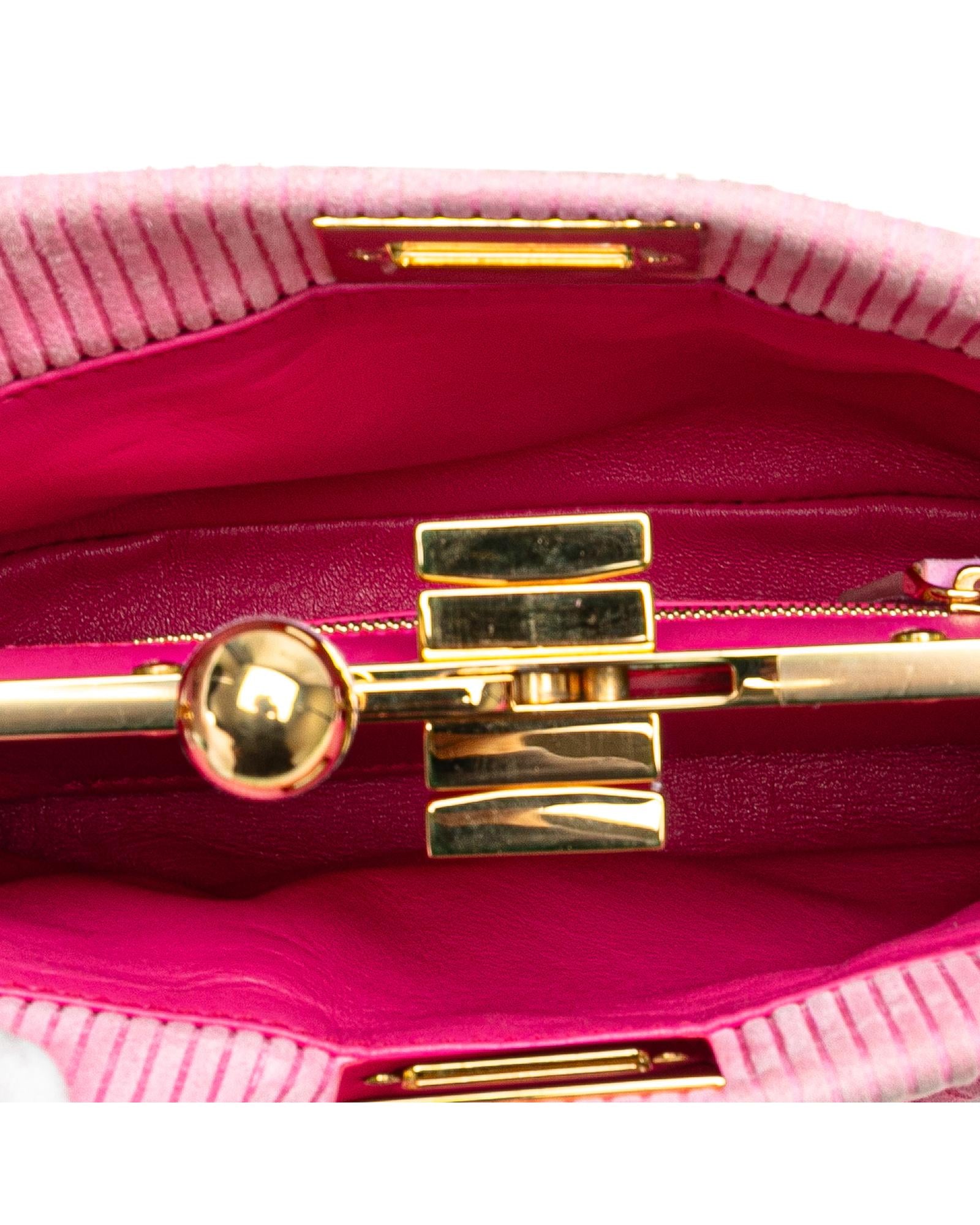 The Peekaboo Click features an embossed suede body a detachable chain link strap an open top with twist lock closure and an interior zip pocket.Brand: Fendi