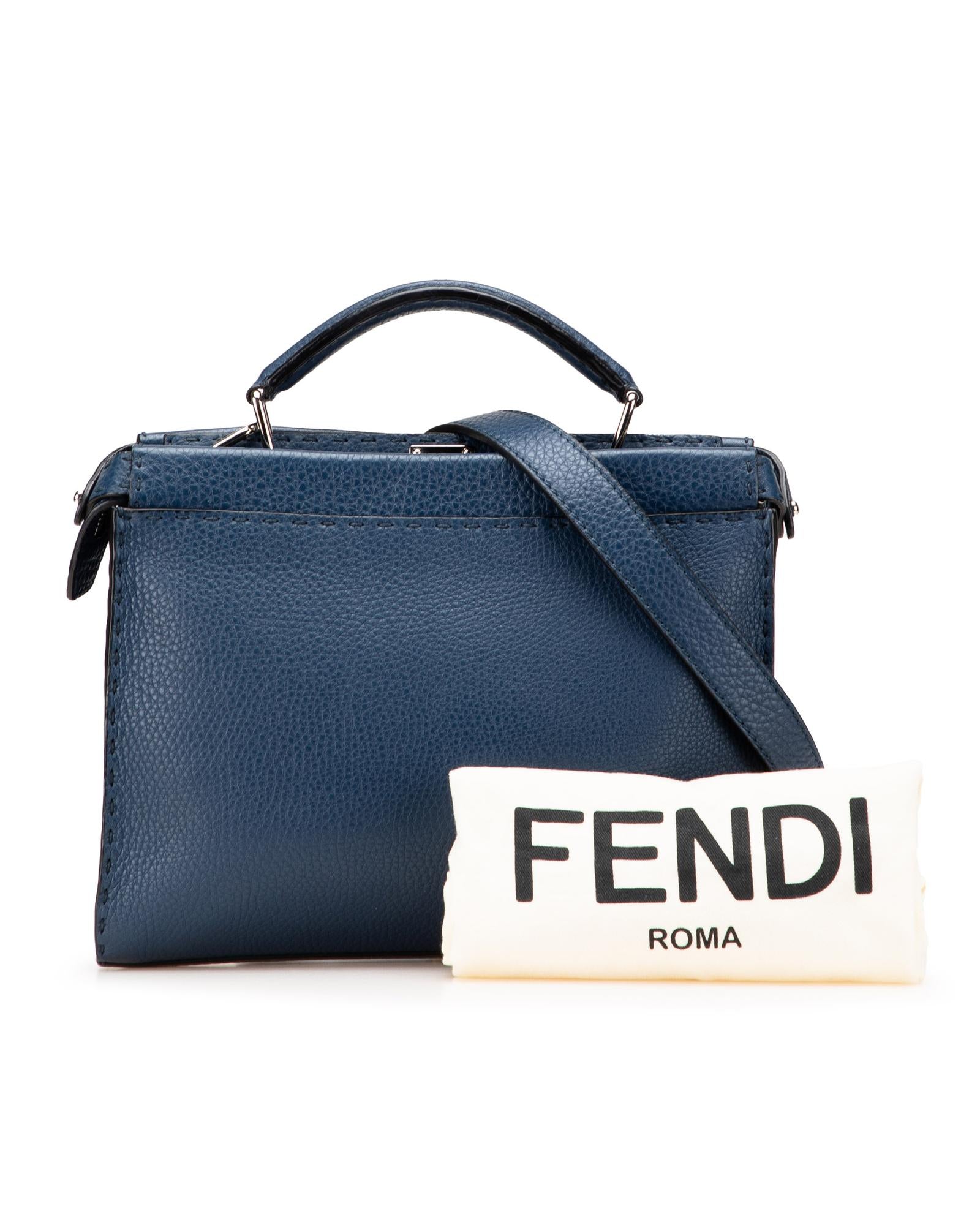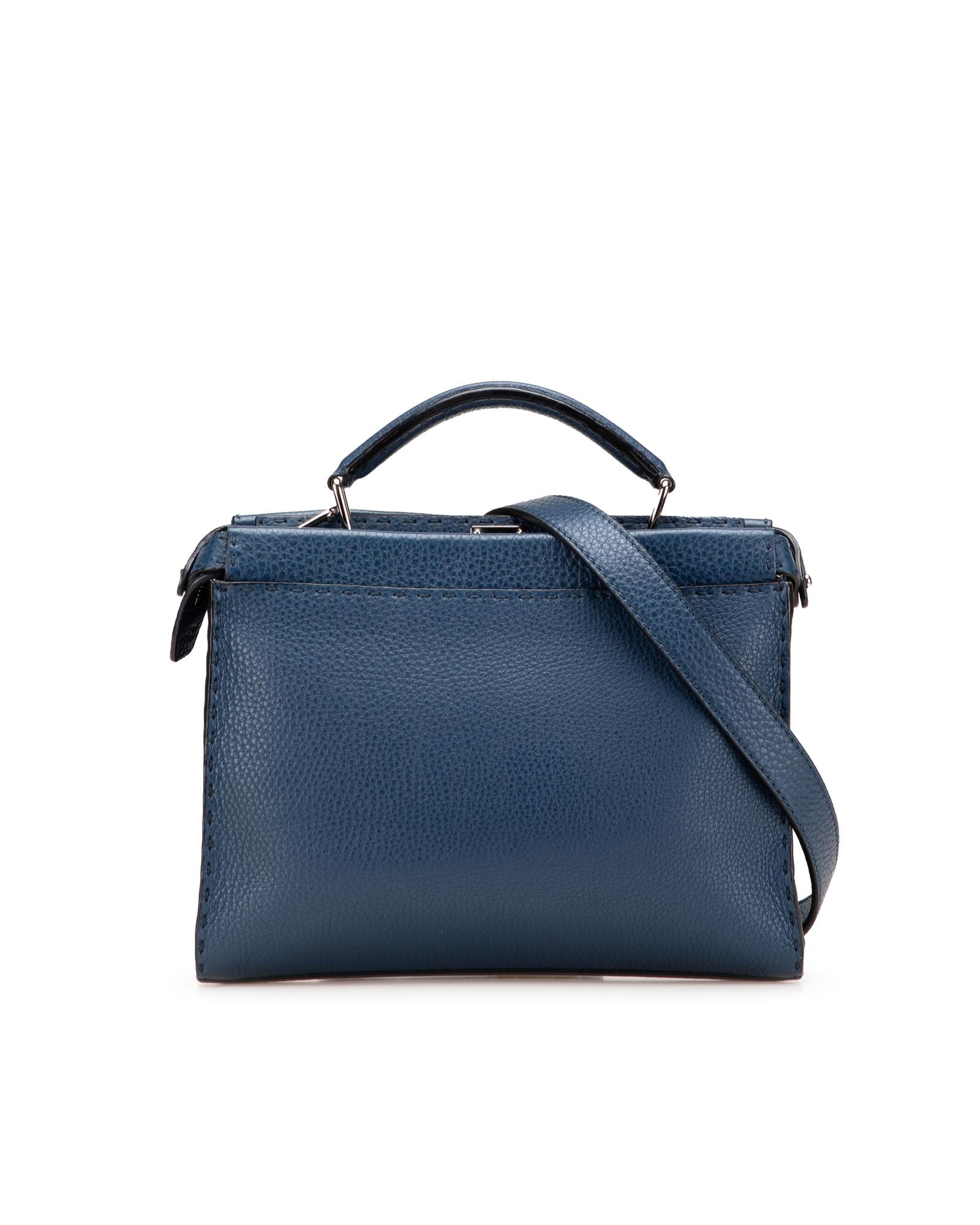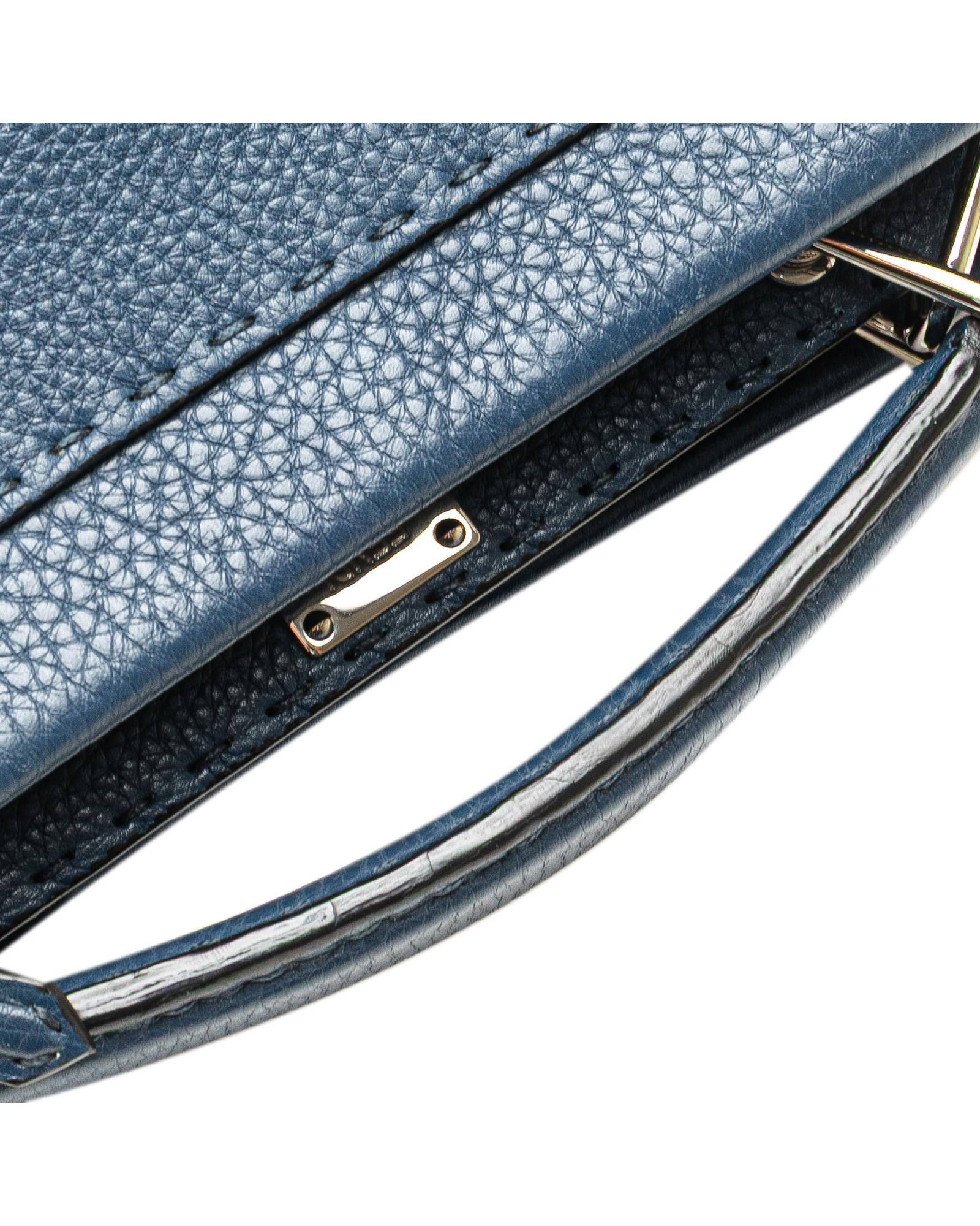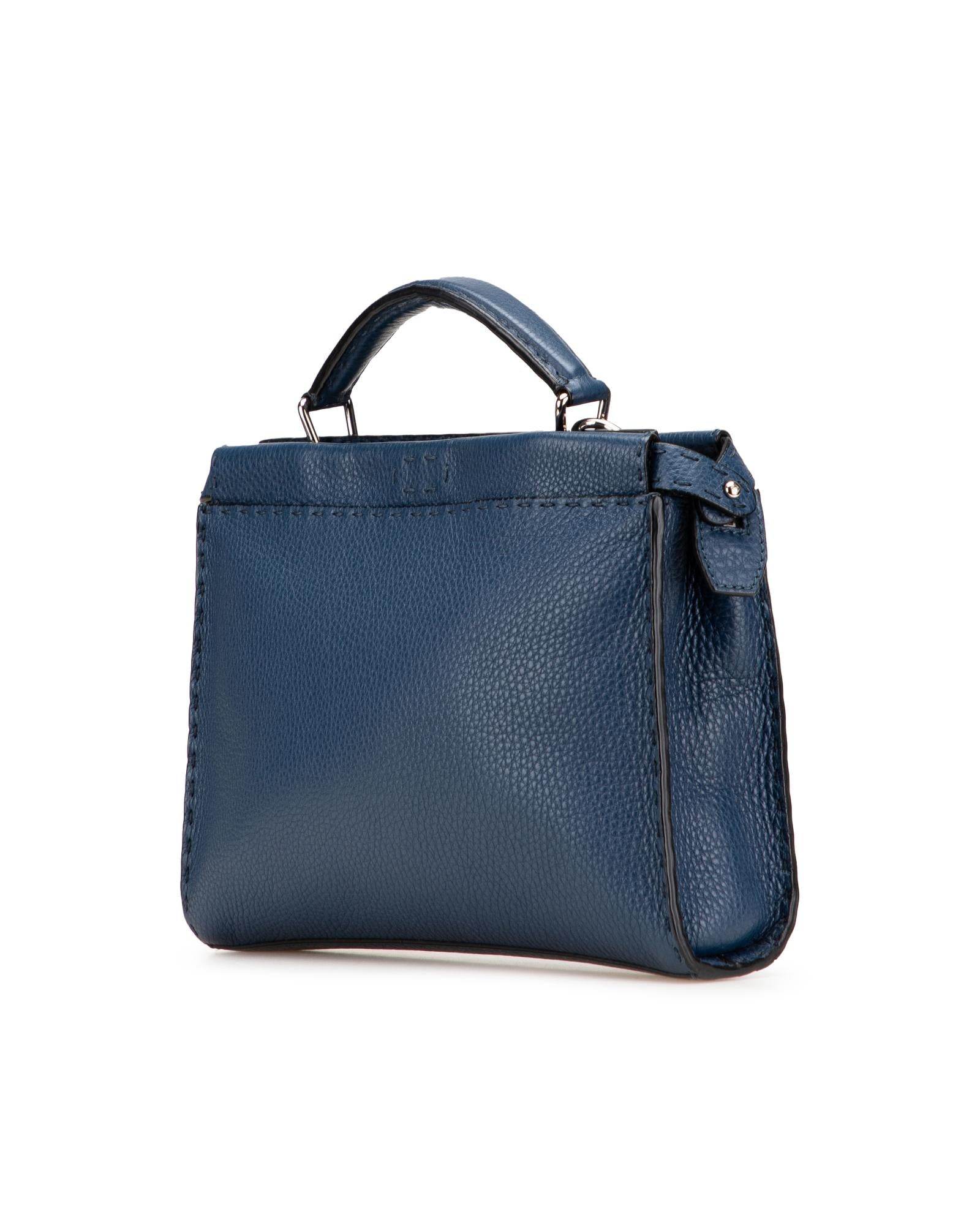 The Peekaboo features leather body a flat leather handle a detachable shoulder strap an open top with clasp closure and an interior zip pocket.