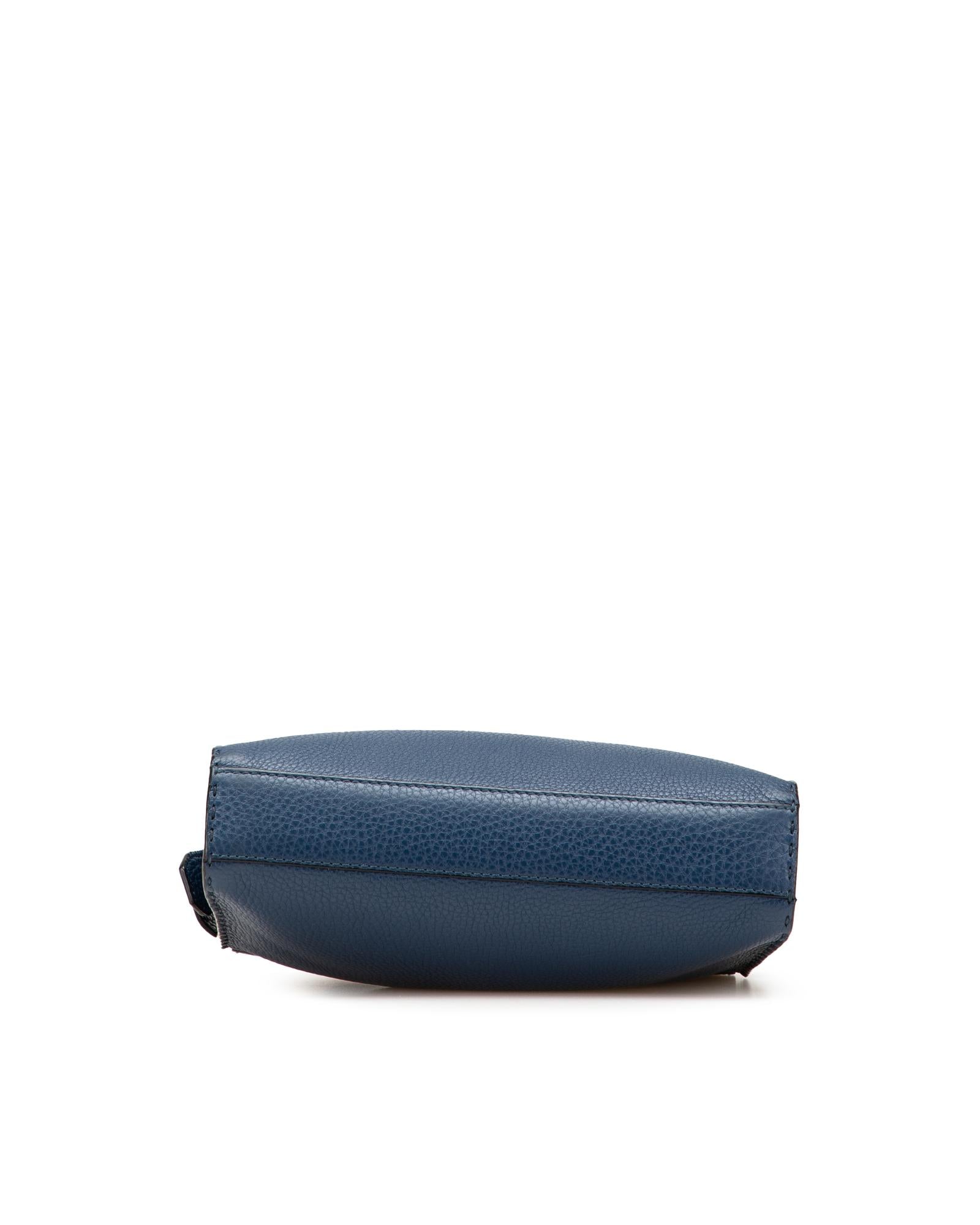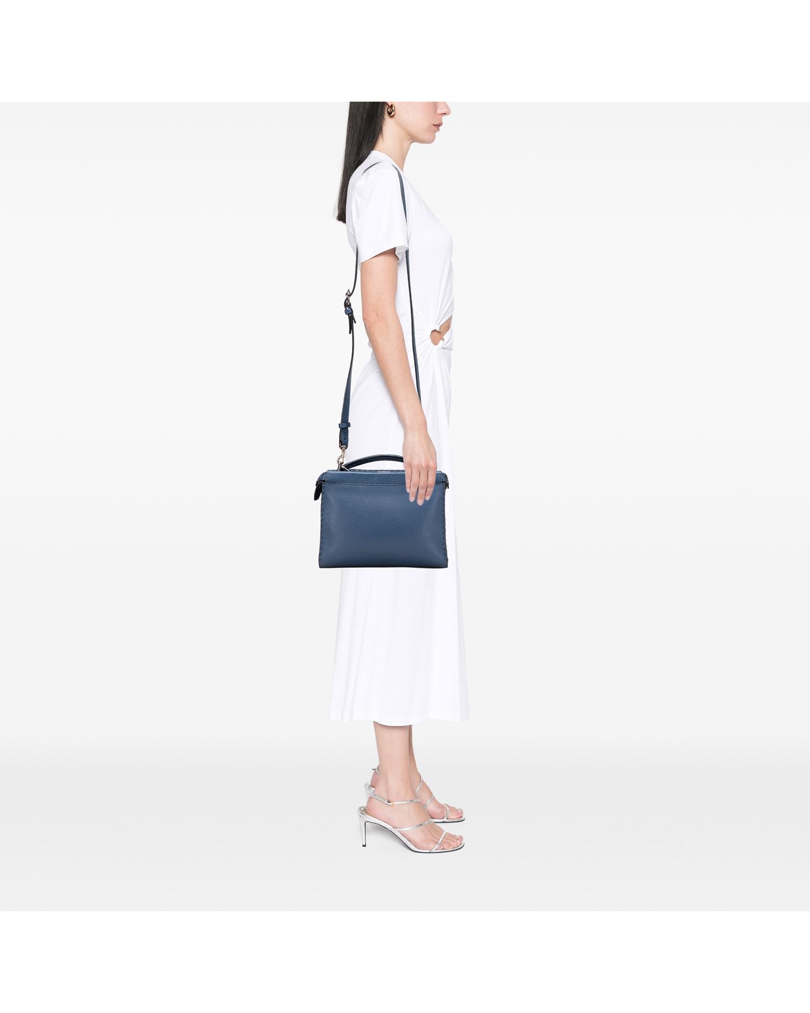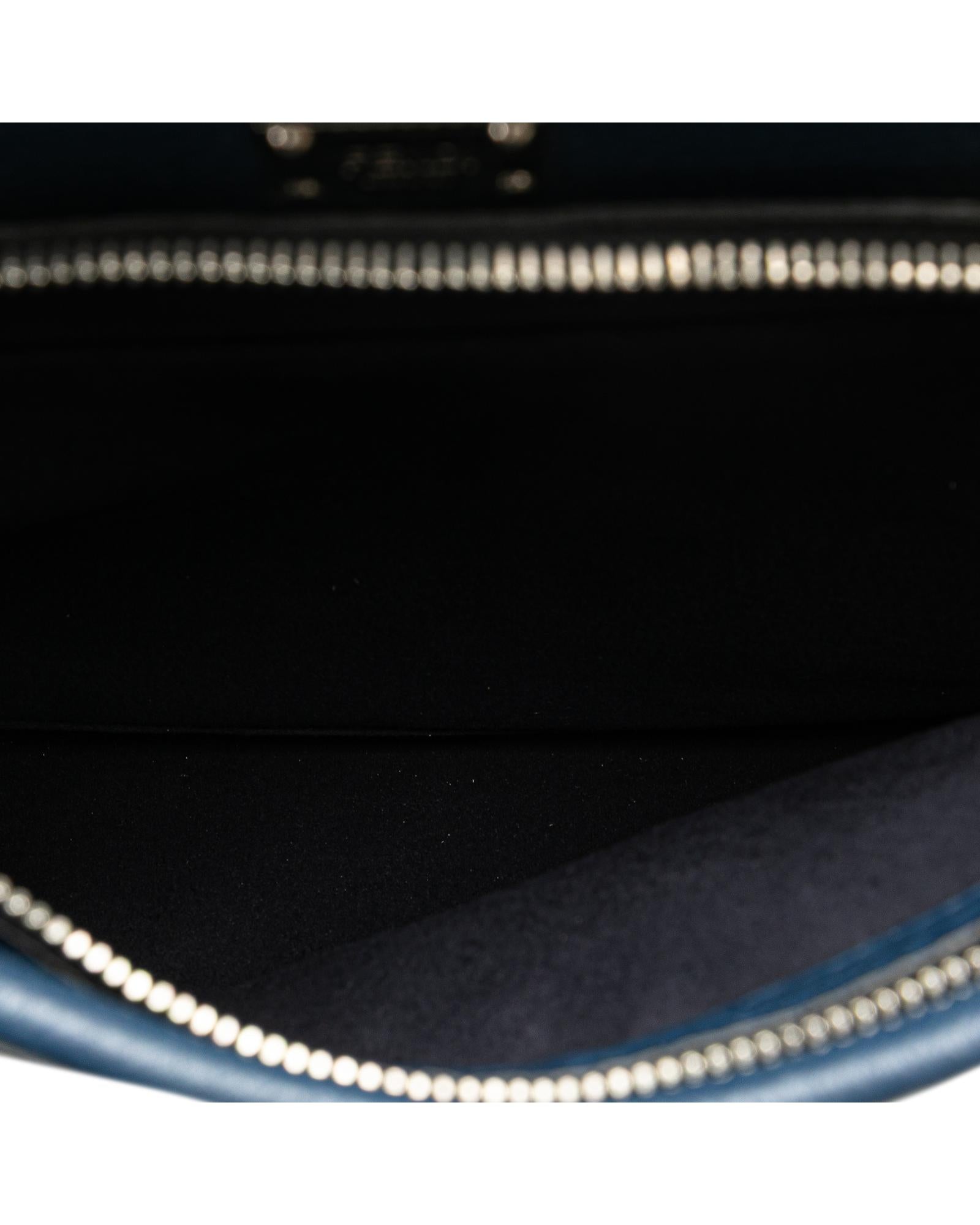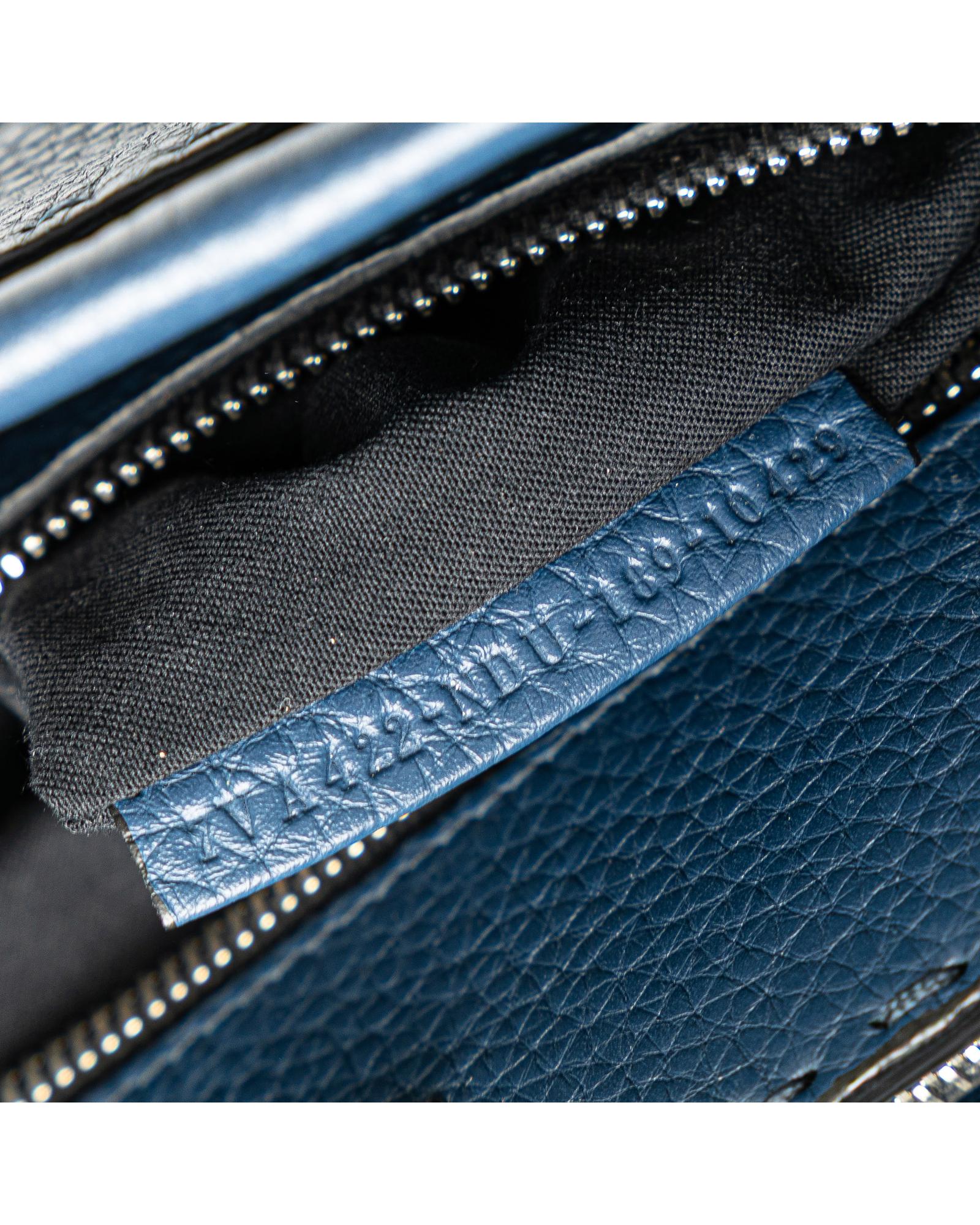 The Peekaboo features leather body a flat leather handle a detachable shoulder strap an open top with clasp closure and an interior zip pocket.