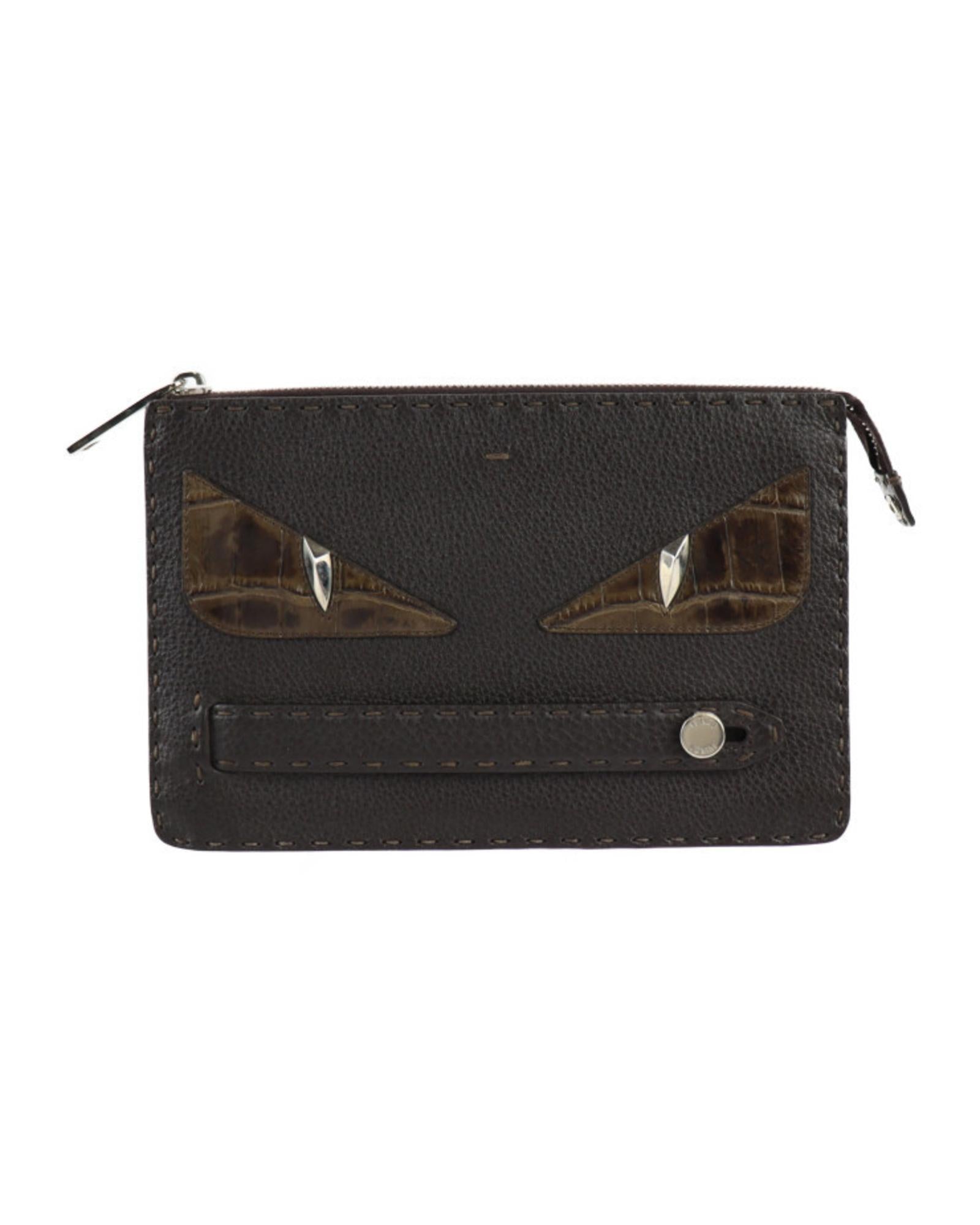 The Selleria line handbag from Fendi is a high-end fashion accessory suitable for both men and women. Made from quality leather this bag is available in dark brown with silver hardware.