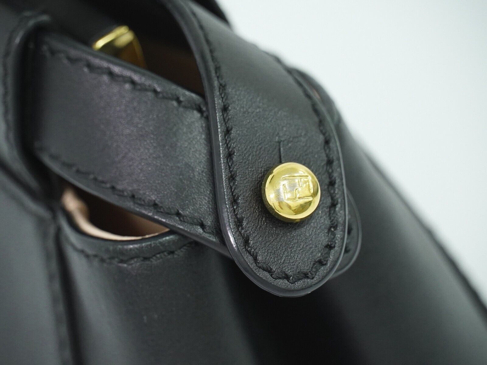 Elegant Black Leather Medium-Sized Bag with Gold Detailing