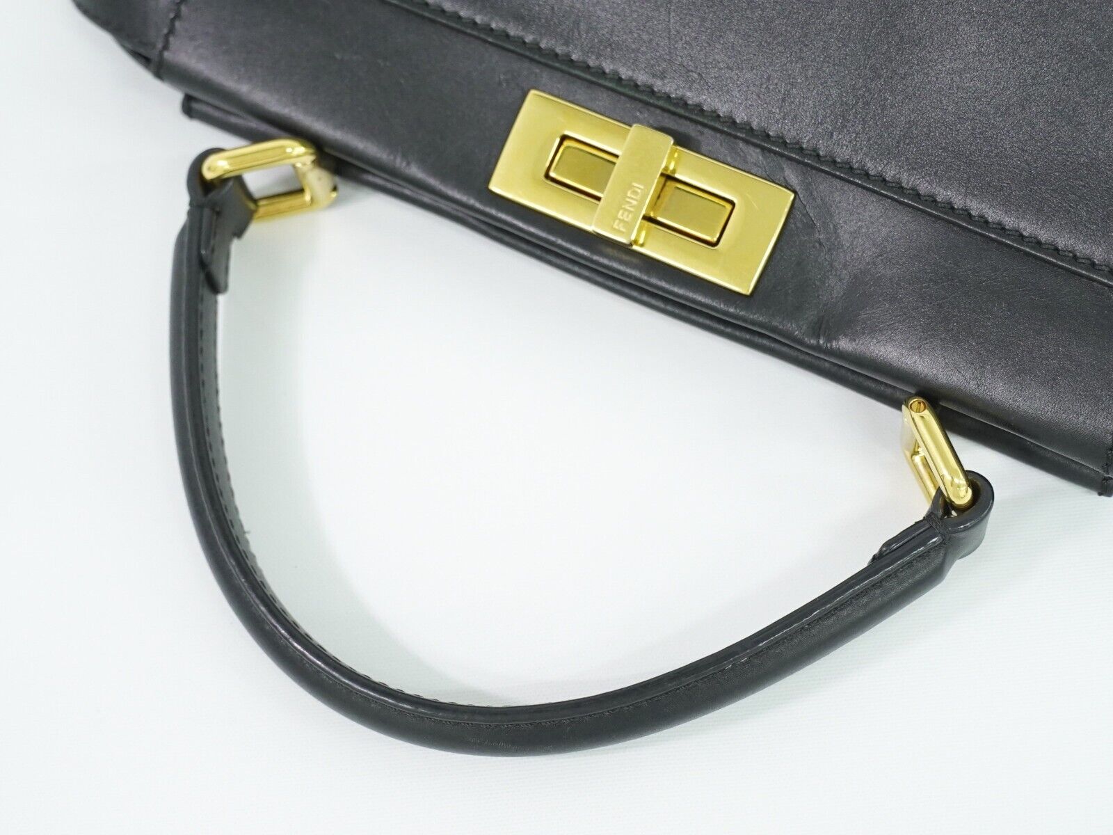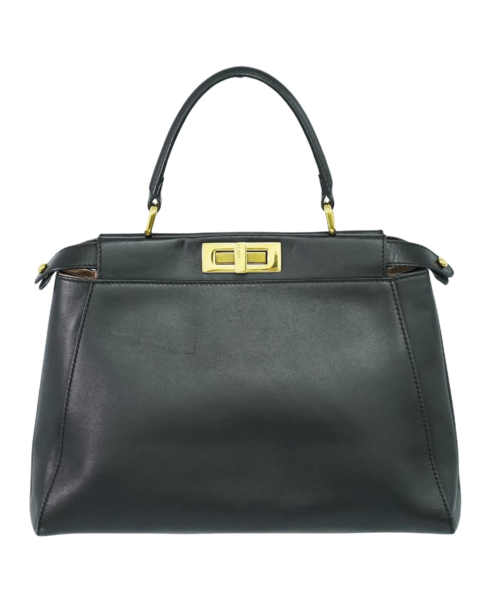 The Fendi Peekaboo bag is an elegant accessory designed for women and made in Italy. Medium-sized it's crafted in black leather with gold detailing offering a sophisticated timeless look. Its versatile style makes it an excellent choice for everyday use or special occasions.