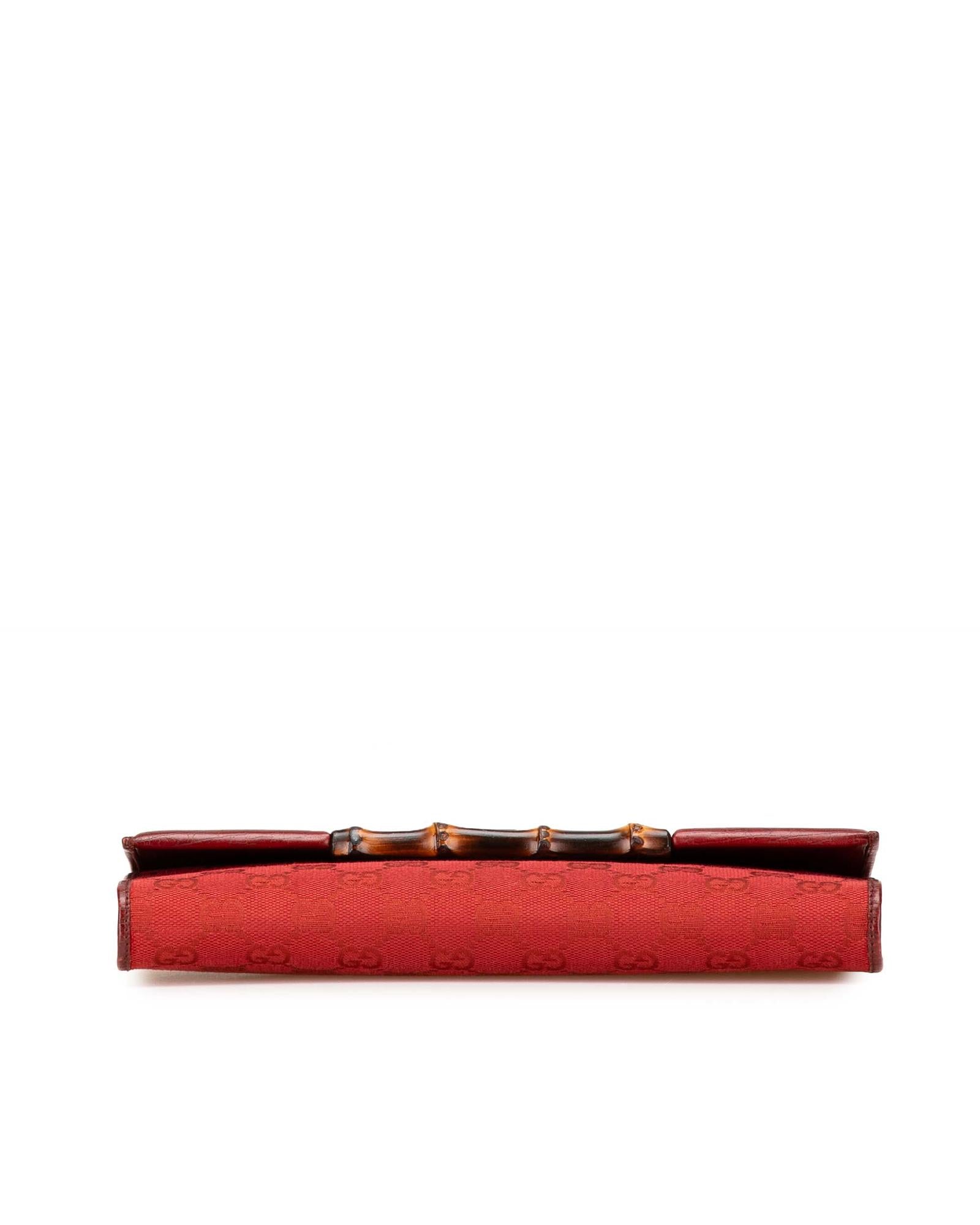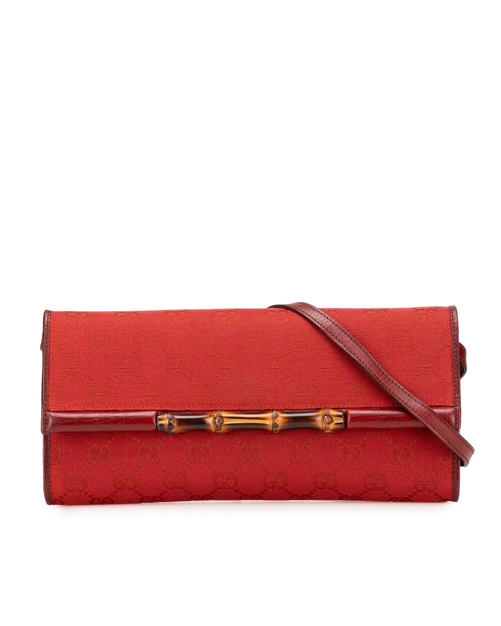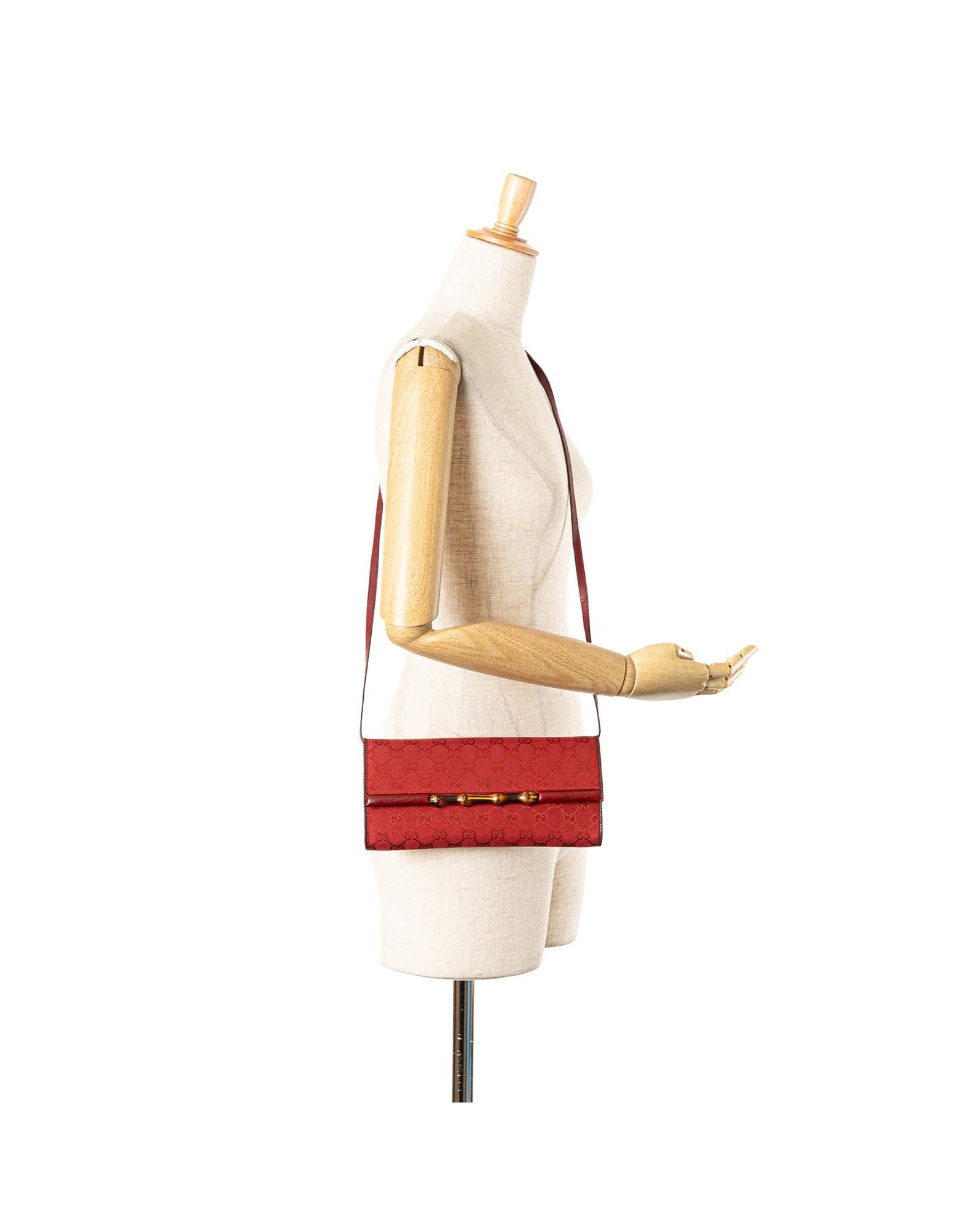 The Bamboo Bar crossbody features a canvas body with leather trim a flat leather strap a top flap with magnetic snap closure and an interior slip pocket.Brand: Gucci