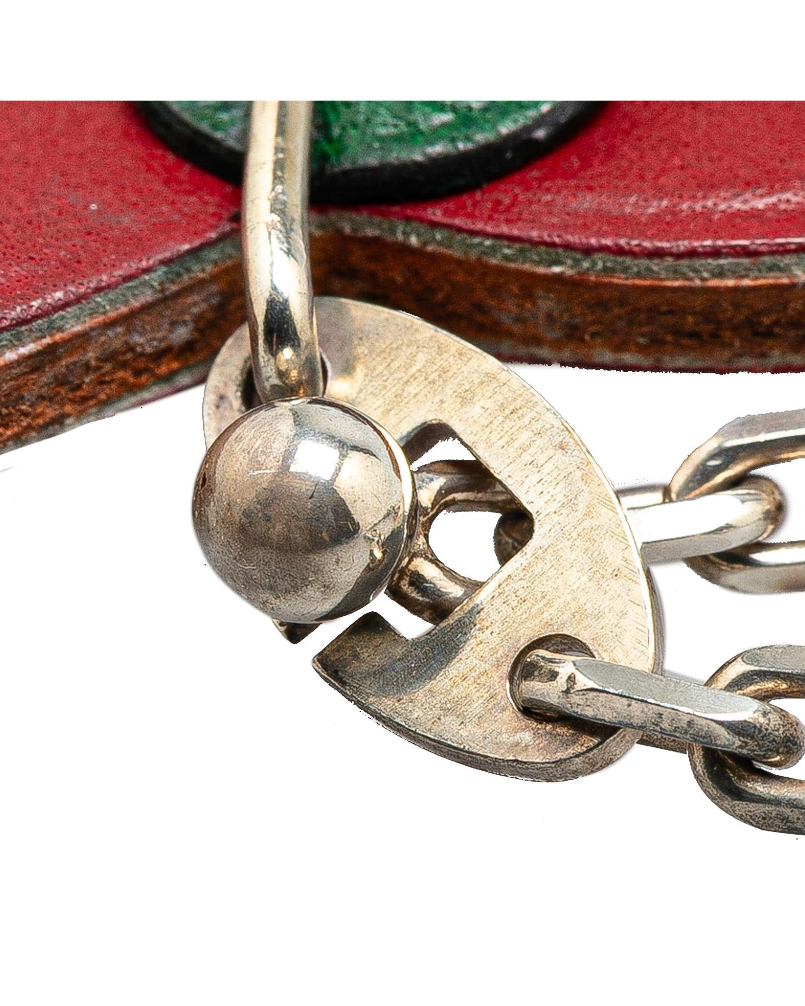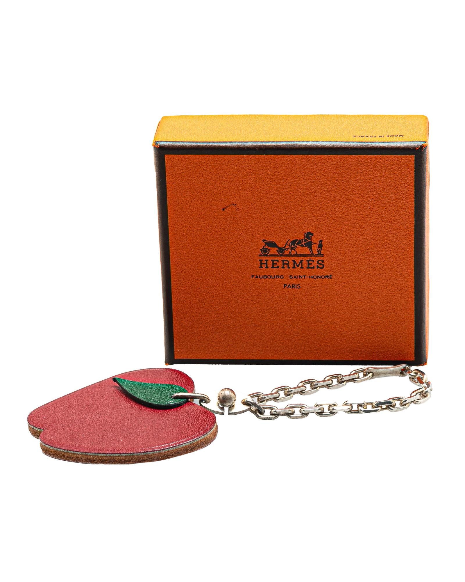 This key chain features a leather apple charm and a chain link strap.Brand: Hermes