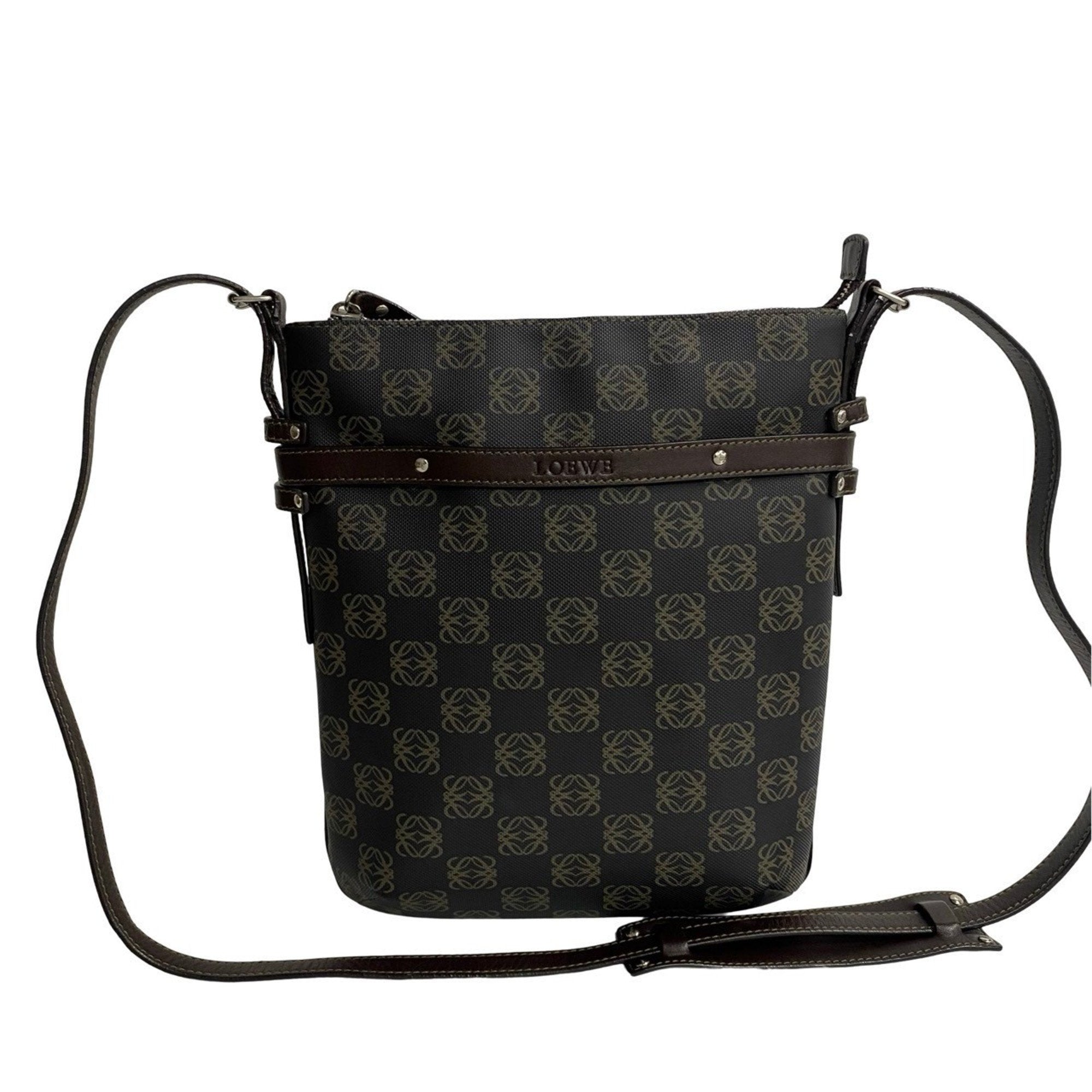 Sophisticated Brown Leather Shoulder Bag with Name Tag by Loewe