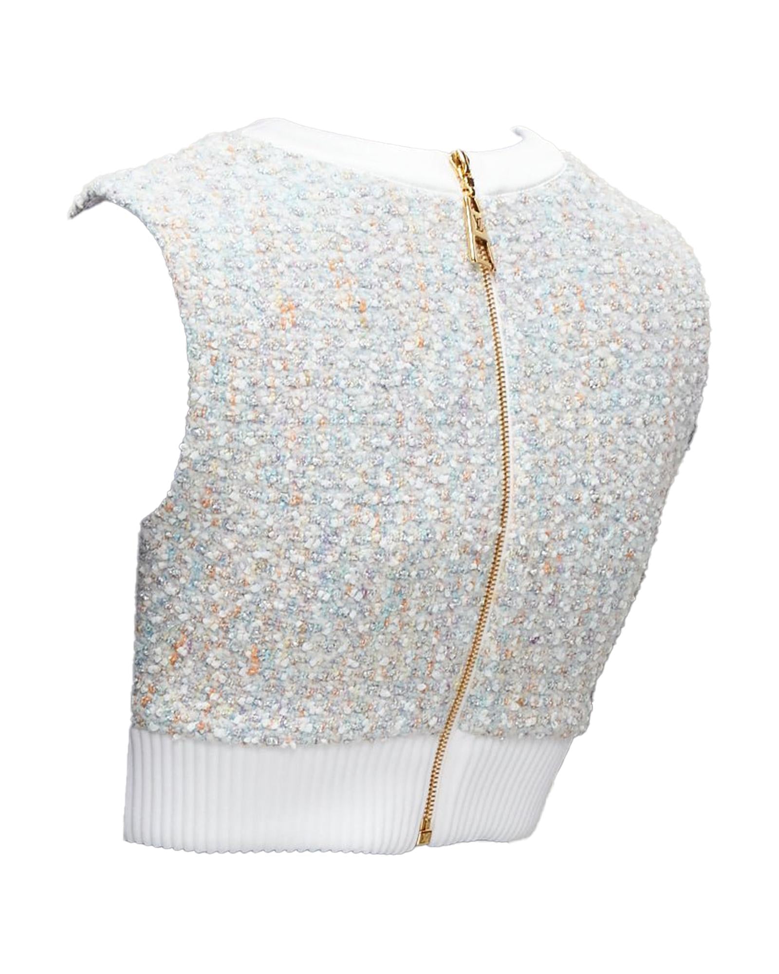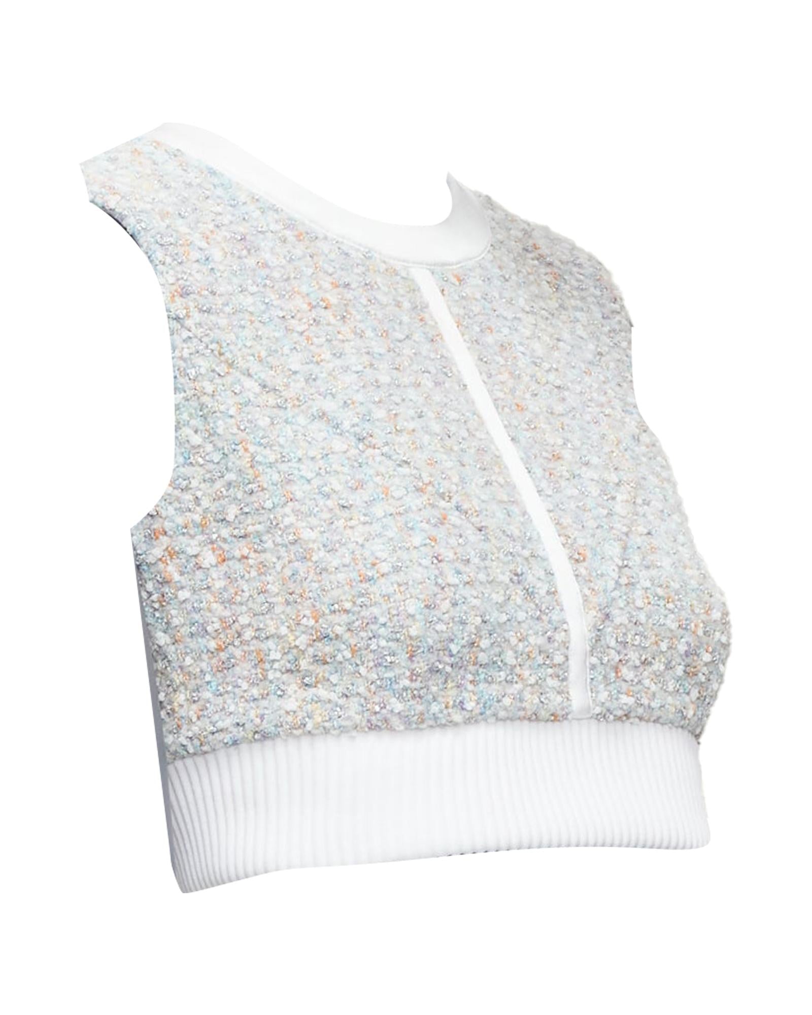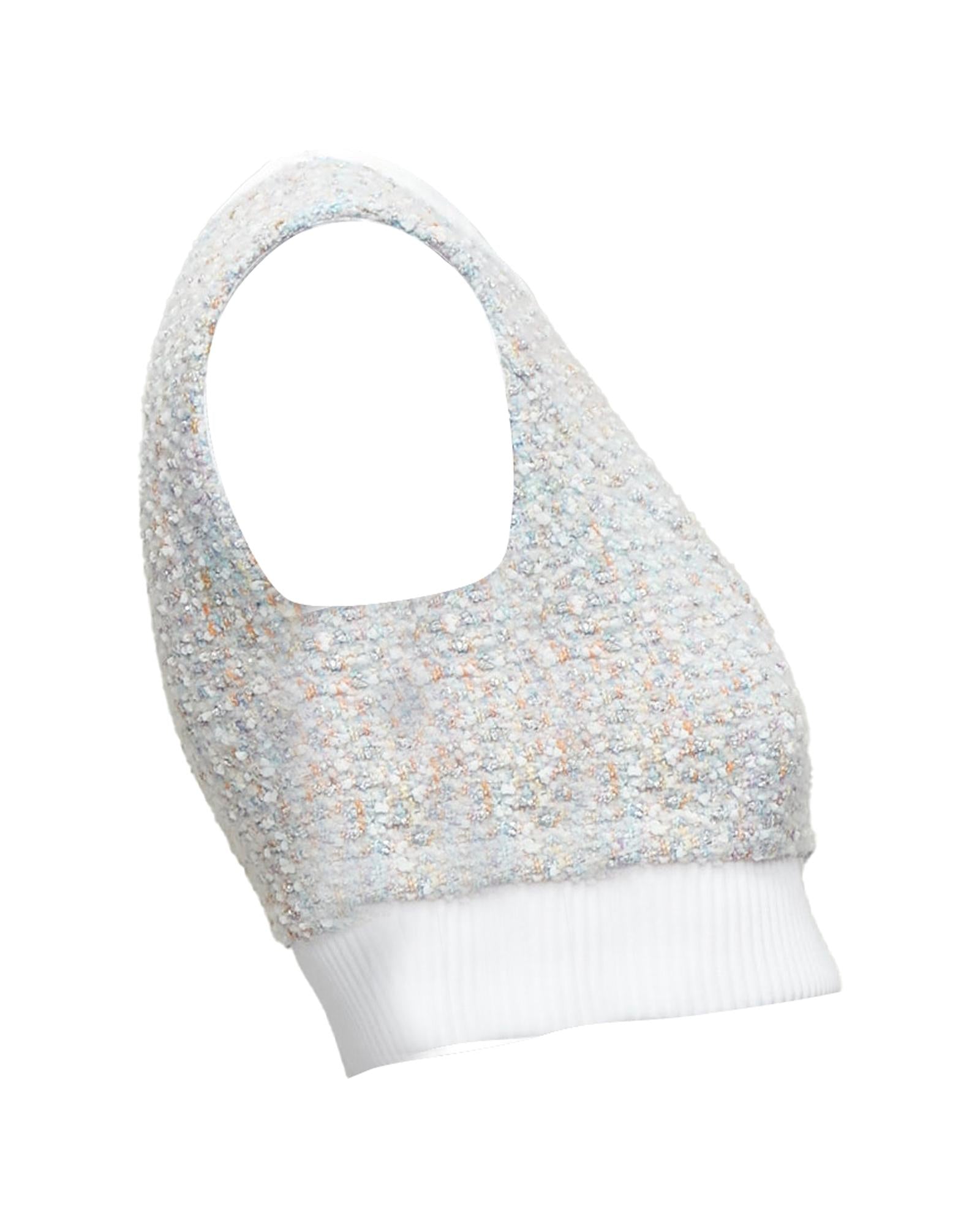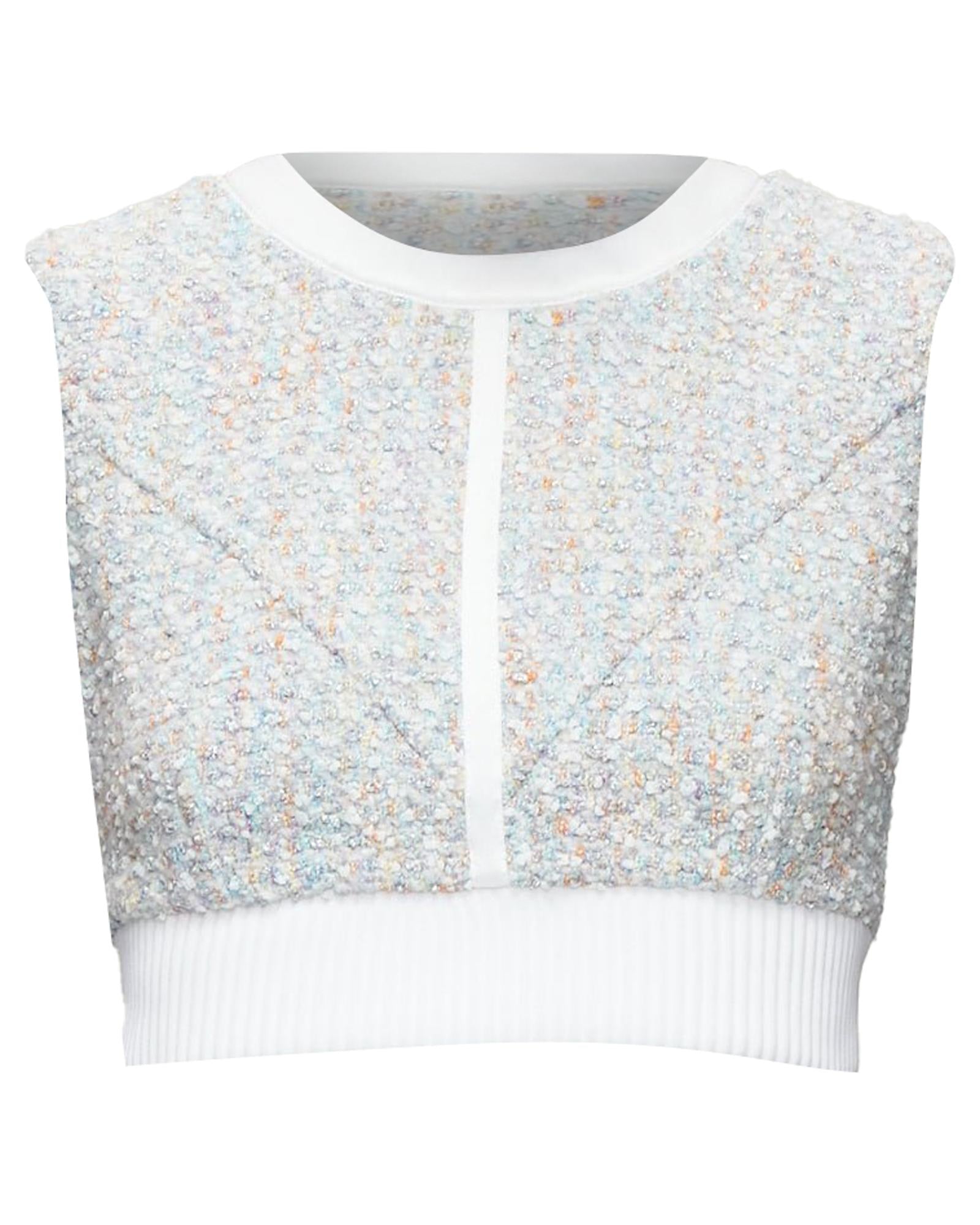 Textured Sleeveless Top with Ribbed Hem and Round Neckline