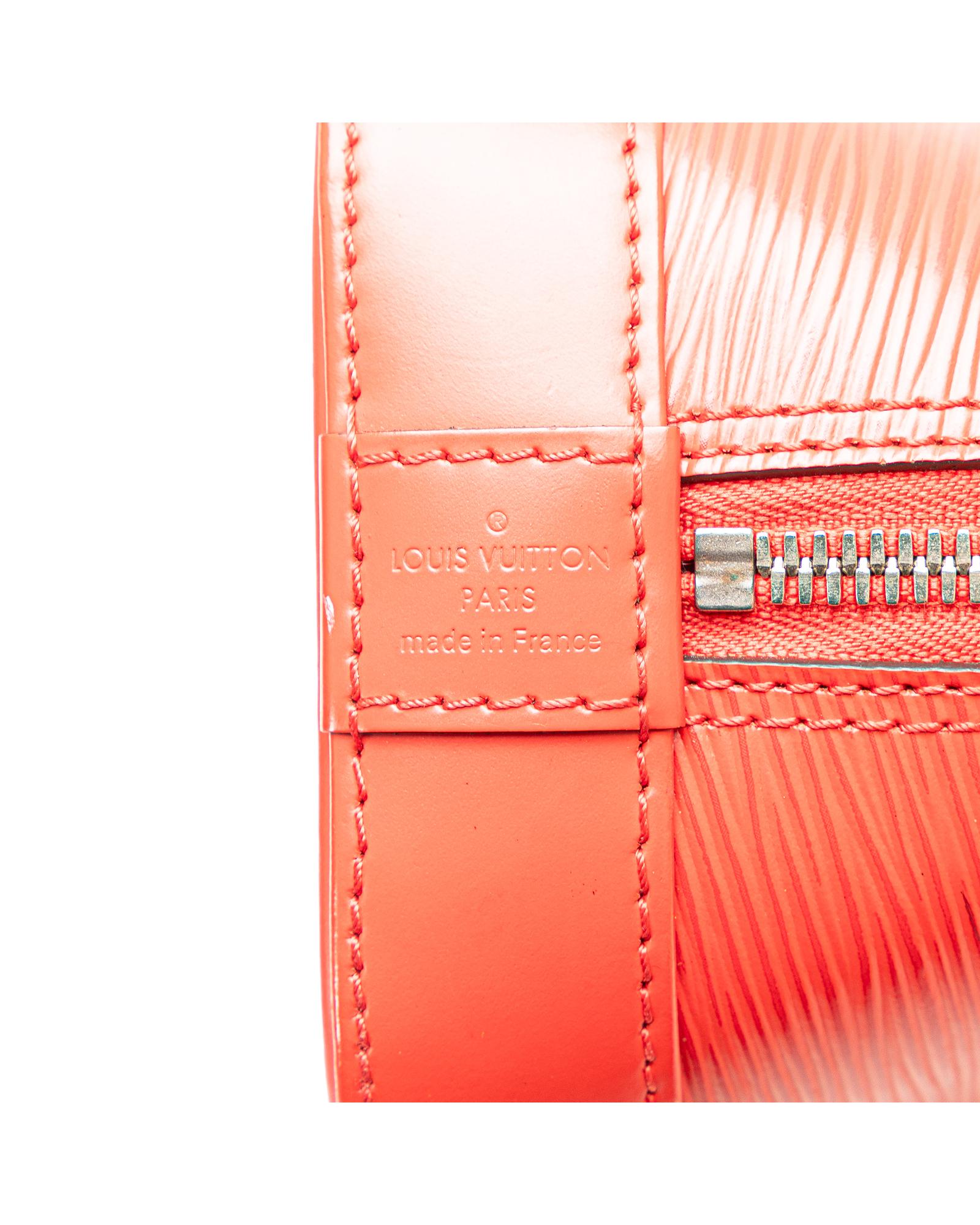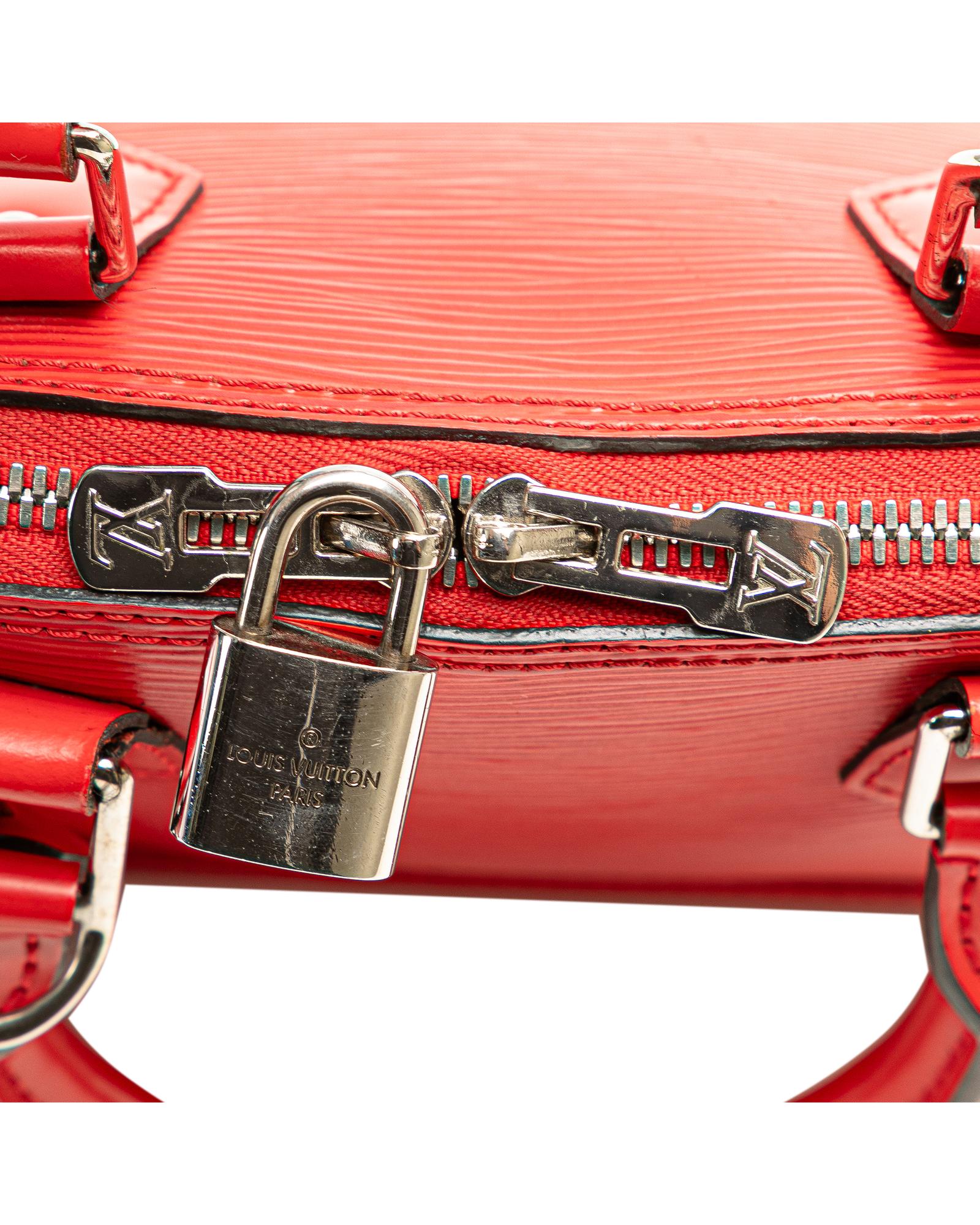 The Alma BB features an epi leather body rolled top handles a detachable flat leather strap a top zip closure and an interior slip pocket.Brand: Louis Vuitton