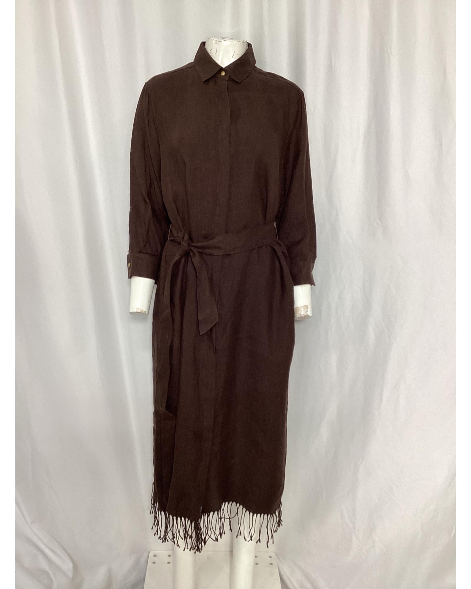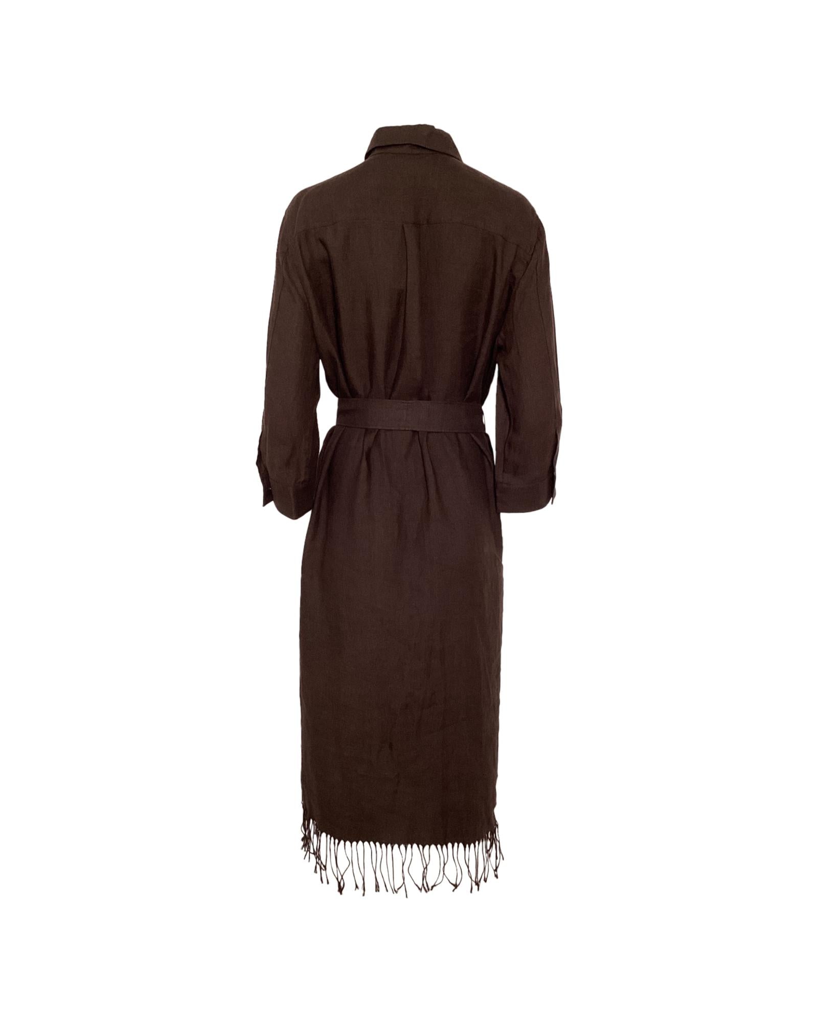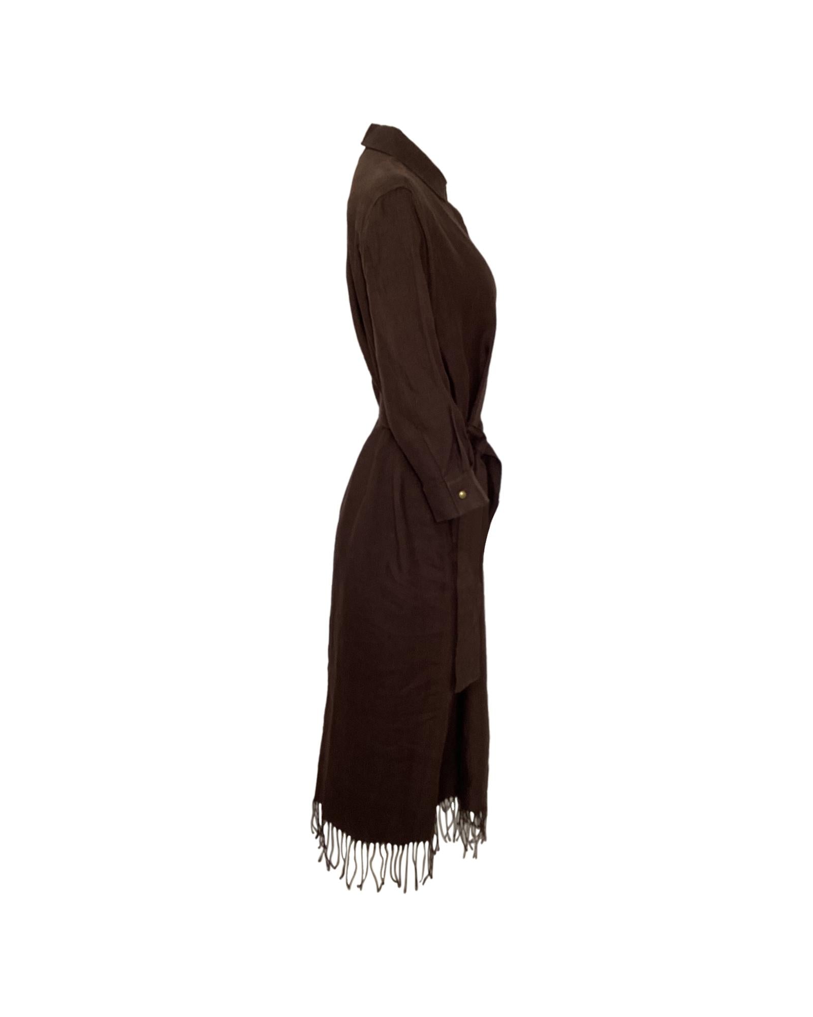 - Max Mara Lignano Belted Fringed Midi Dress in Brown Linen