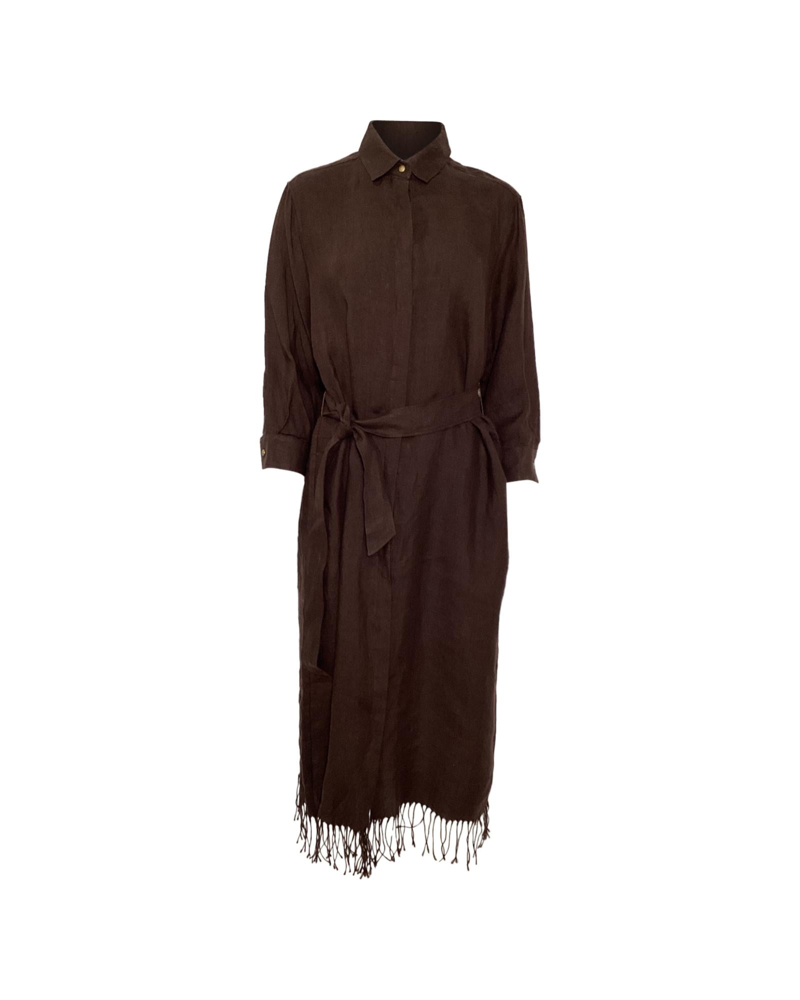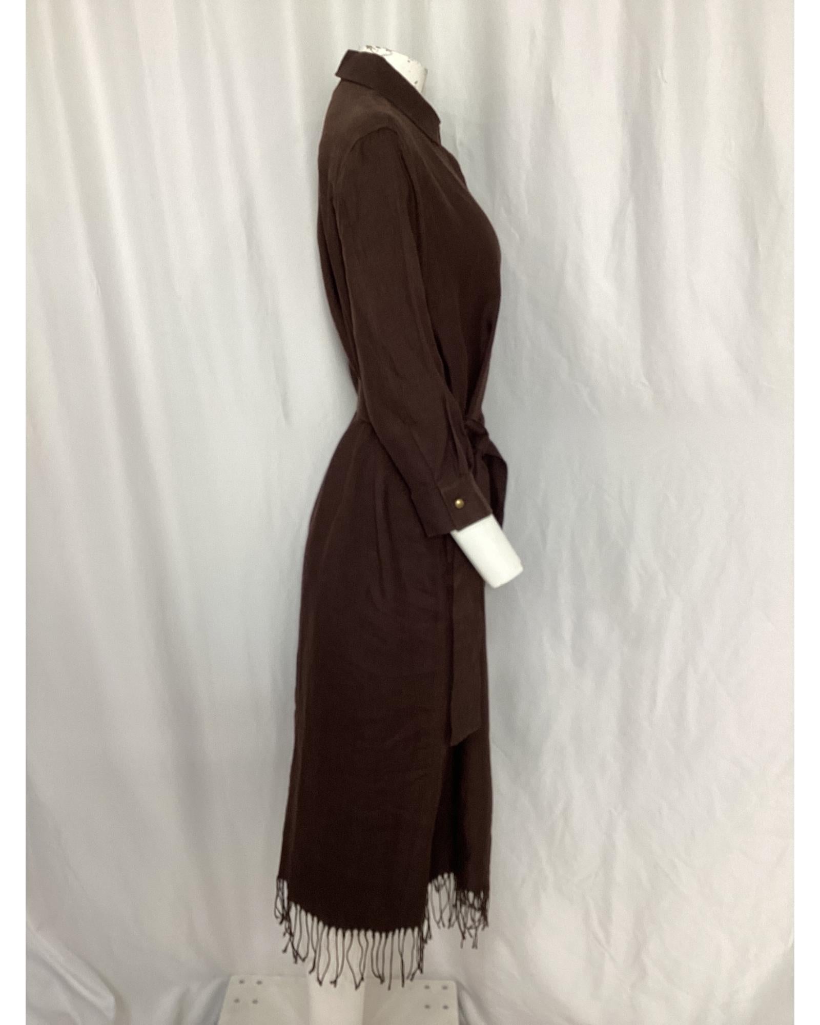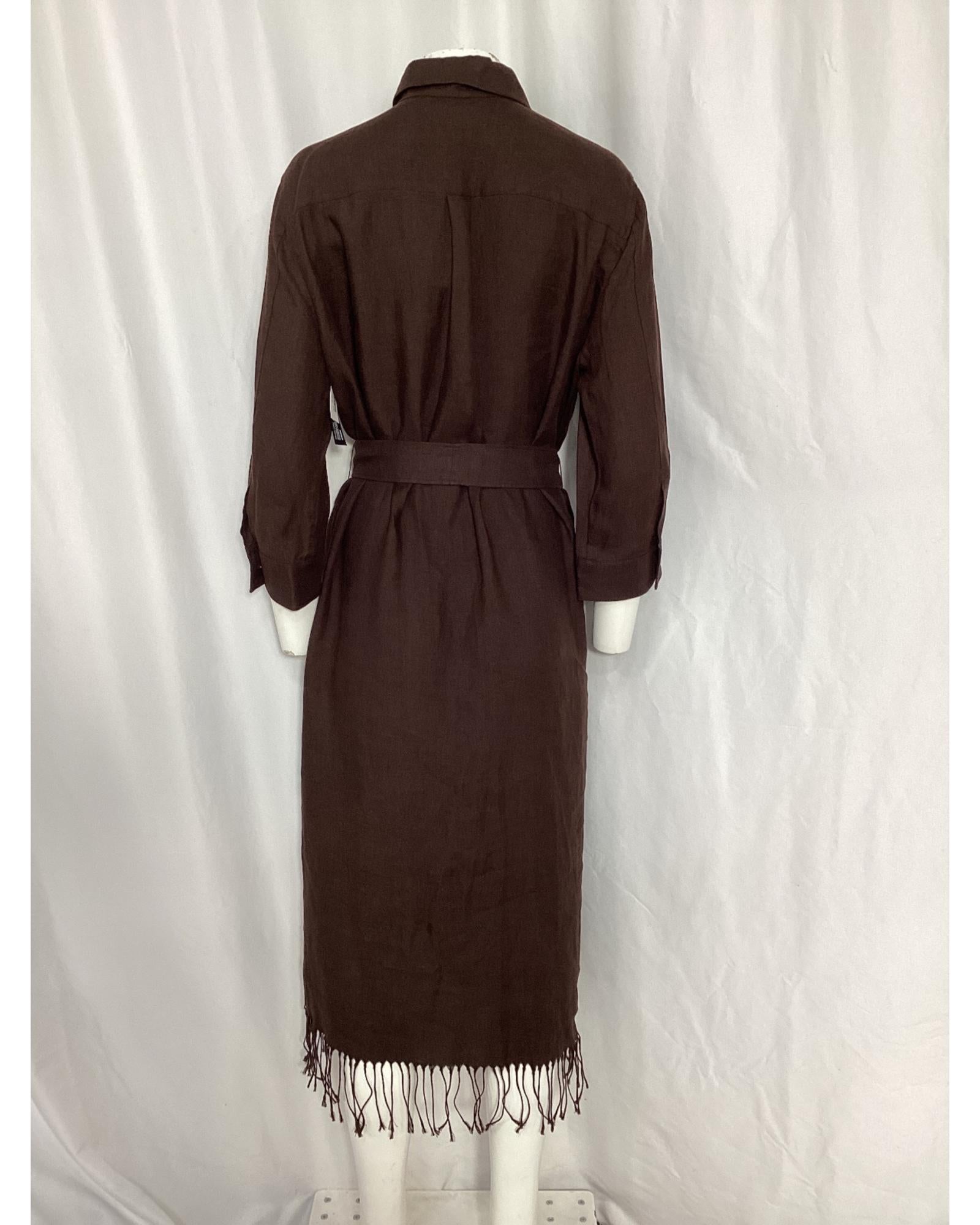 - Max Mara Lignano Belted Fringed Midi Dress in Brown Linen