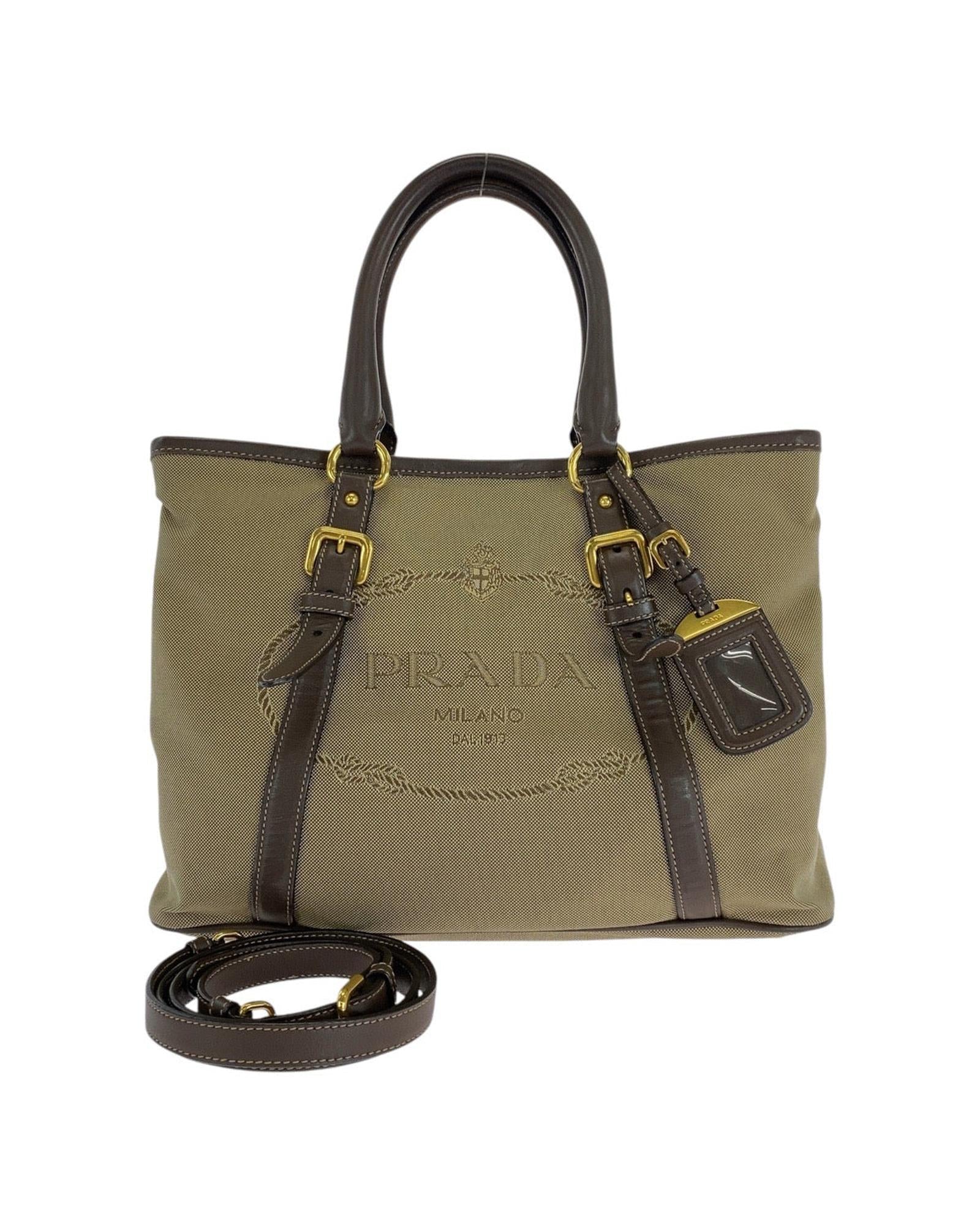 - Item name: Prada Canvas Leather Logo Jacquard Tote Bag