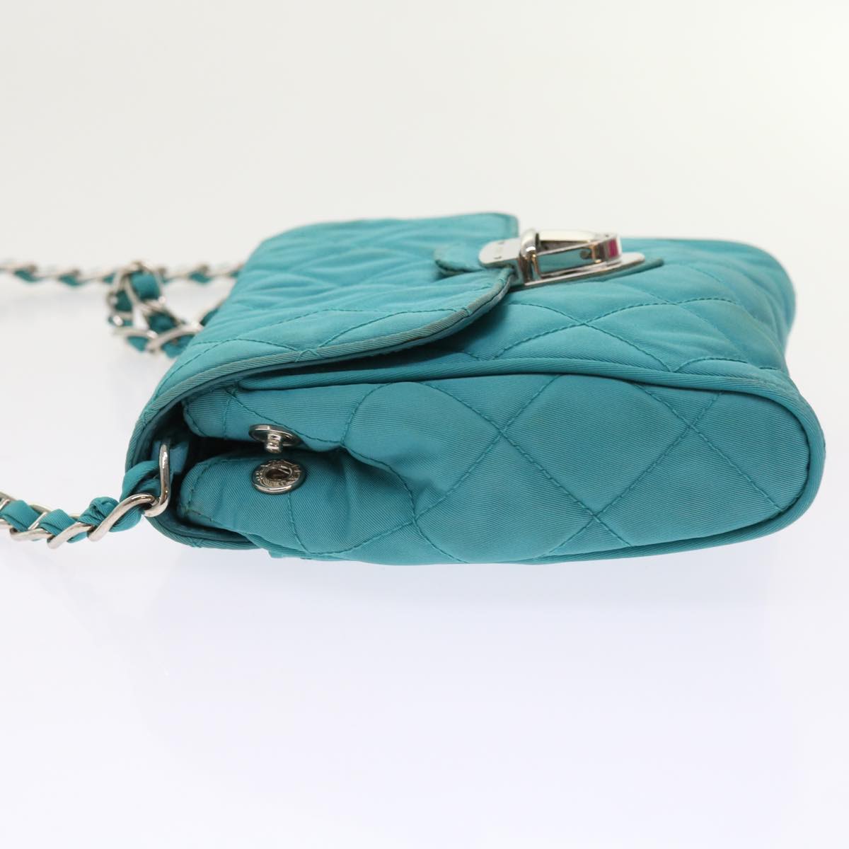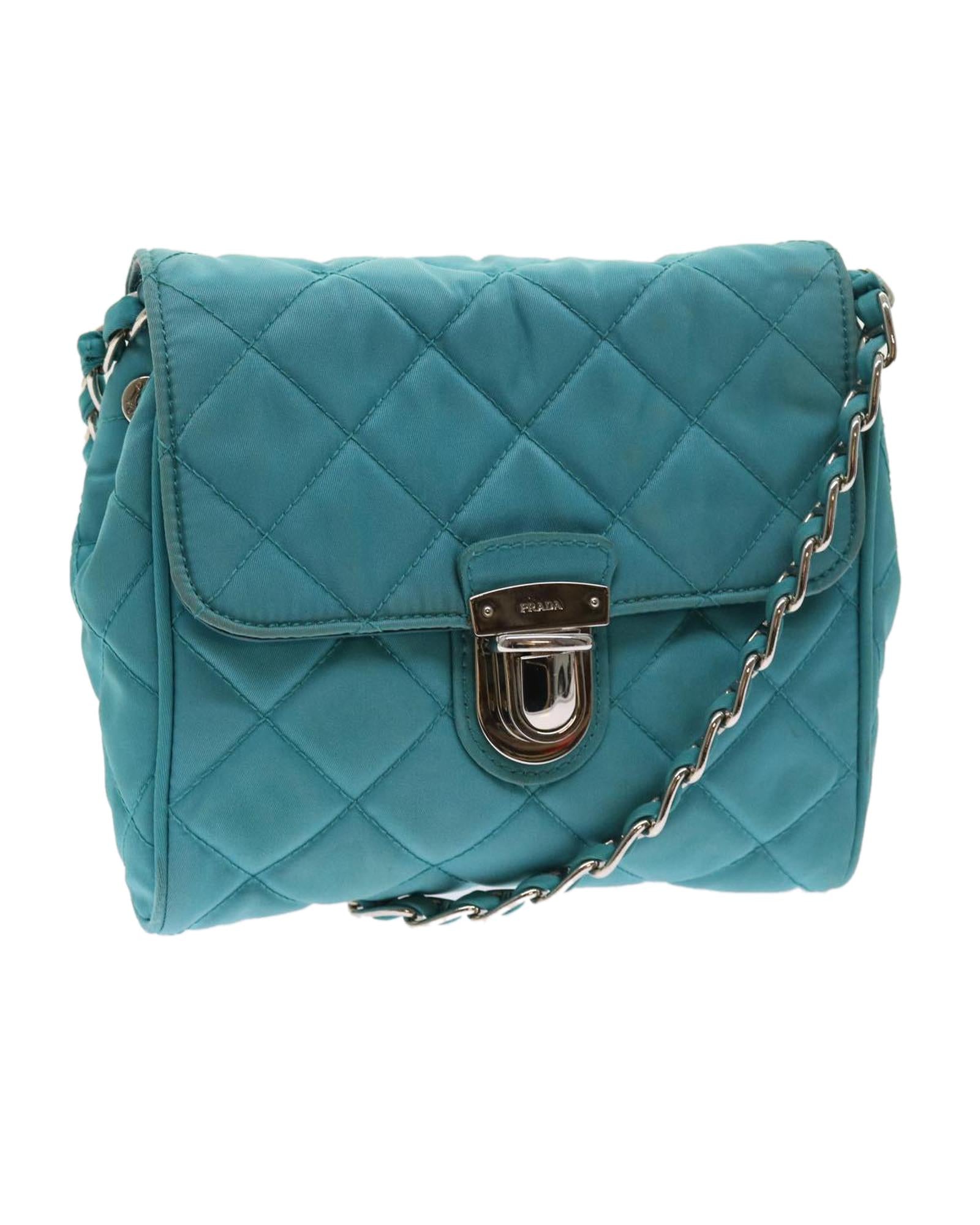 The Prada Tessuto in a vibrant Turquoise Blue shade is a stylish shoulder bag crafted from Nylon in Italy.