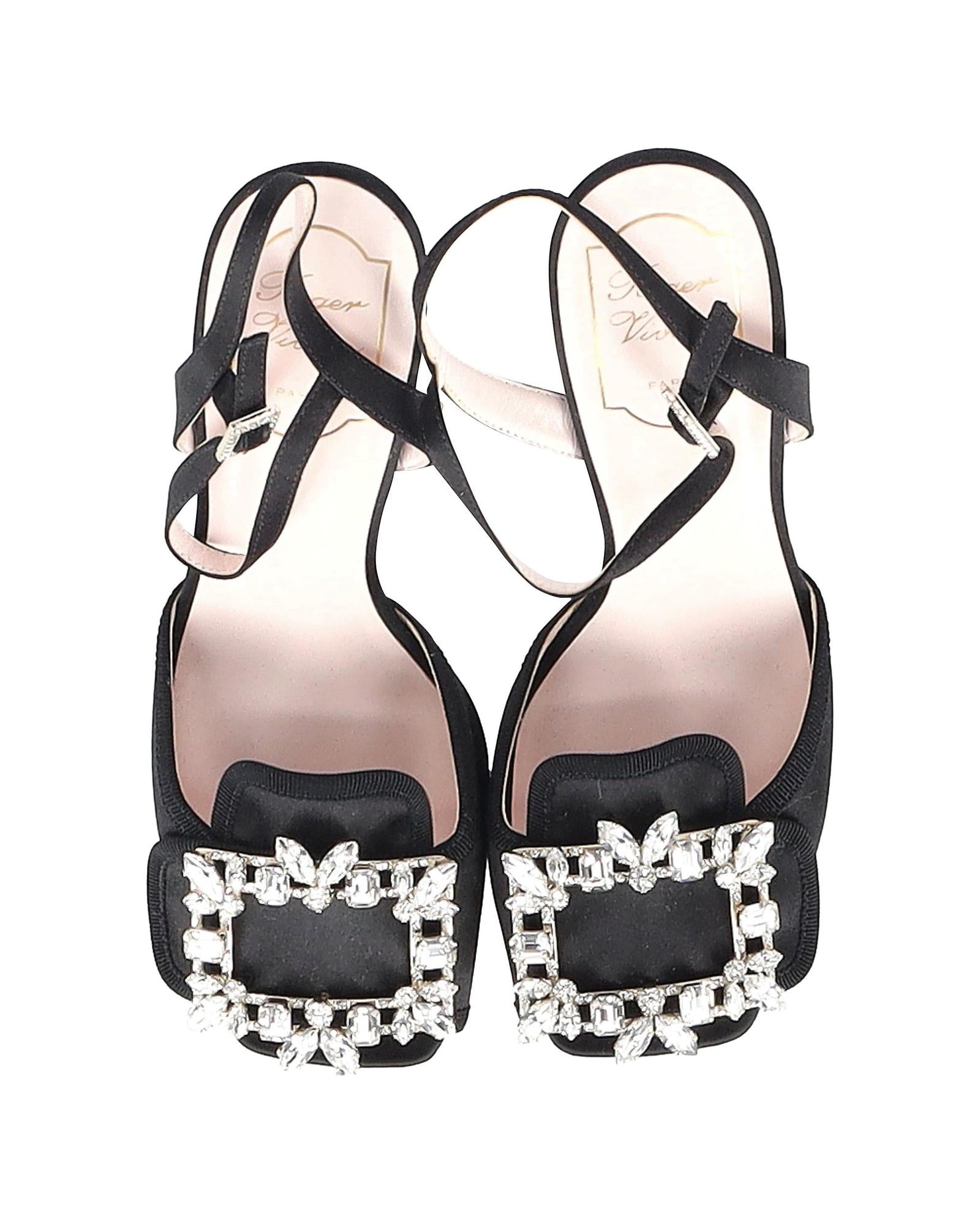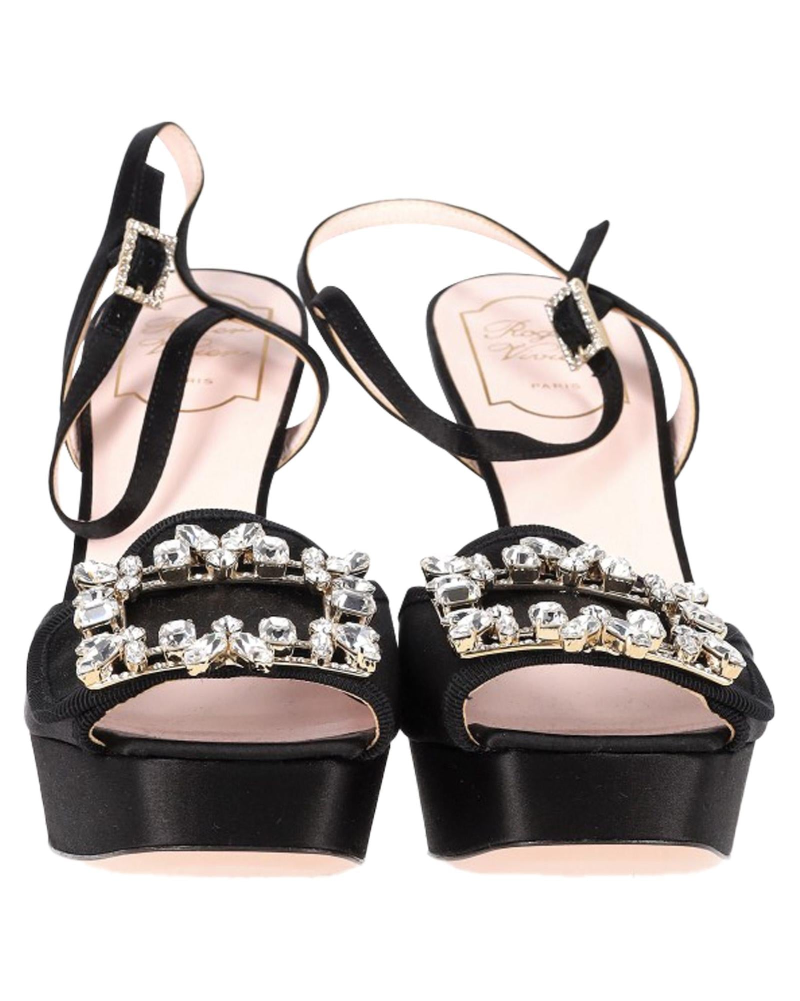 - Roger Vivier Crystal Buckle Platform Sandal Heels