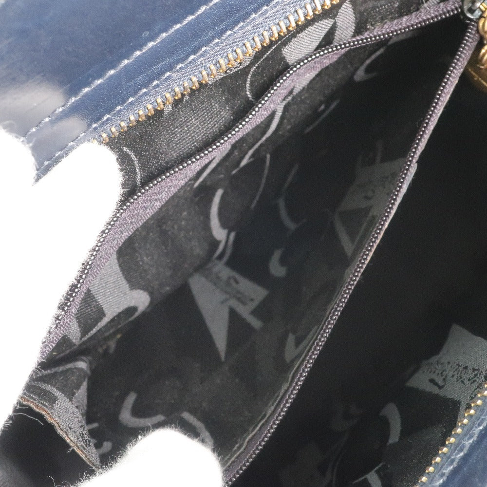 Navy Leather Vala Shoulder Bag by Salvatore Ferragamo