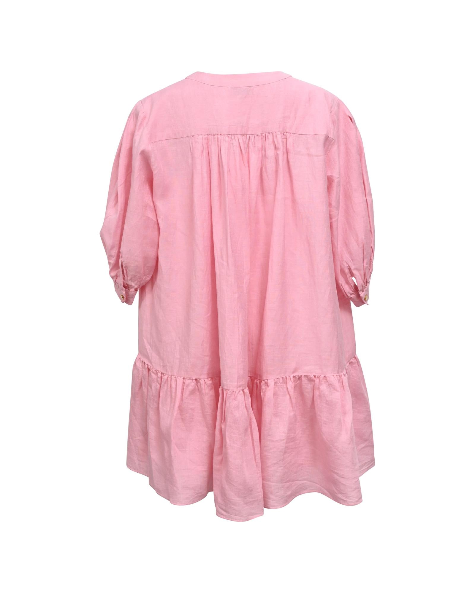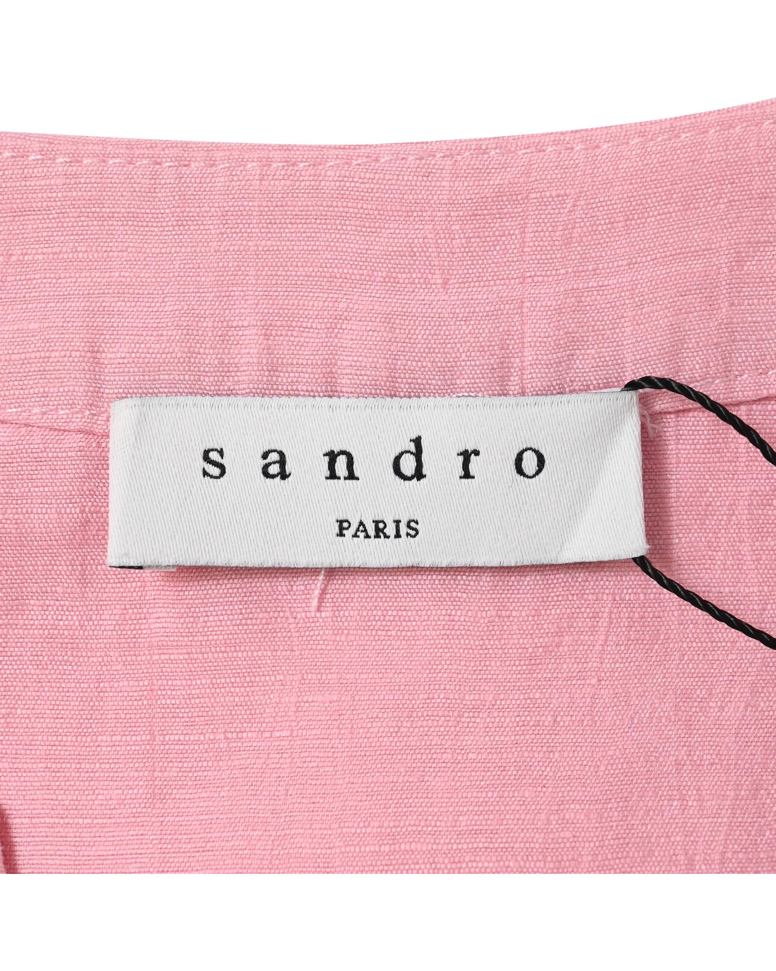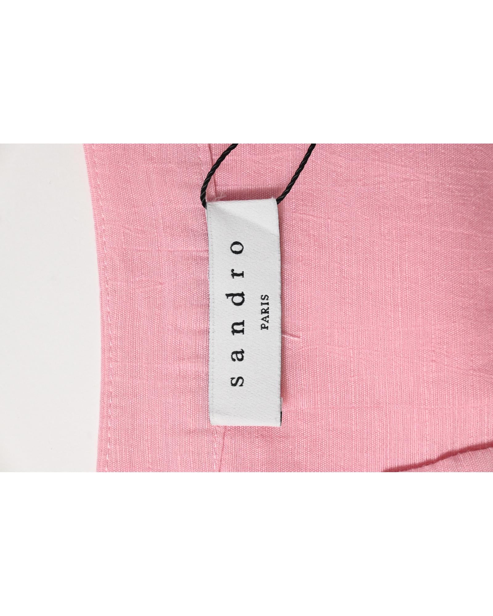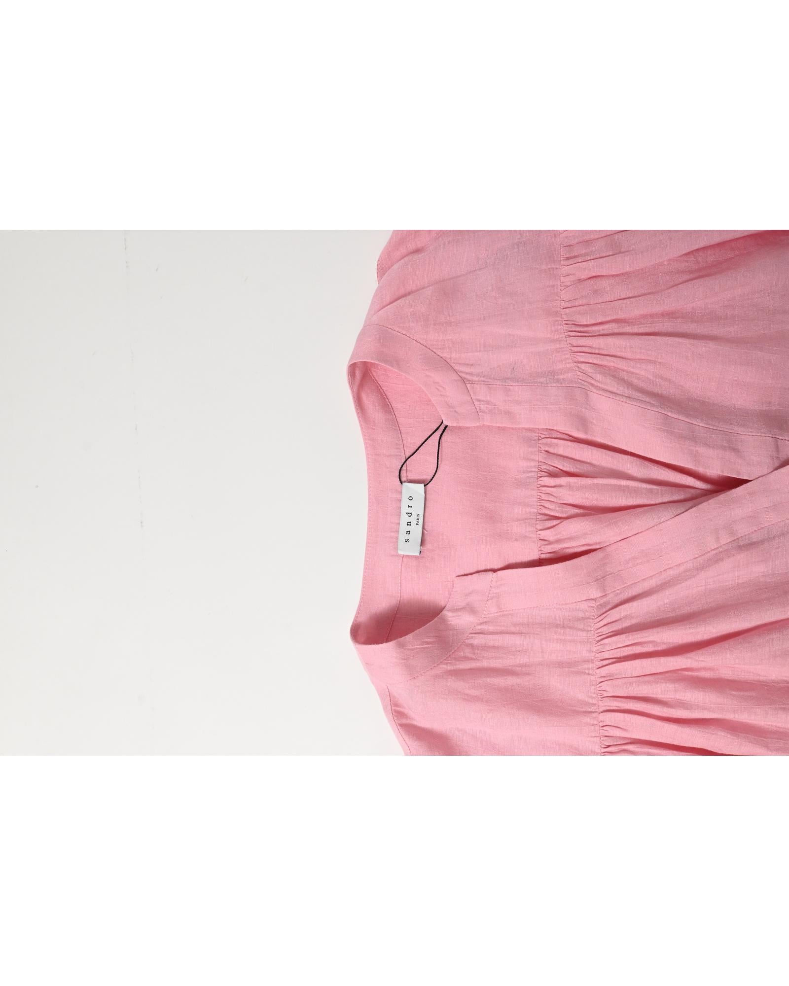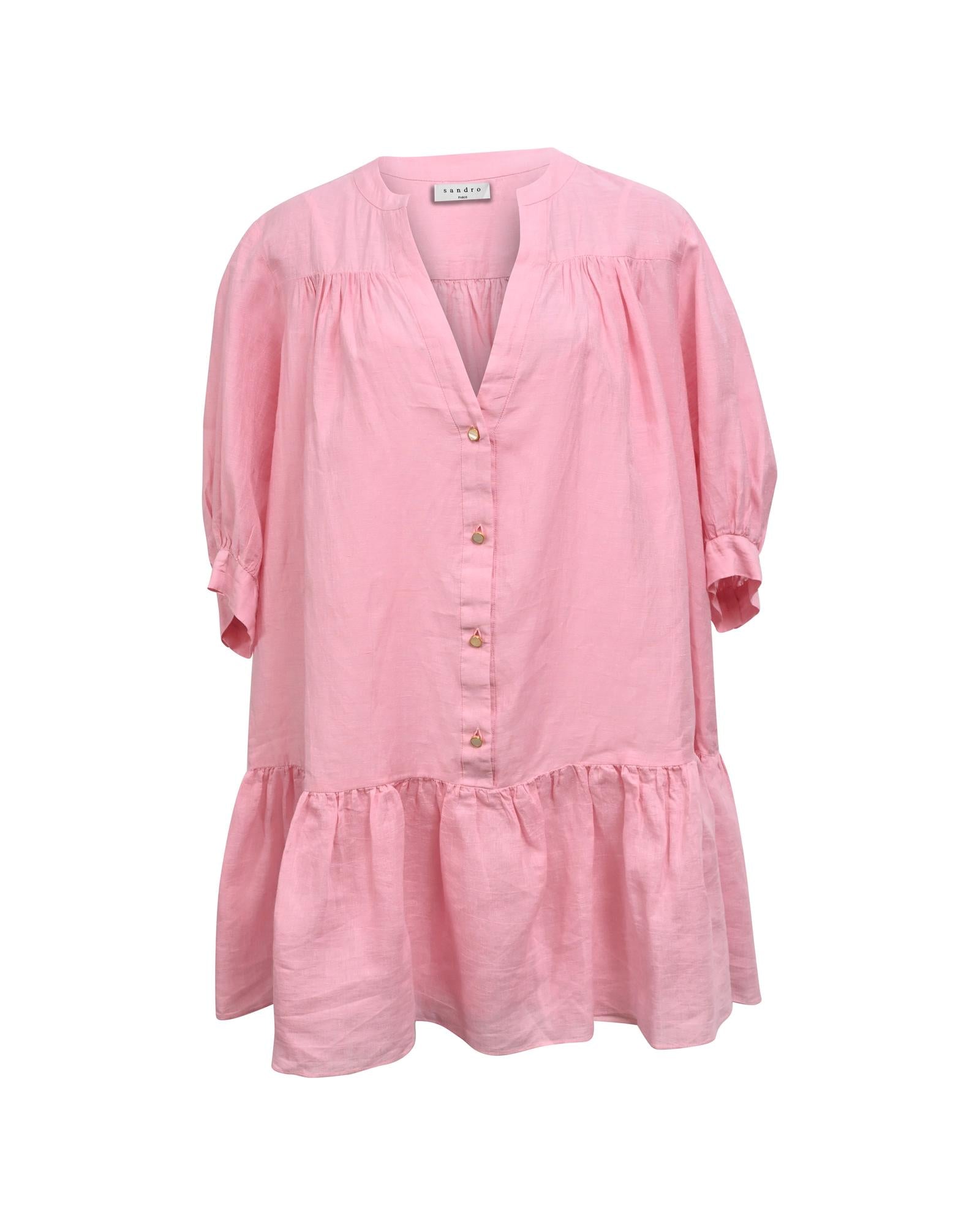 - Sandro Paris Buttoned Mini Flared Dress in Pink Linen