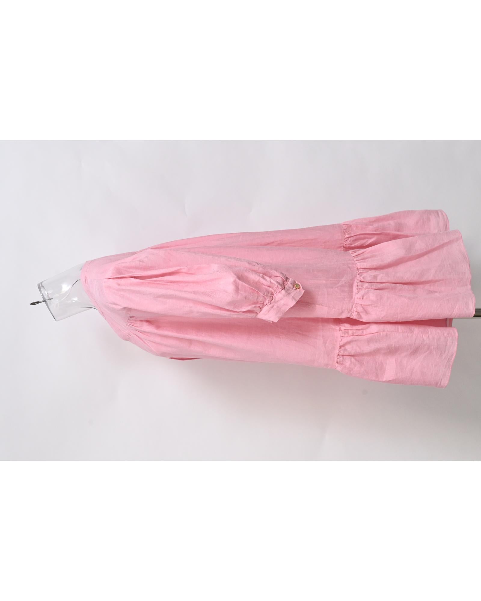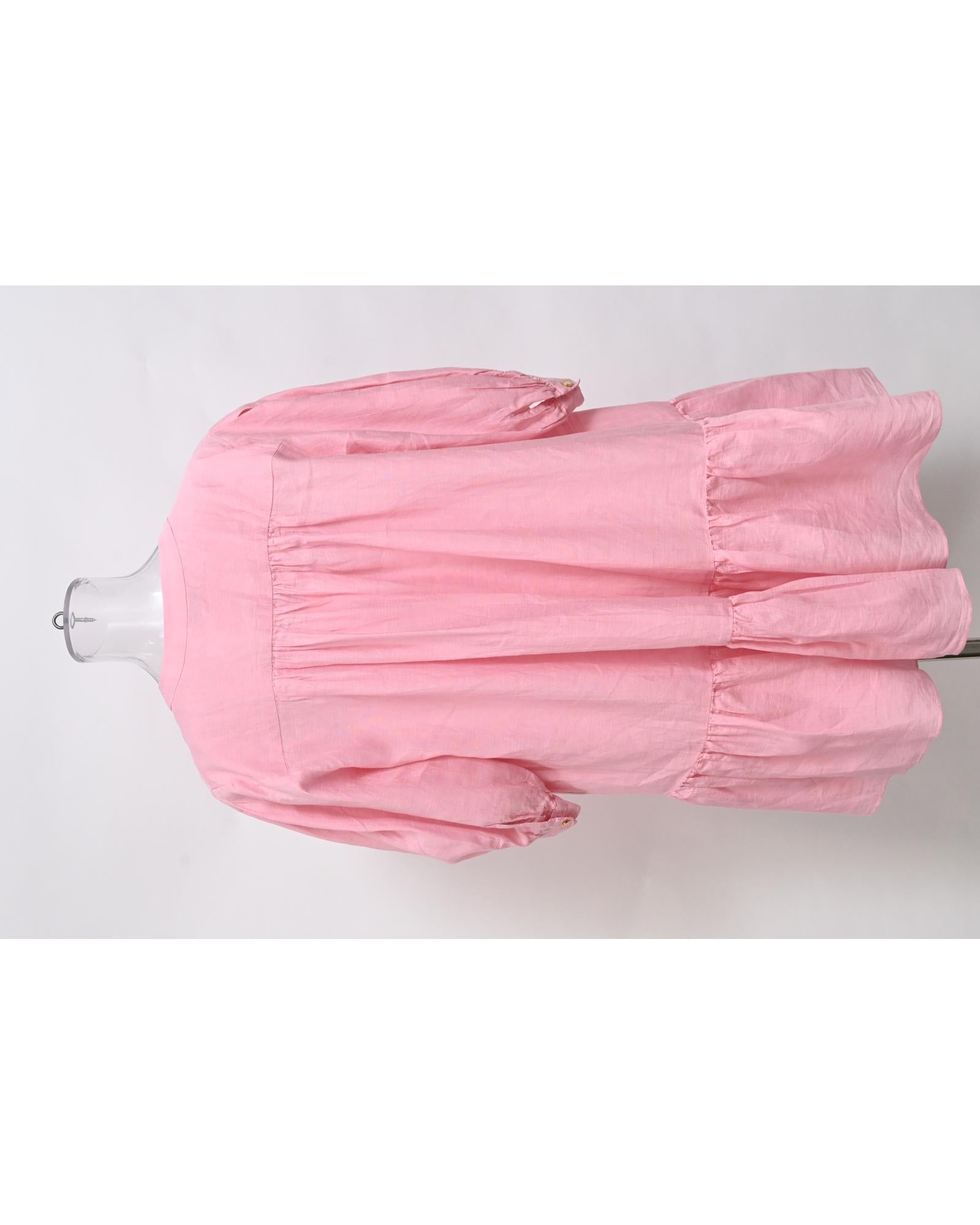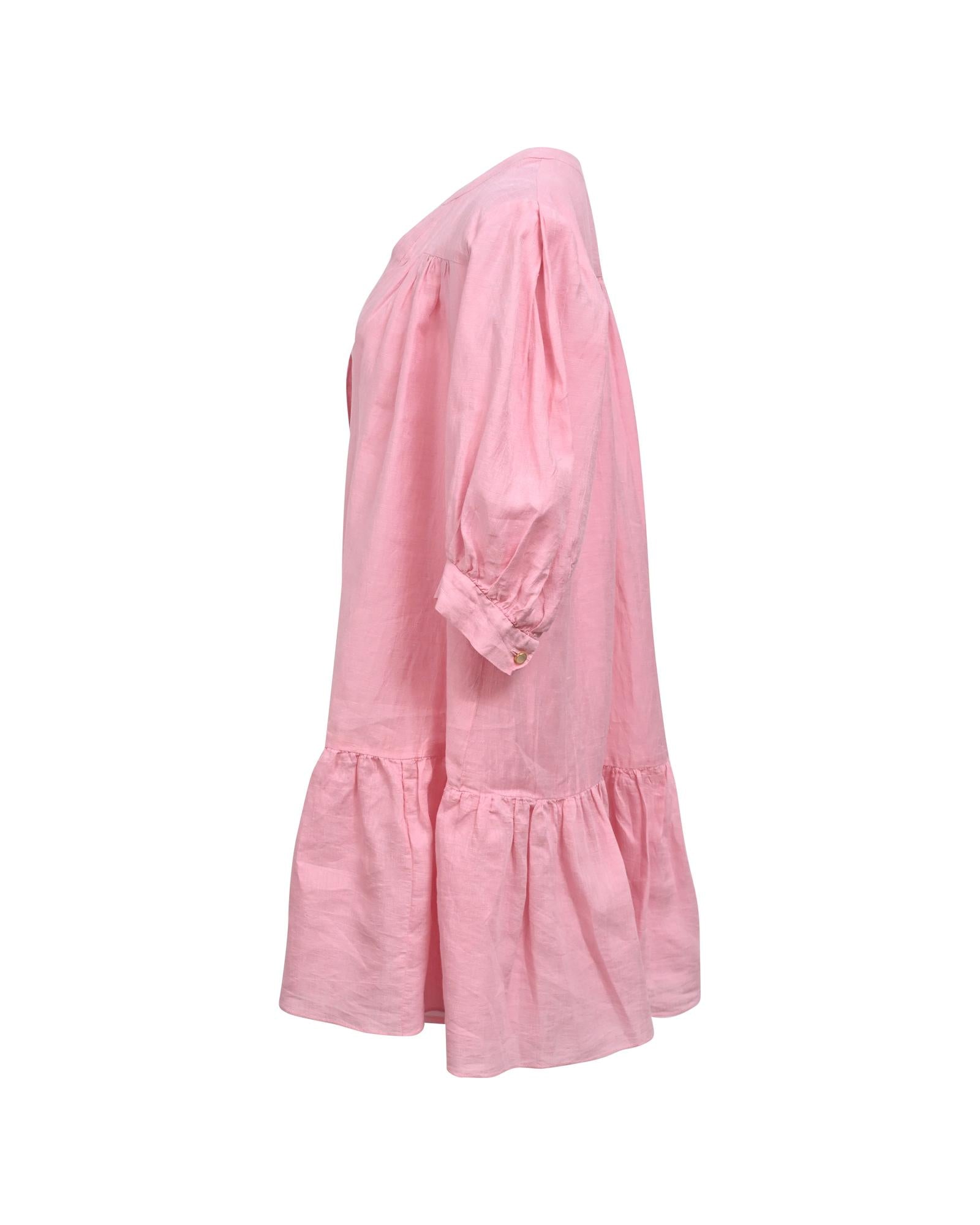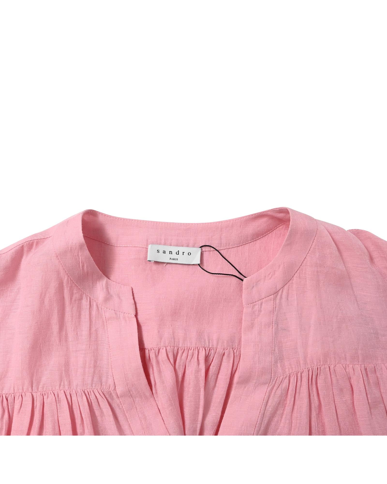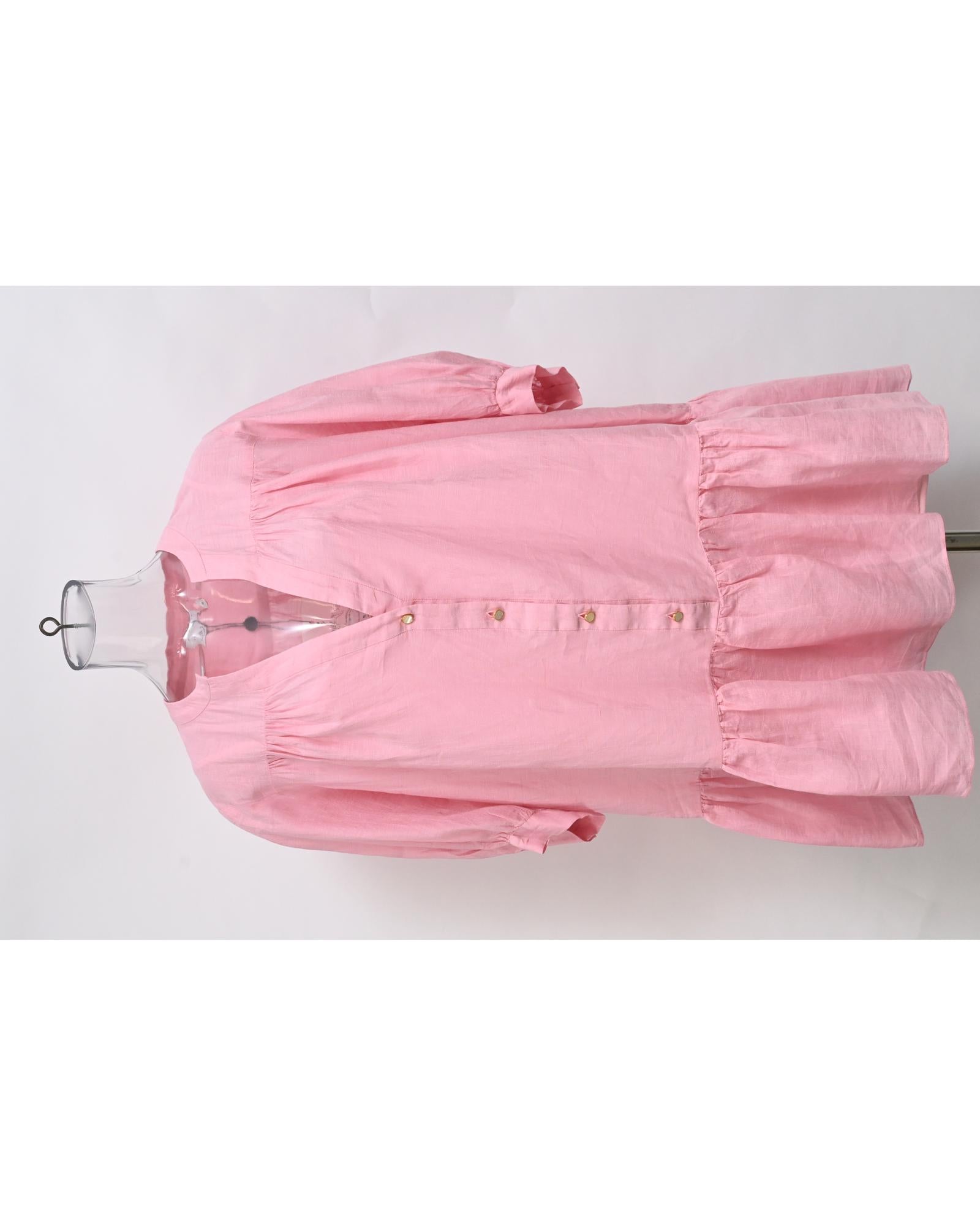 - Sandro Paris Buttoned Mini Flared Dress in Pink Linen