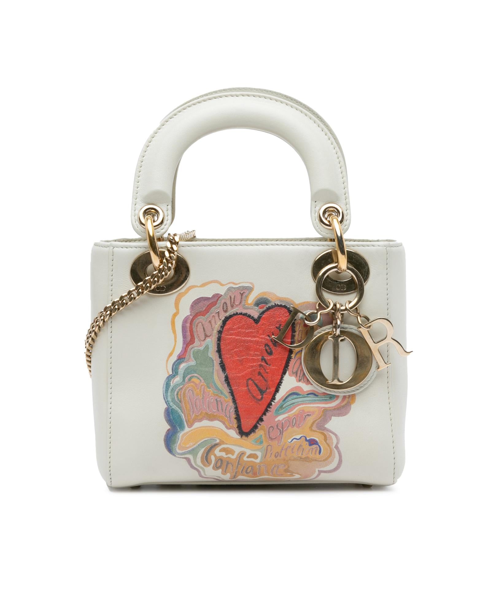 Pre-owned Elegant Top Handle Bag with Charming Heart Graphic and Chain Accent