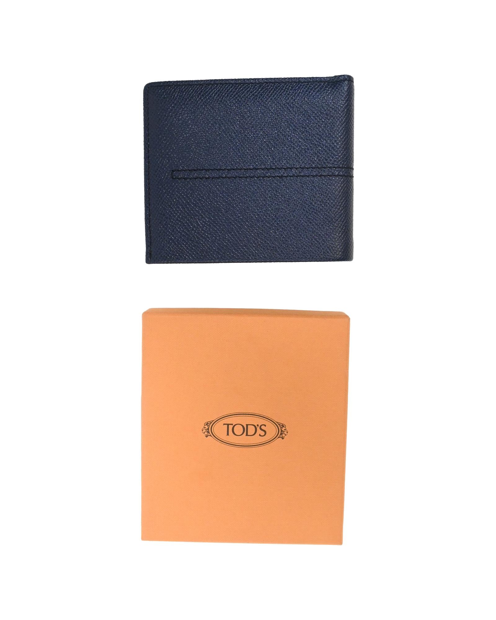 - Tods Bifold Wallet in Navy Blue Saffiano Leather