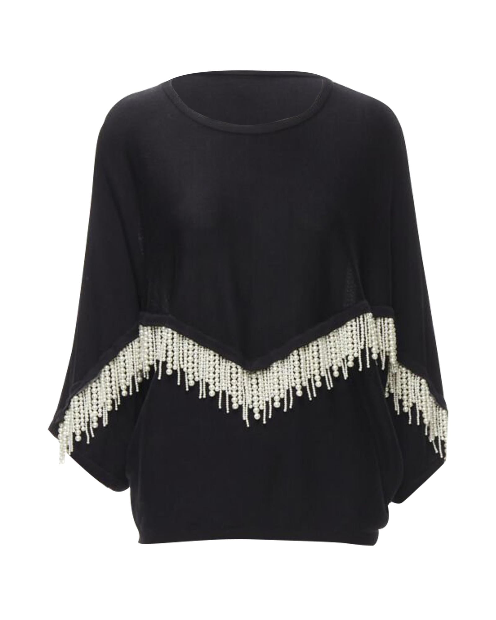 Pre-owned Elegant Top with Decorative Bead Fringe Detailing