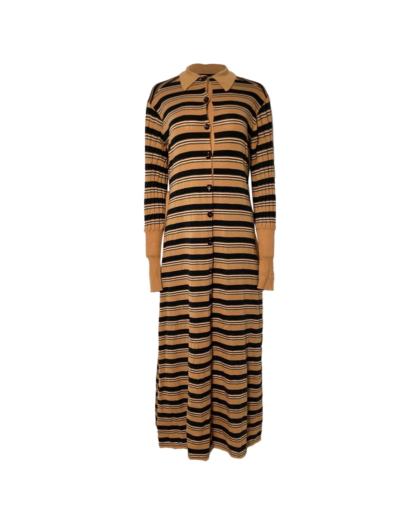 - Chloe Striped Shirt Maxi Dress in Brown Wool