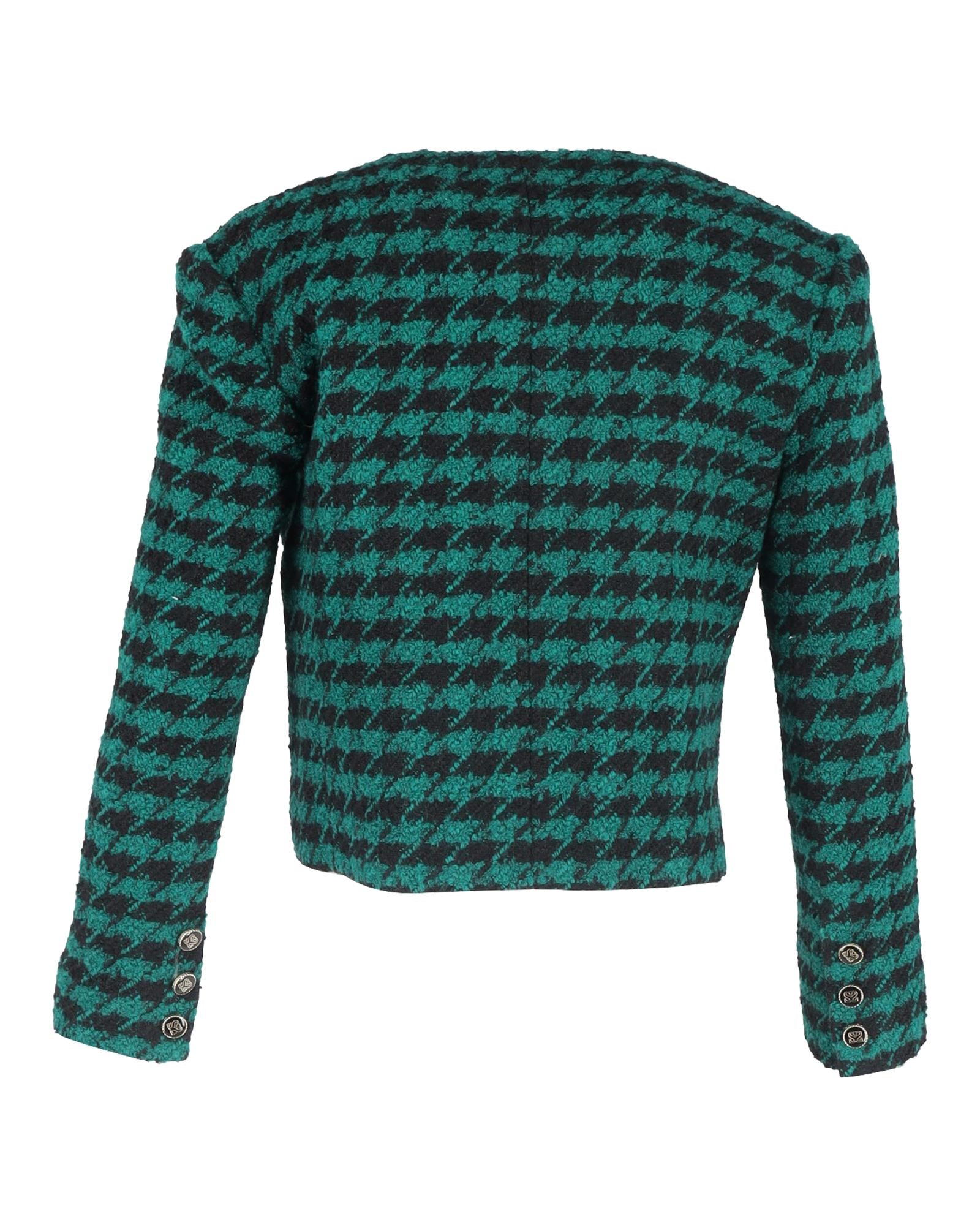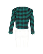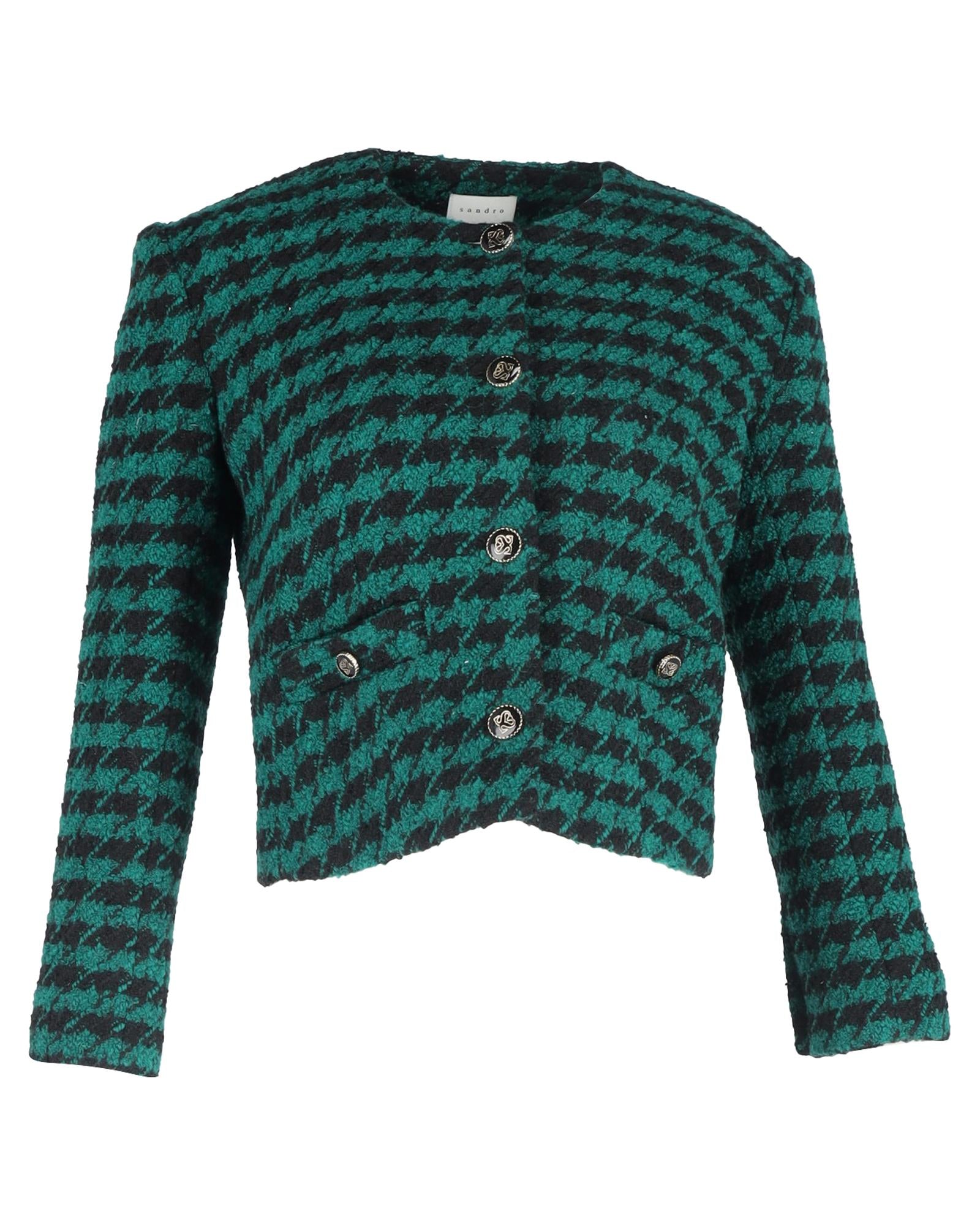 - Sandro Paris Houndstooth Print Cropped Blazer in green tweed wool