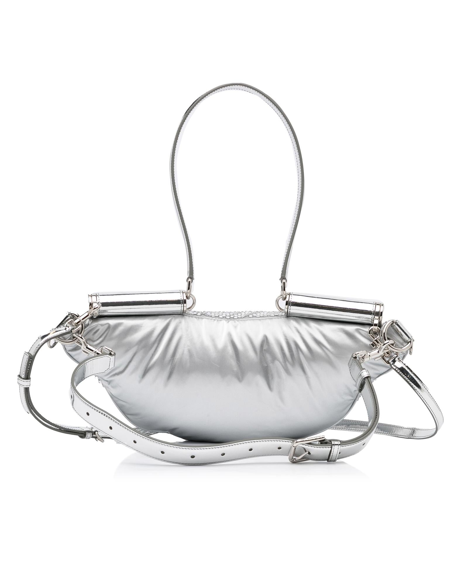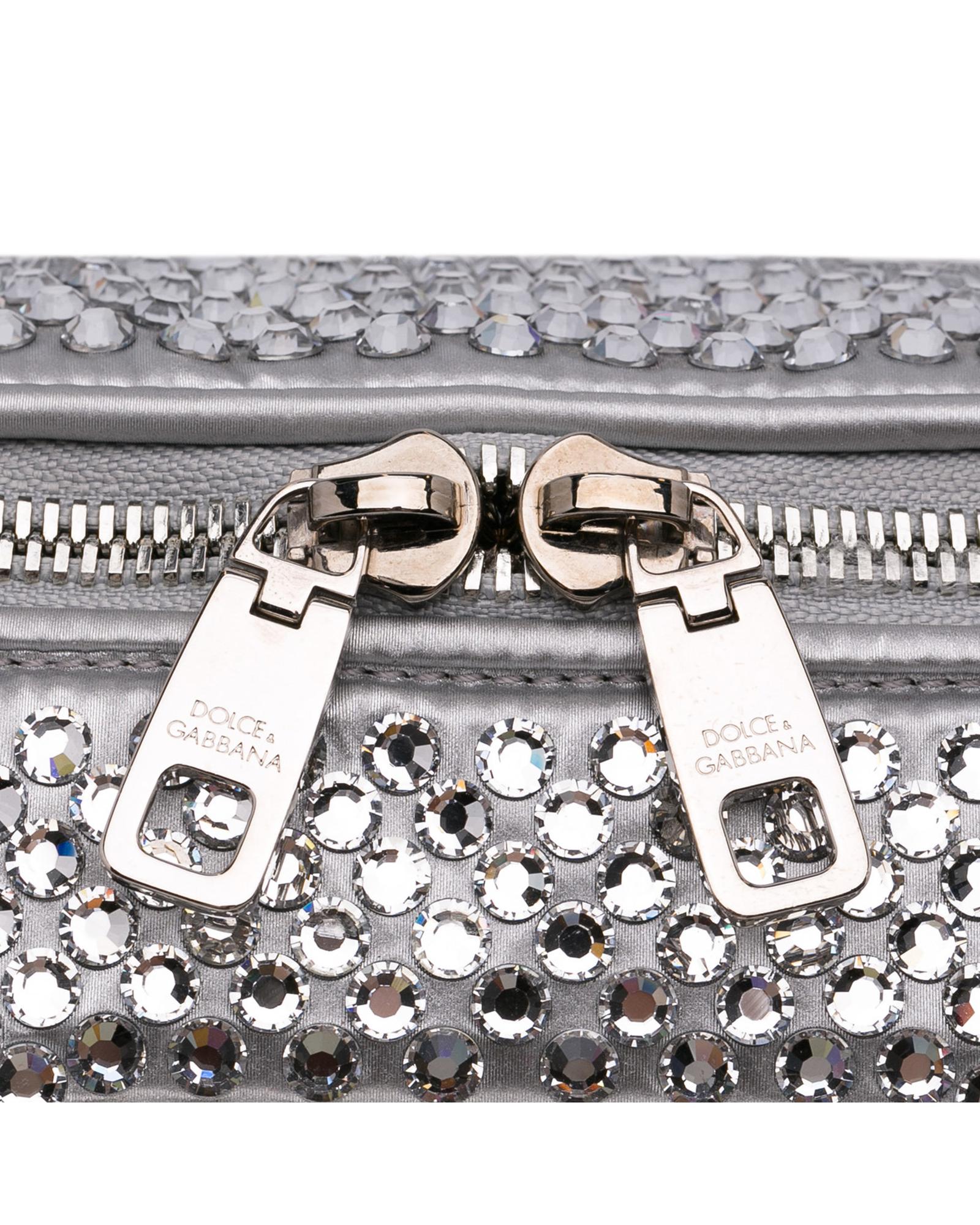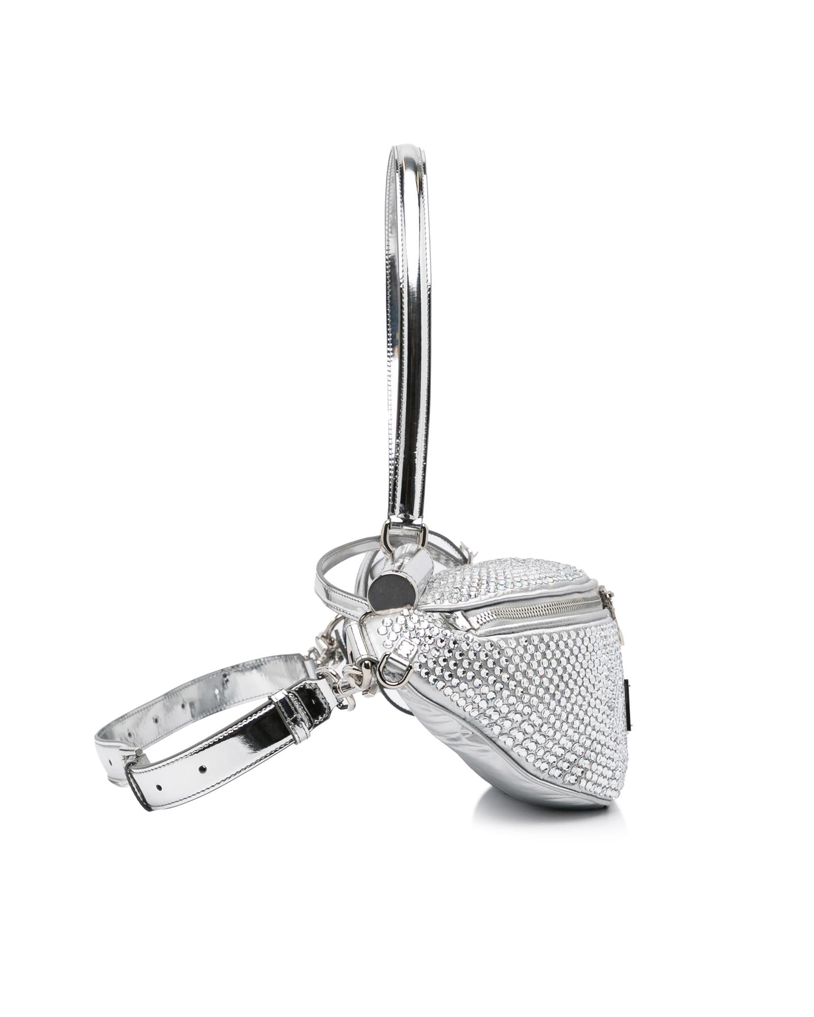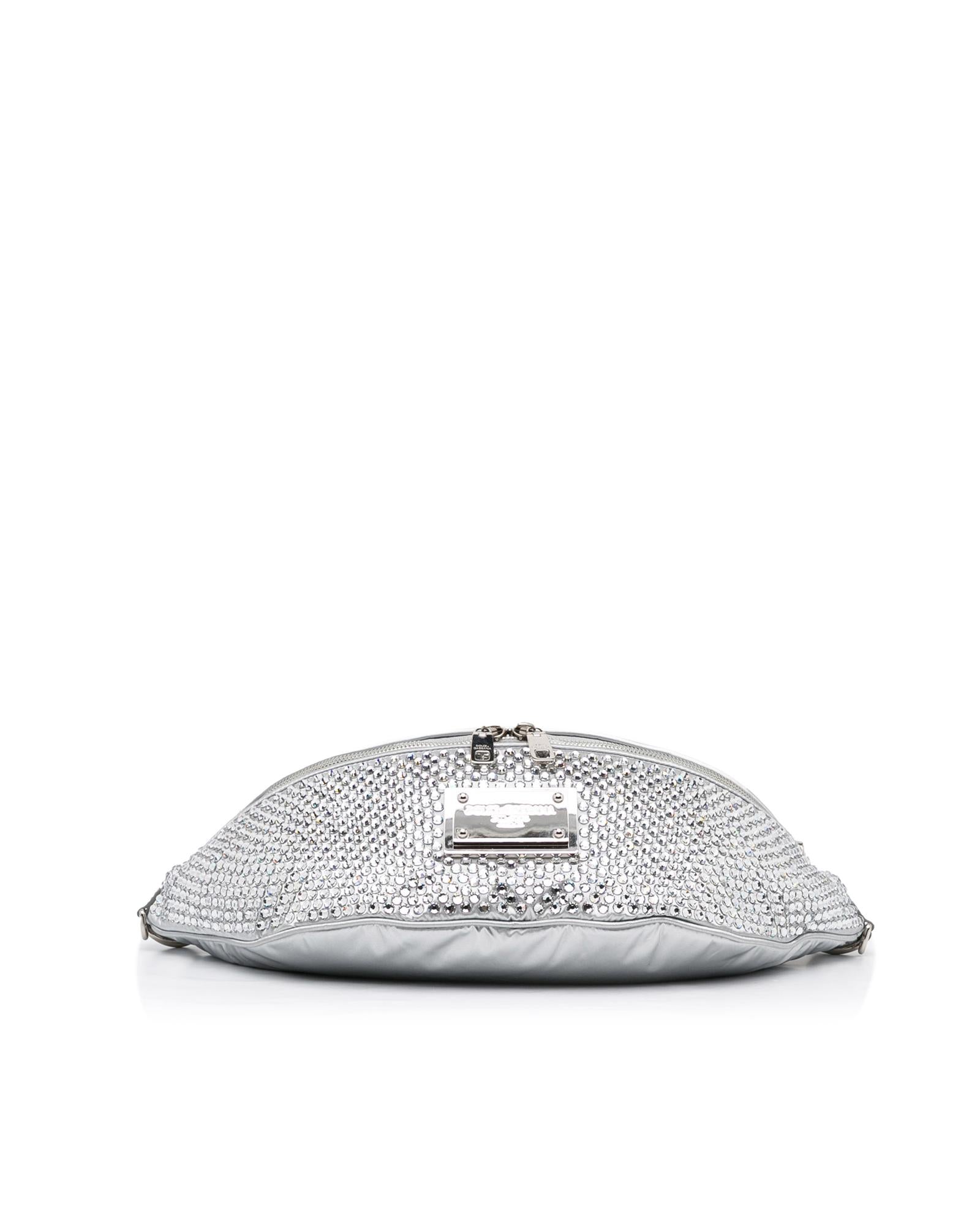 The Sicily belt bag features a crystal-embellished leather body silver-tone hardware logo plaque a single flat top handle an adjustable waist strap an adjustable detachable shoulder strap a front zip closure and interior zip and slip pockets.
