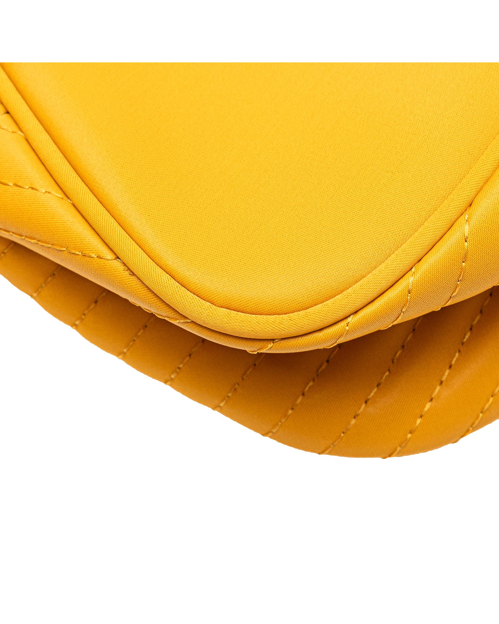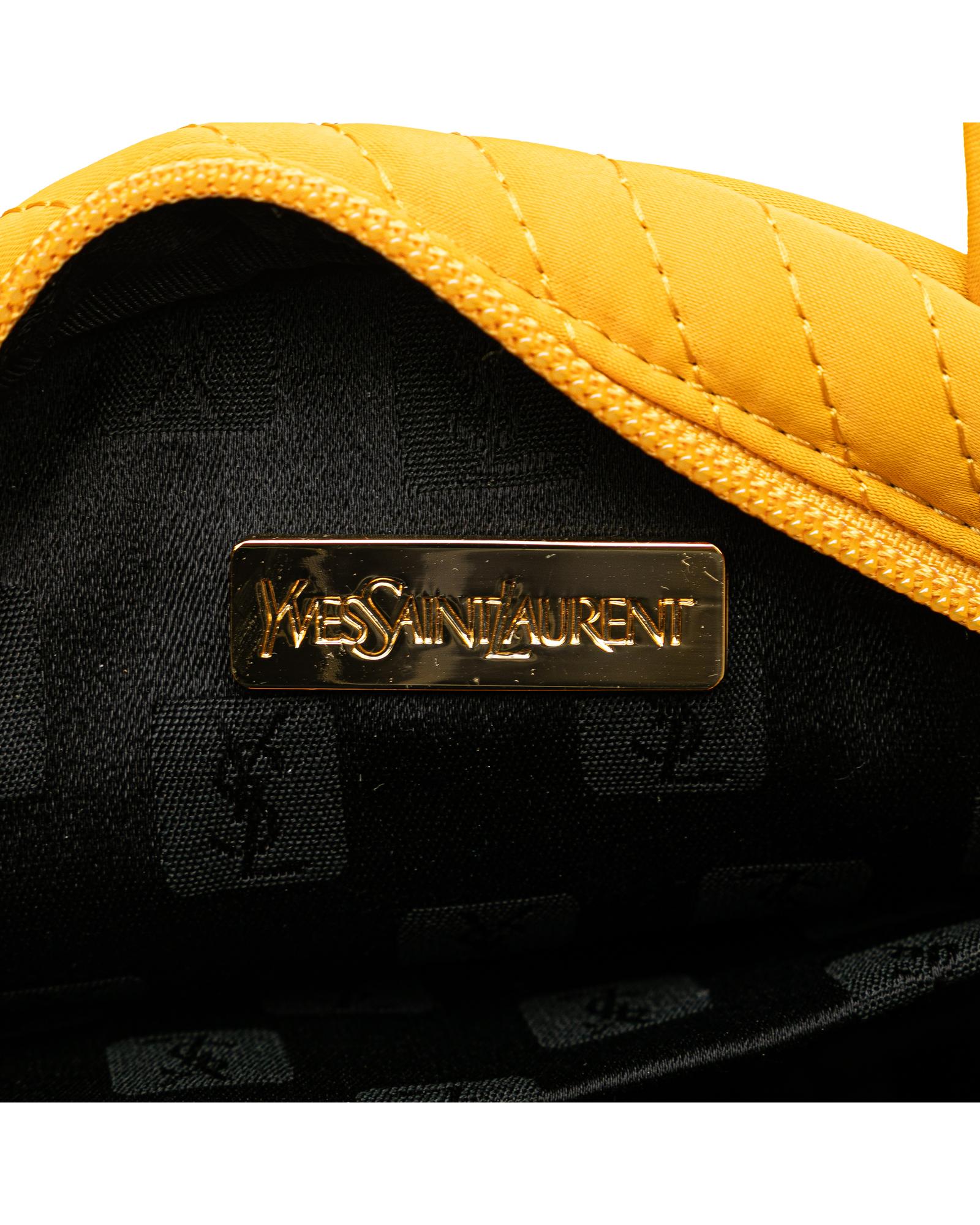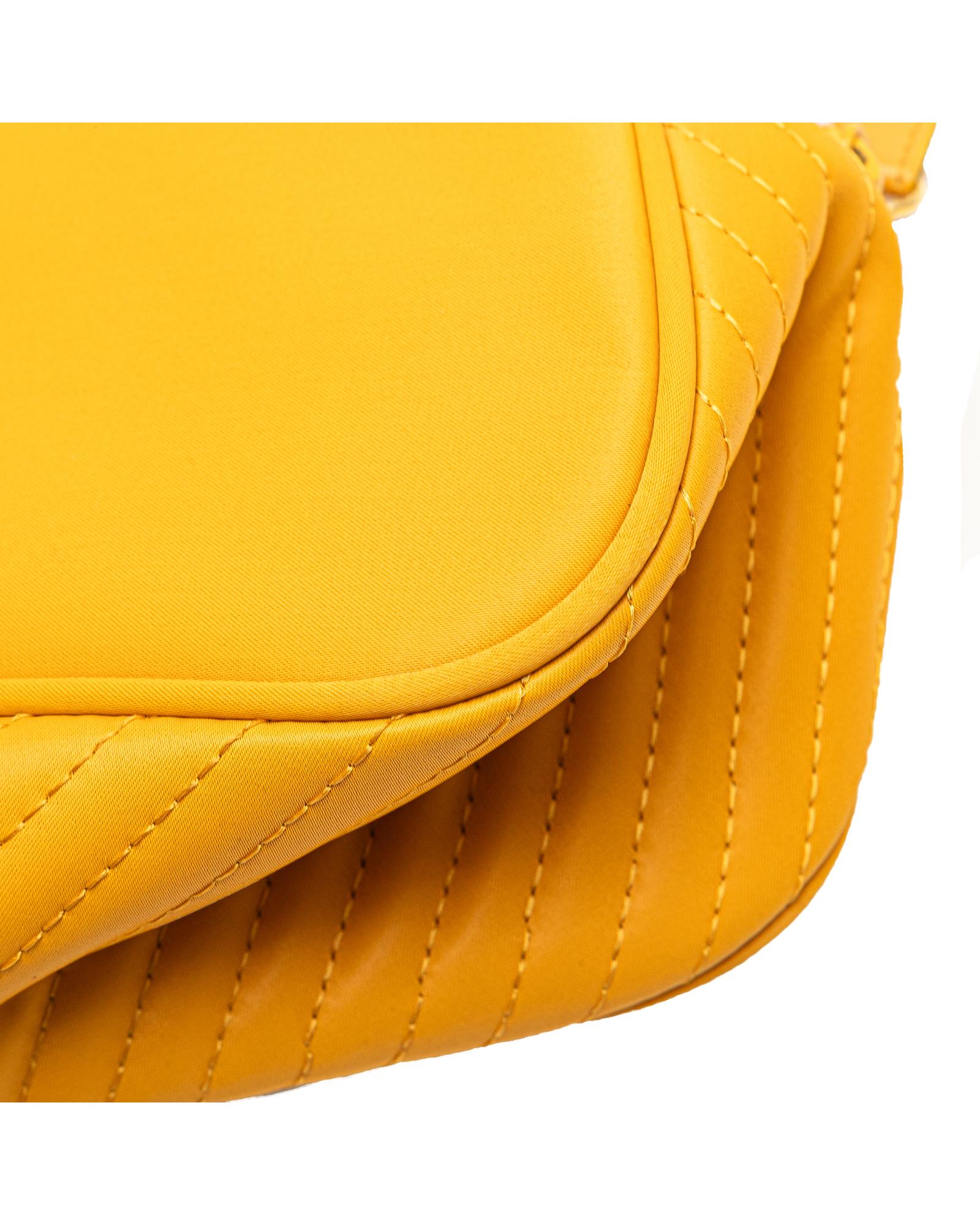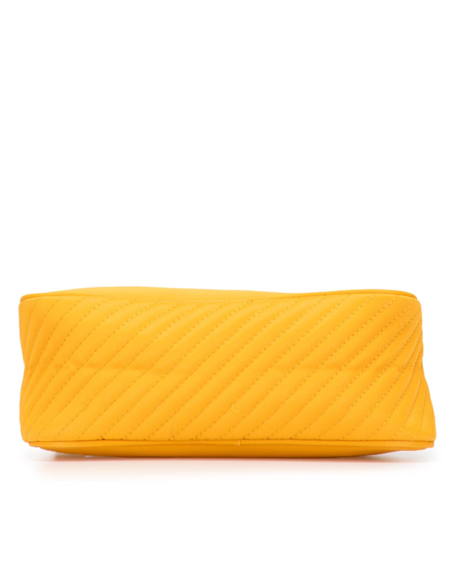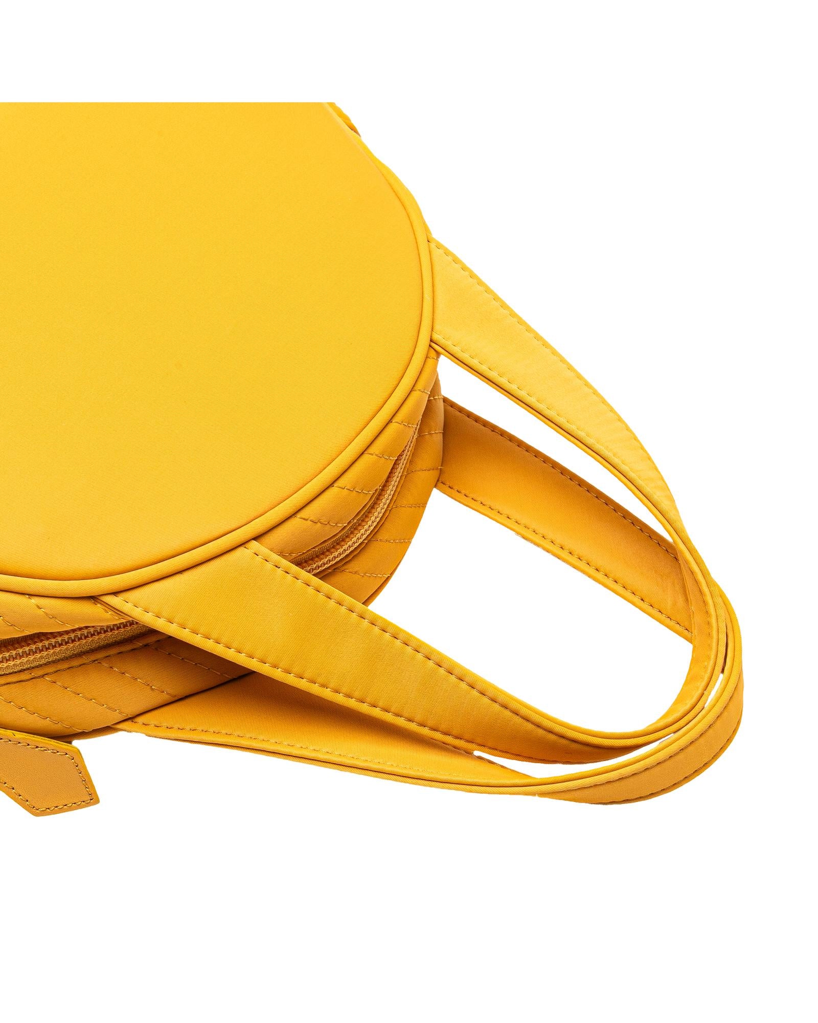 This handbag features a nylon body flat handles a top zip closure and an interior slip pocket.
