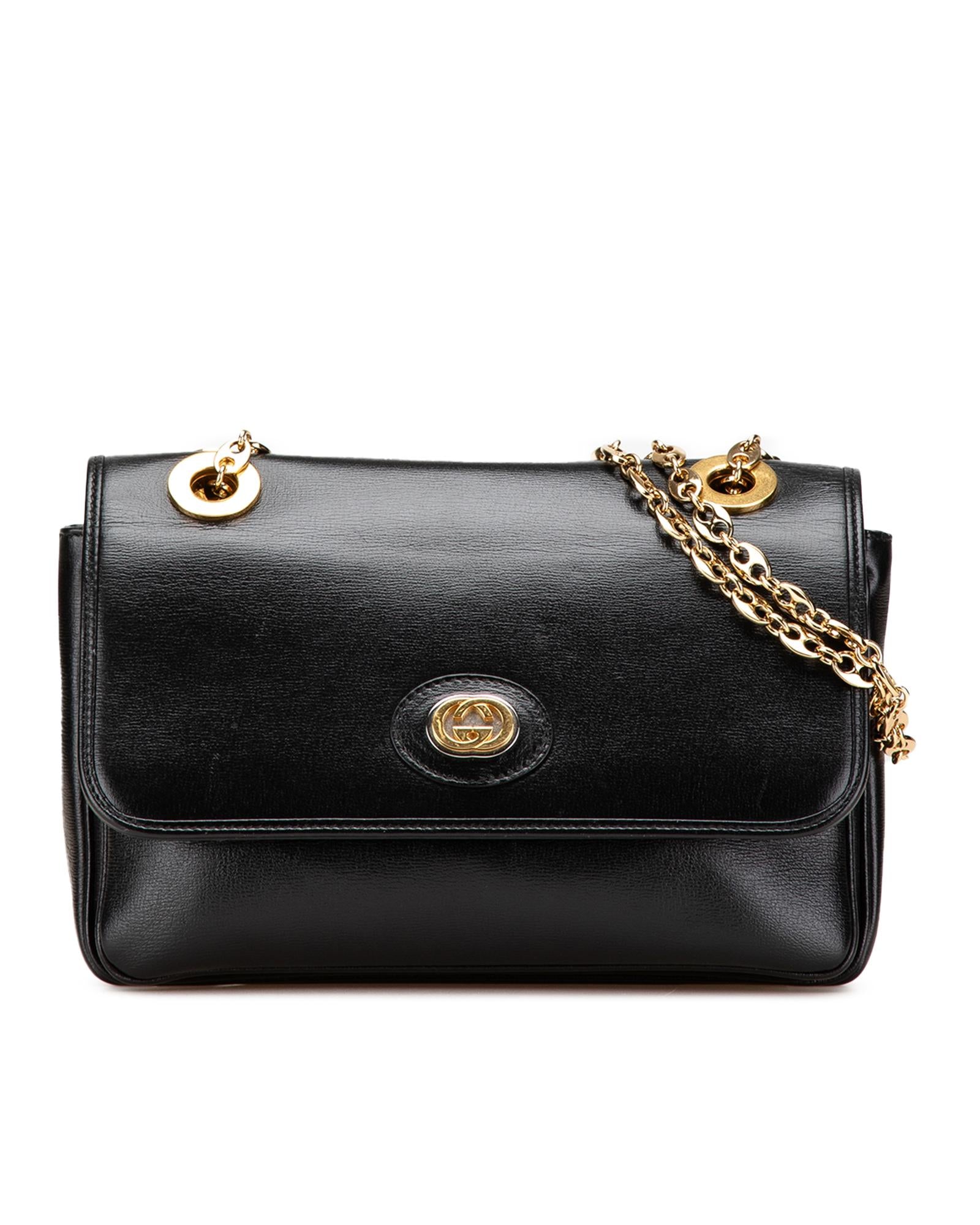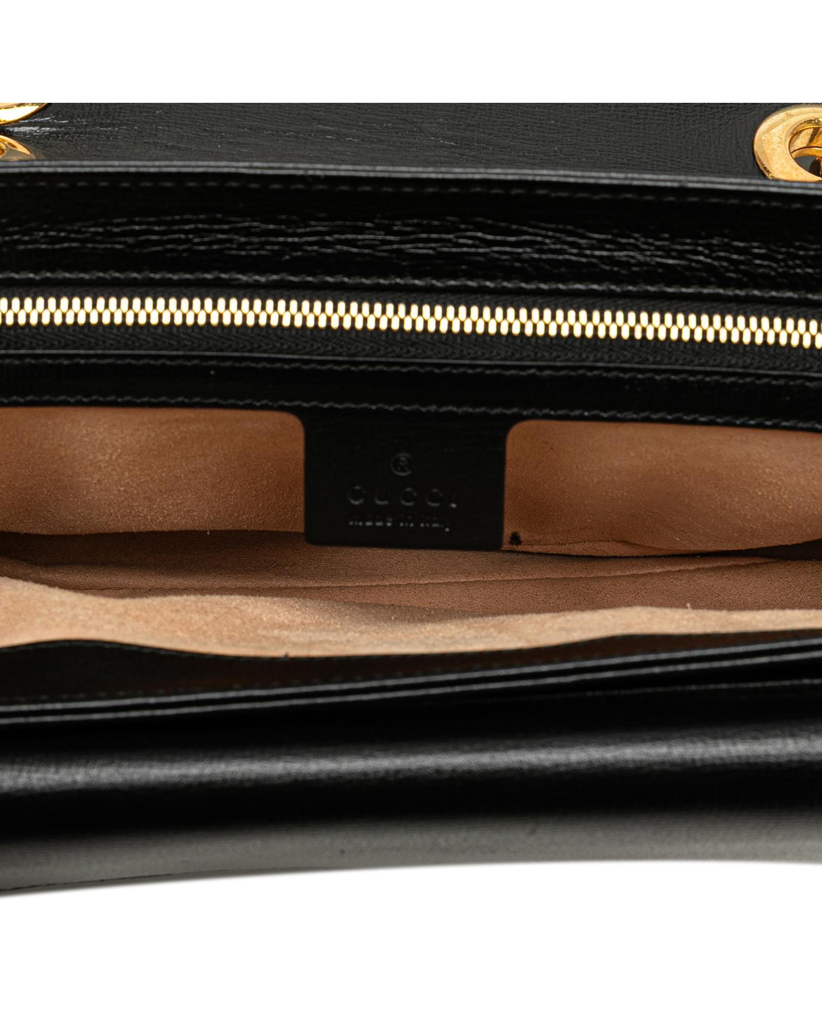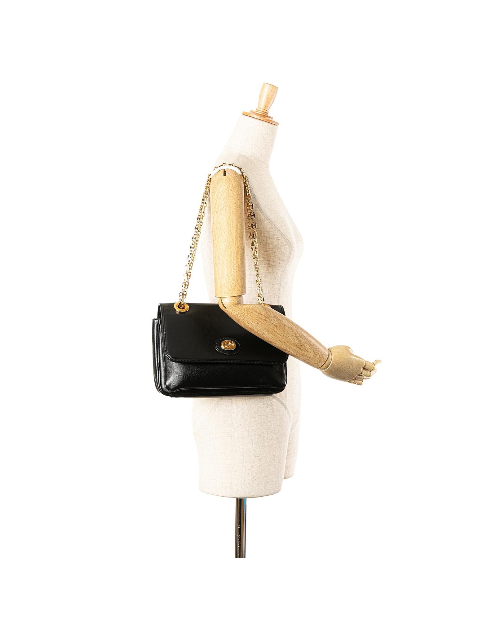 The Marina features a leather body a chain-link strap a top flap with magnetic snap closure and an interior zip pocket.Brand: Gucci Vintage