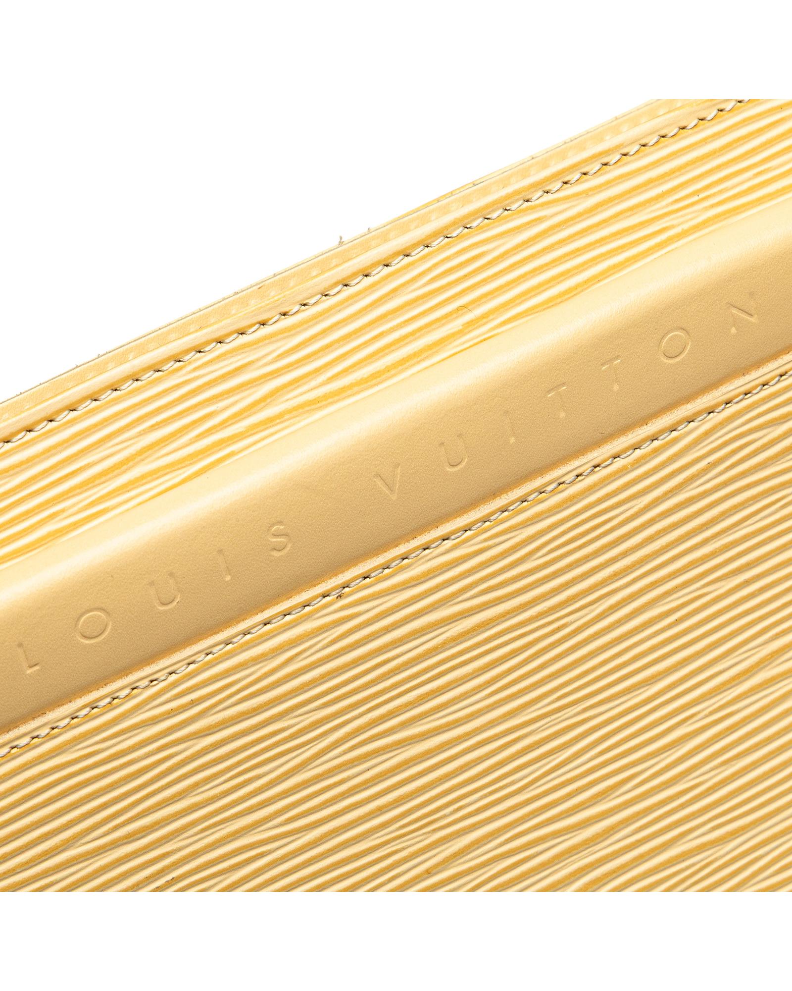 The Saint Tropez features an epi leather body flat leather straps an open top with a magnetic clasp and an interior zip pocket.Brand: Louis Vuitton Vintage