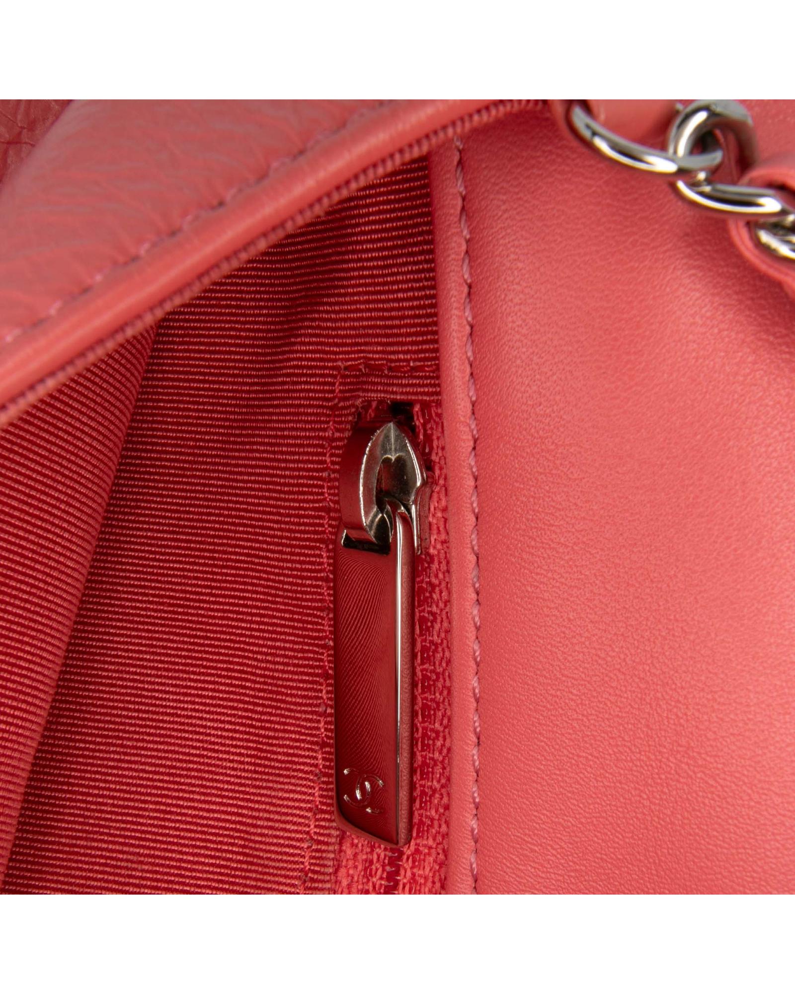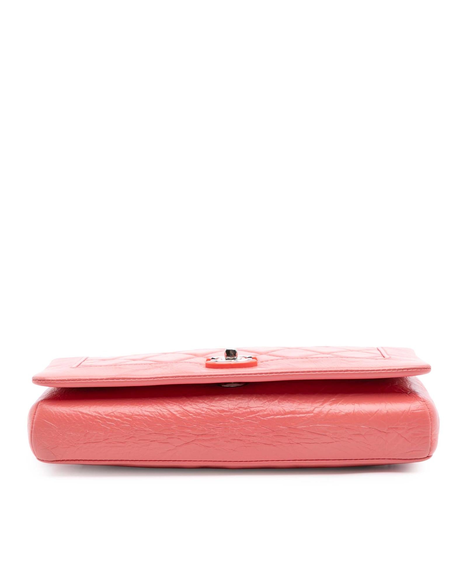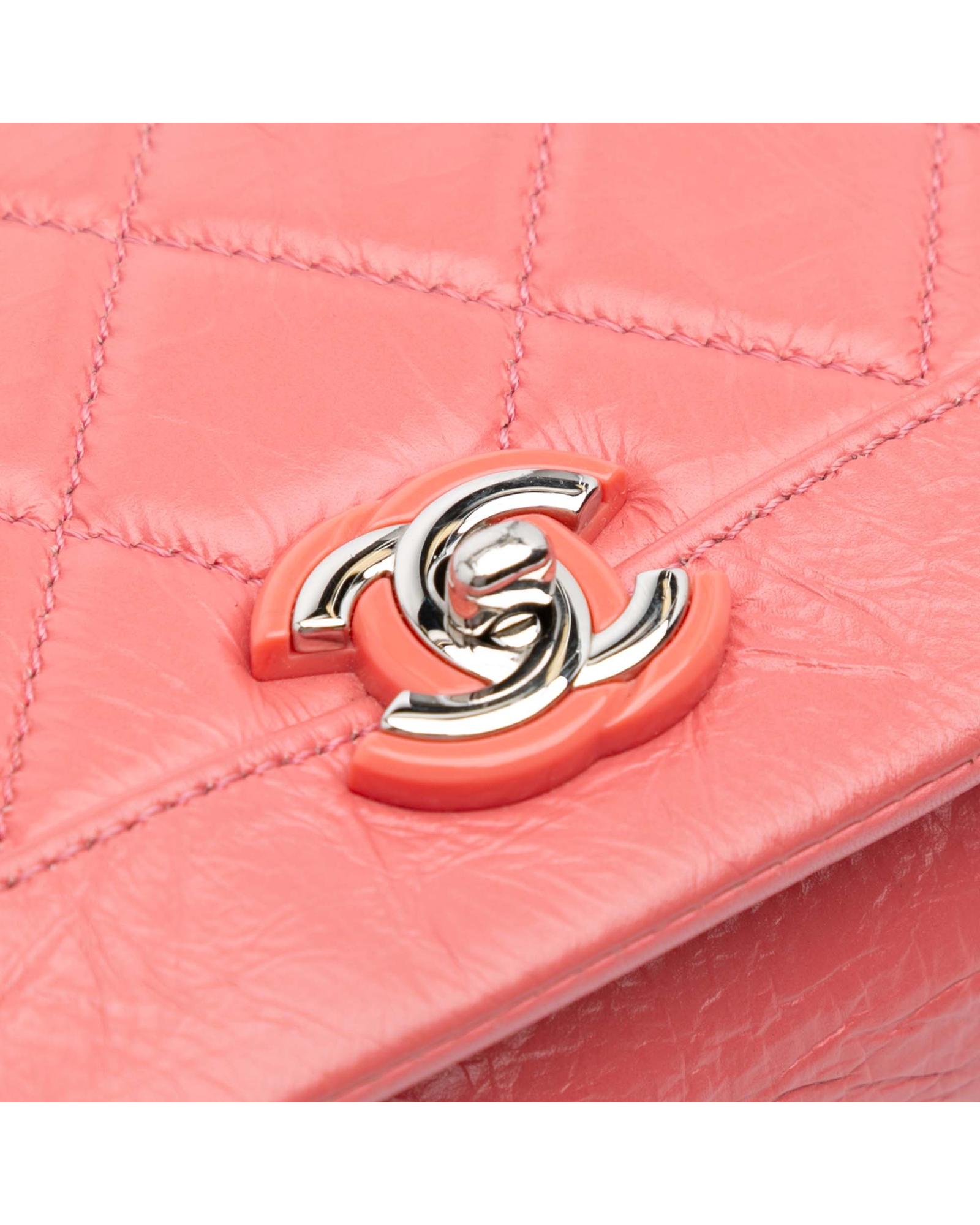 This shoulder bag features a quilted crumpled calf leather body leather-woven chain link straps a top flap with CC turn-lock closure an exterior back slip pocket and an interior zip pocket.Brand: Chanel Vintage