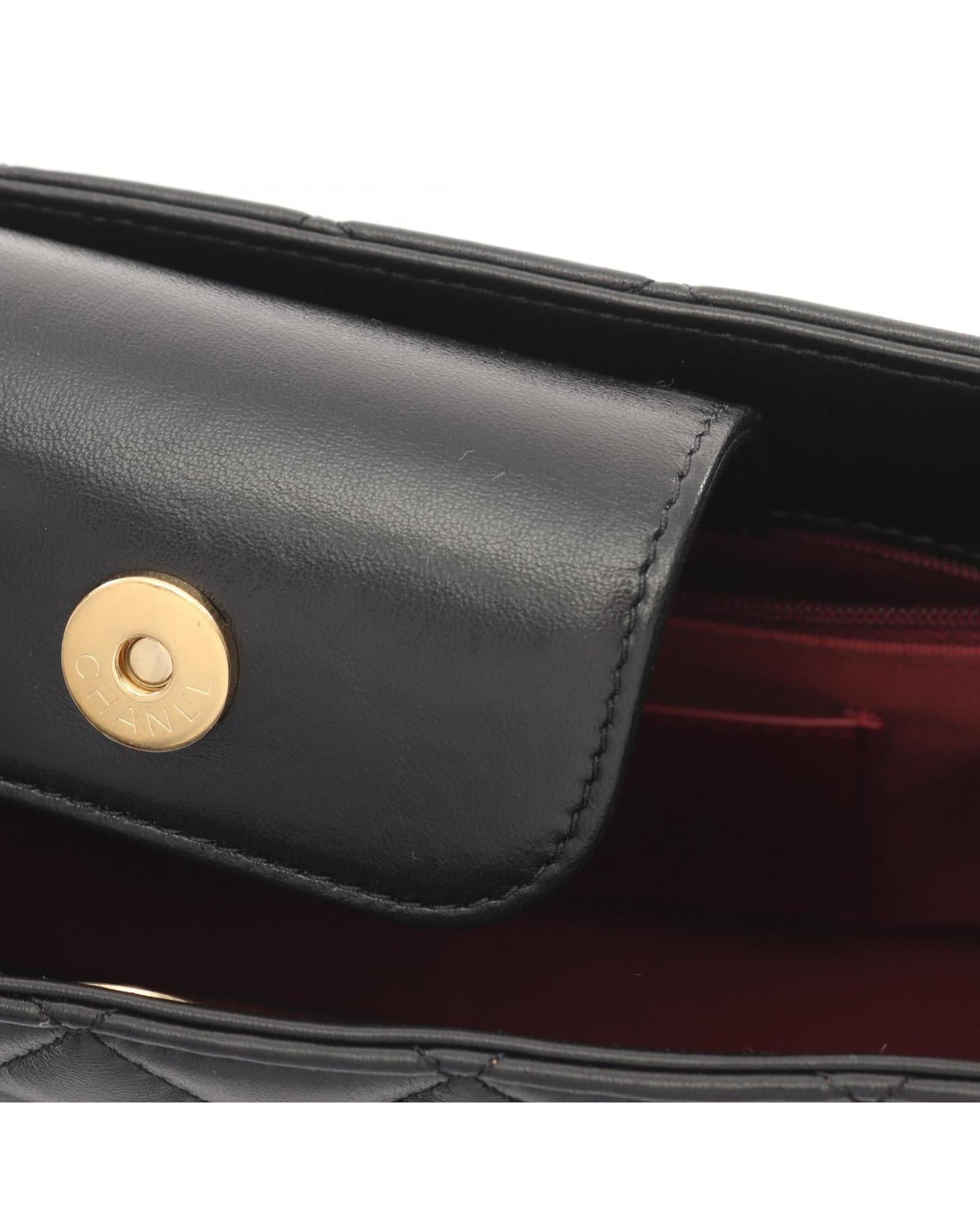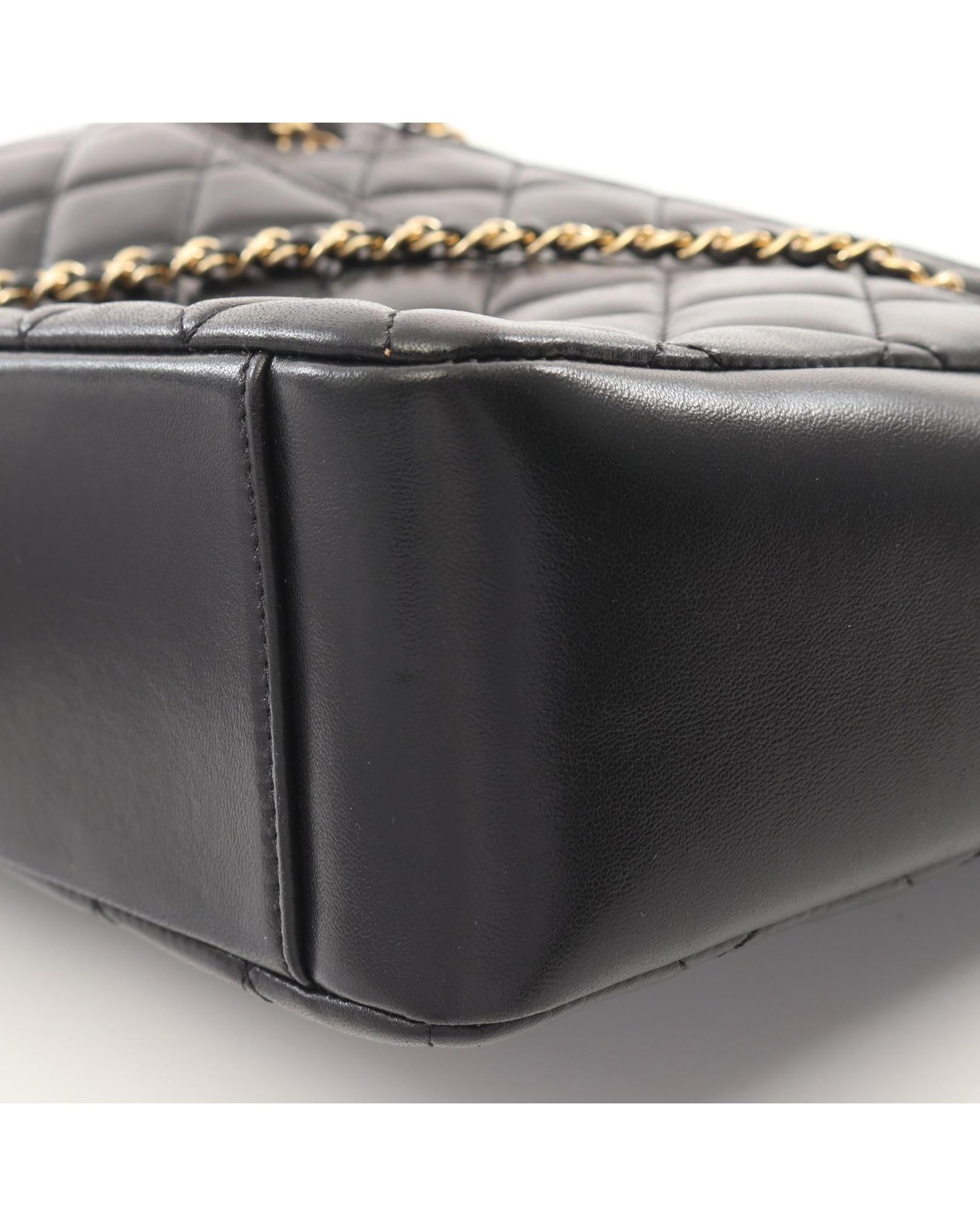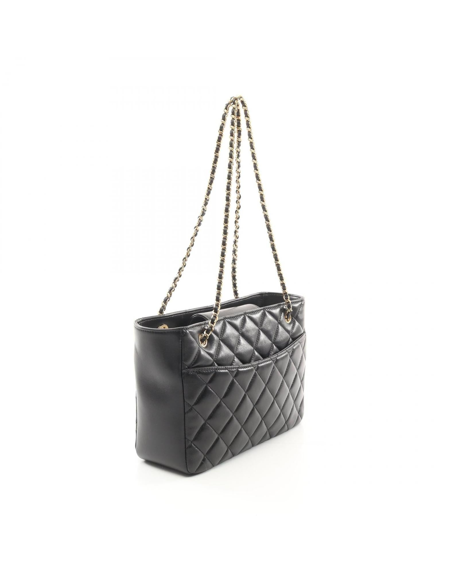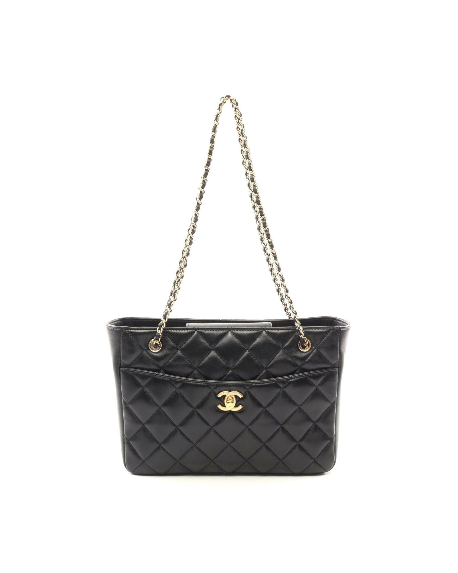 Pre-owned Quilted Leather Shoulder Bag with Chain Straps and Exterior Pocket