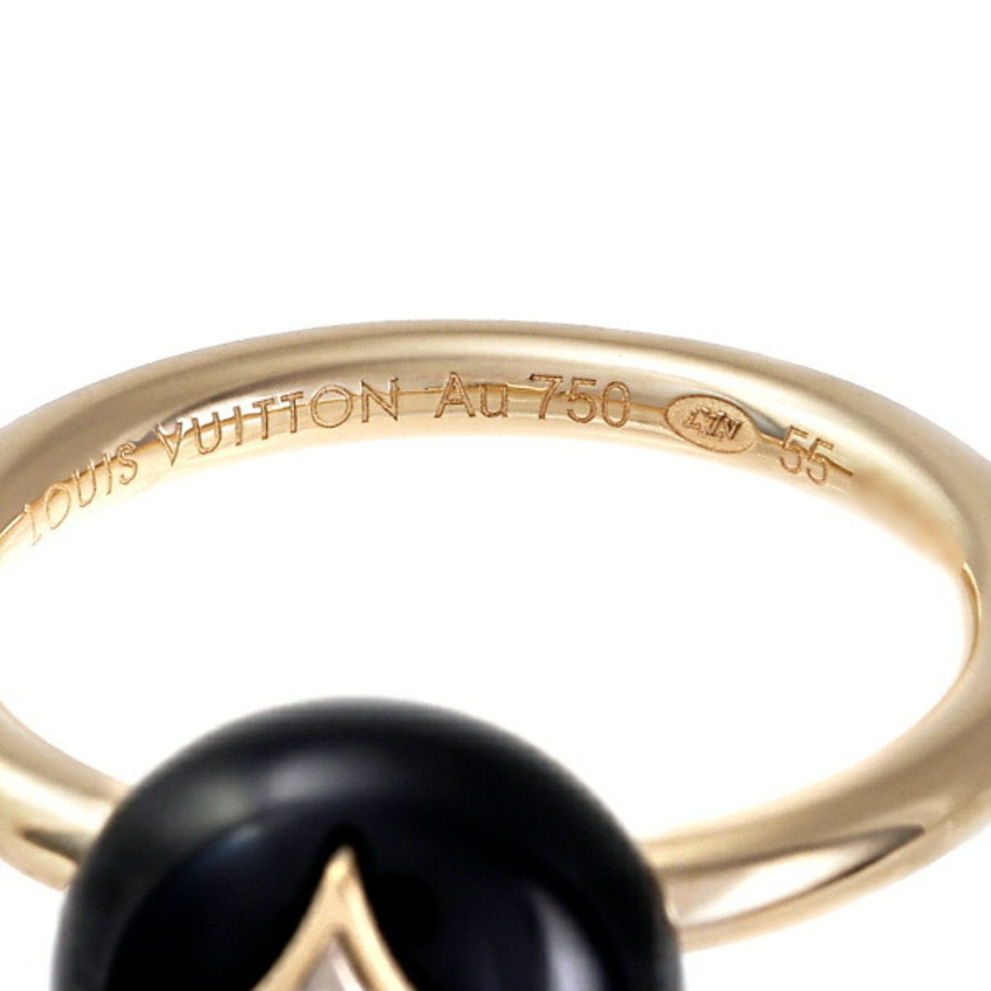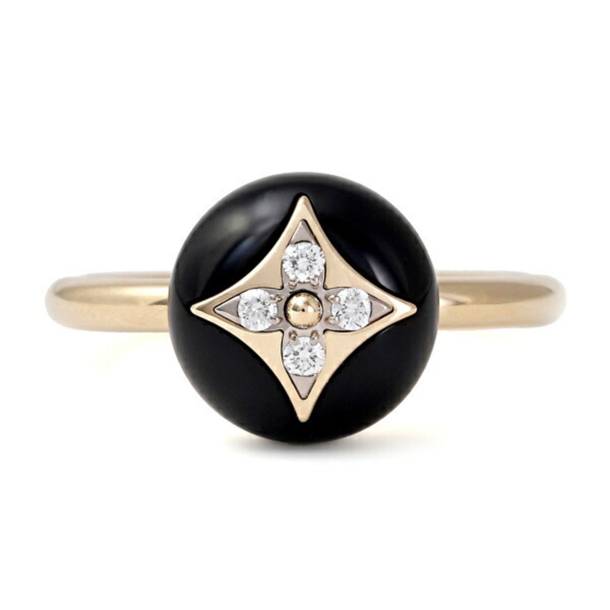 This Color Blossom stacking ring is crafted in 18 karat white and yellow gold. The polished black onyx stone is set with an emblematic Monogram flower composed of four sparkling diamonds.