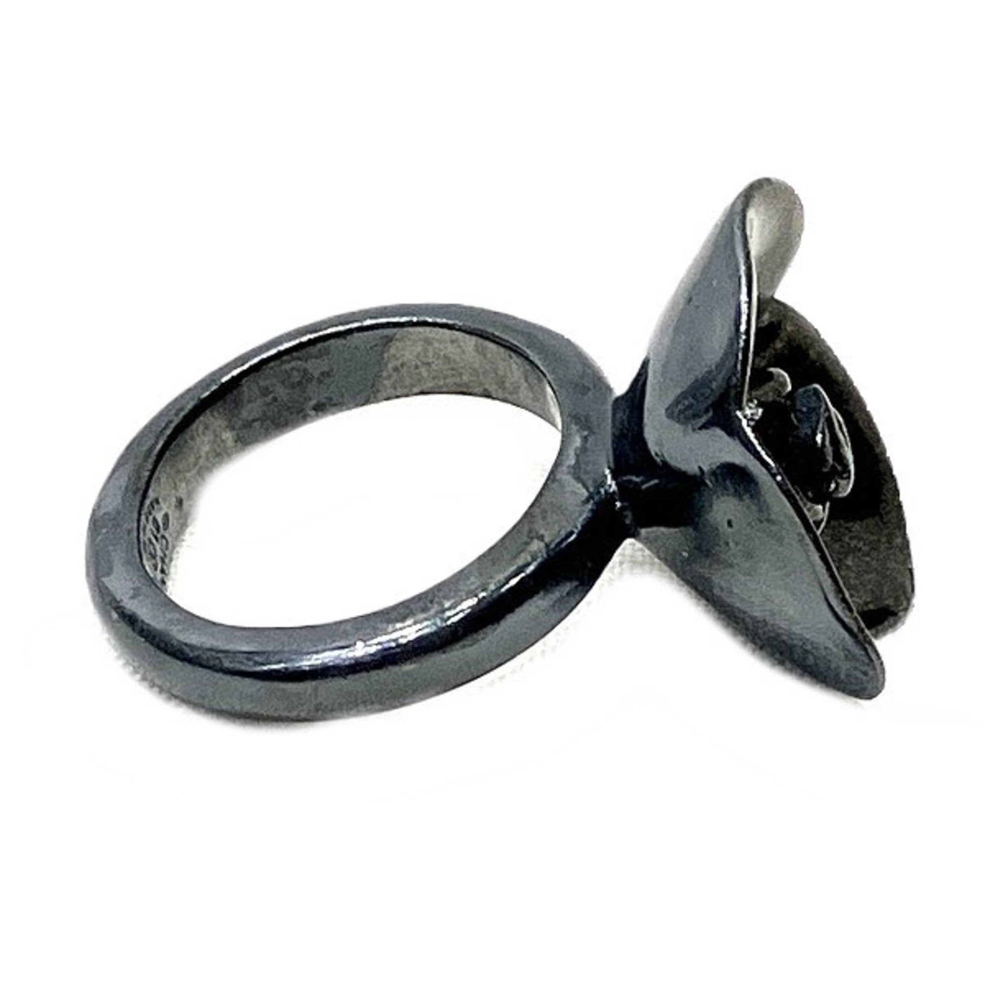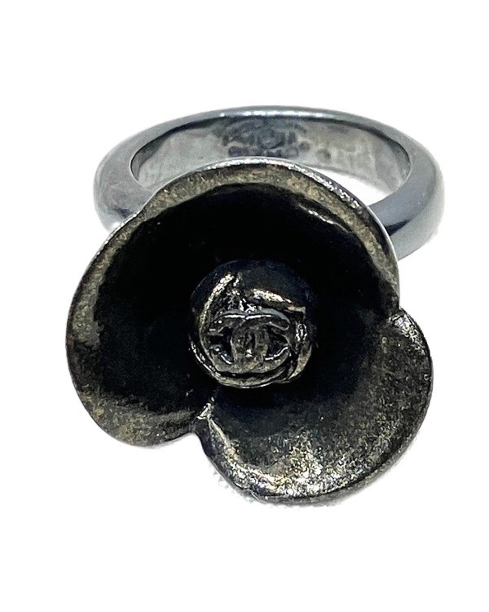 The Chanel Camellia band ring is an elegant piece for women crafted from metal in a classic black color. The Camellia line is known for its sophisticated design making this band ring a stylish and timeless accessory.