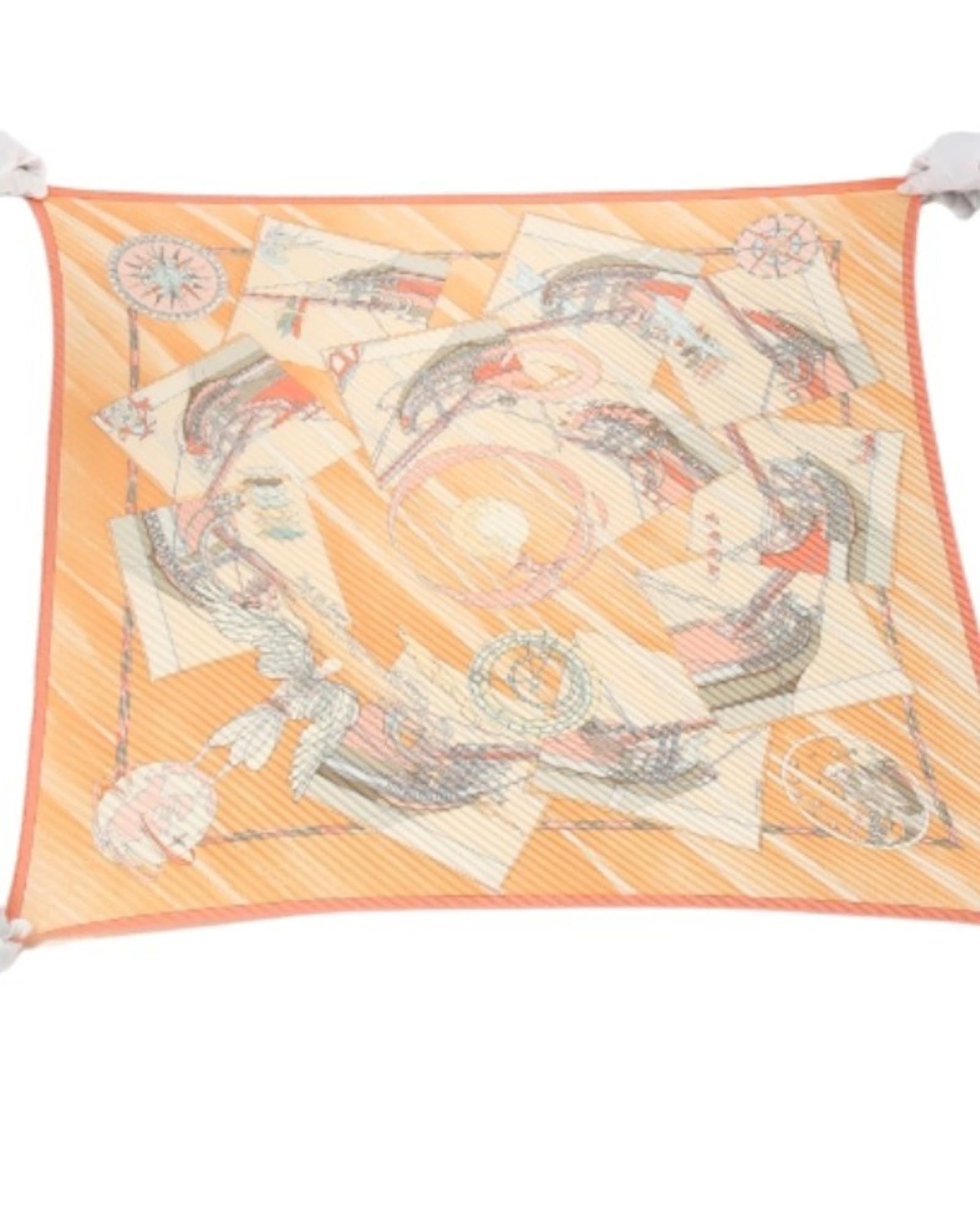 The Hermes scarf designed for women sports a vibrant orange hue and is crafted from luxurious silk exuding elegance and sophistication.