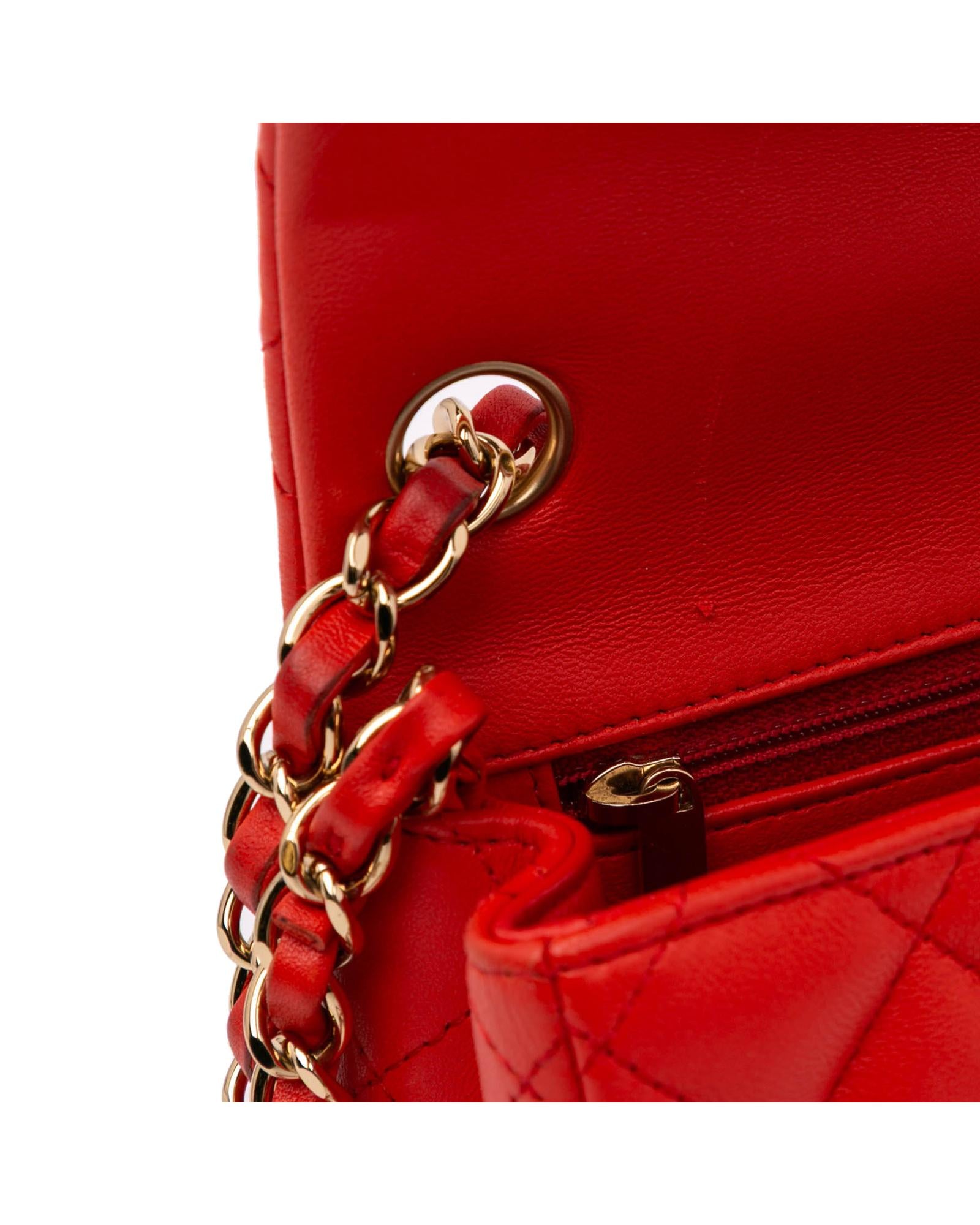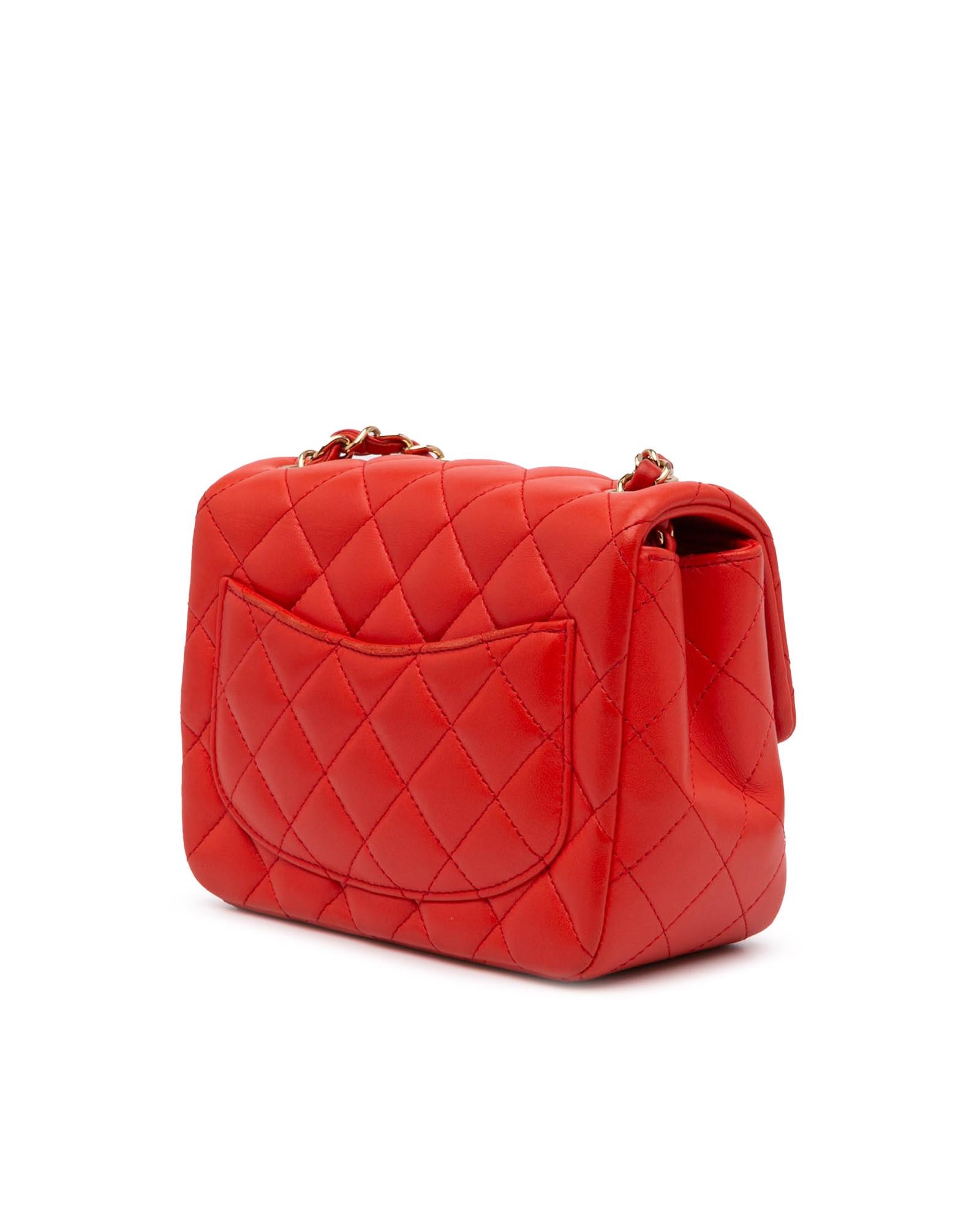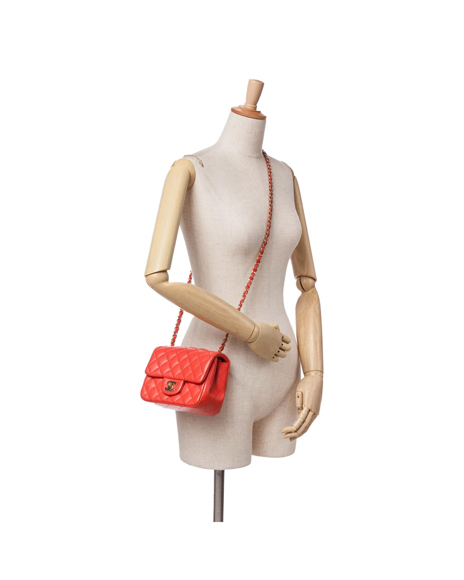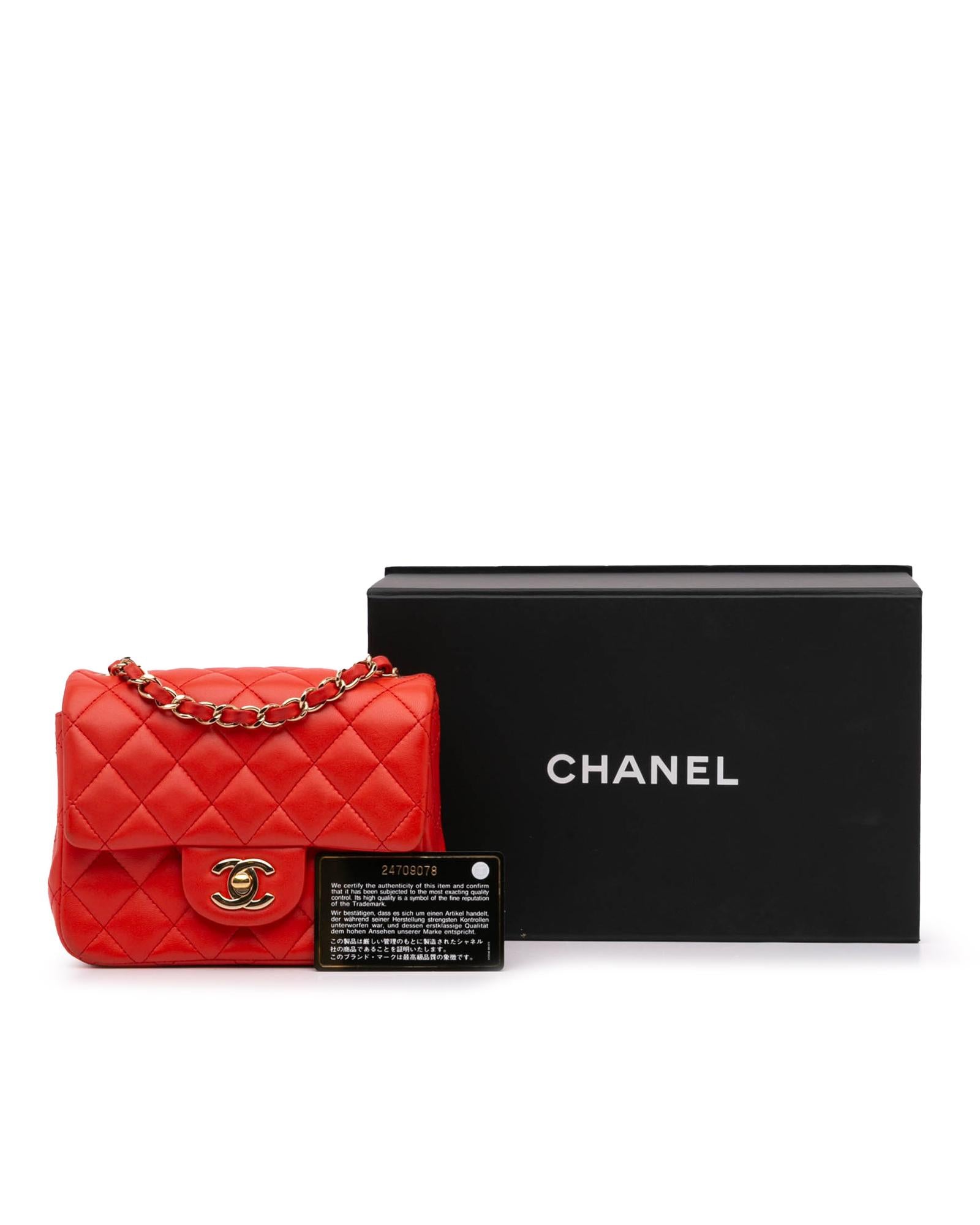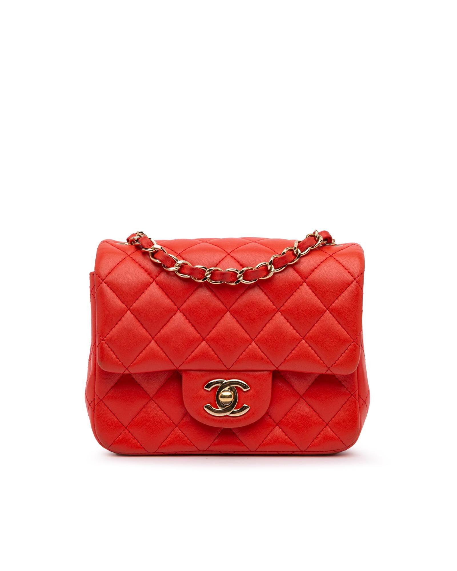Mini Square Classic Lambskin Single Flap Bag with Chain Strap