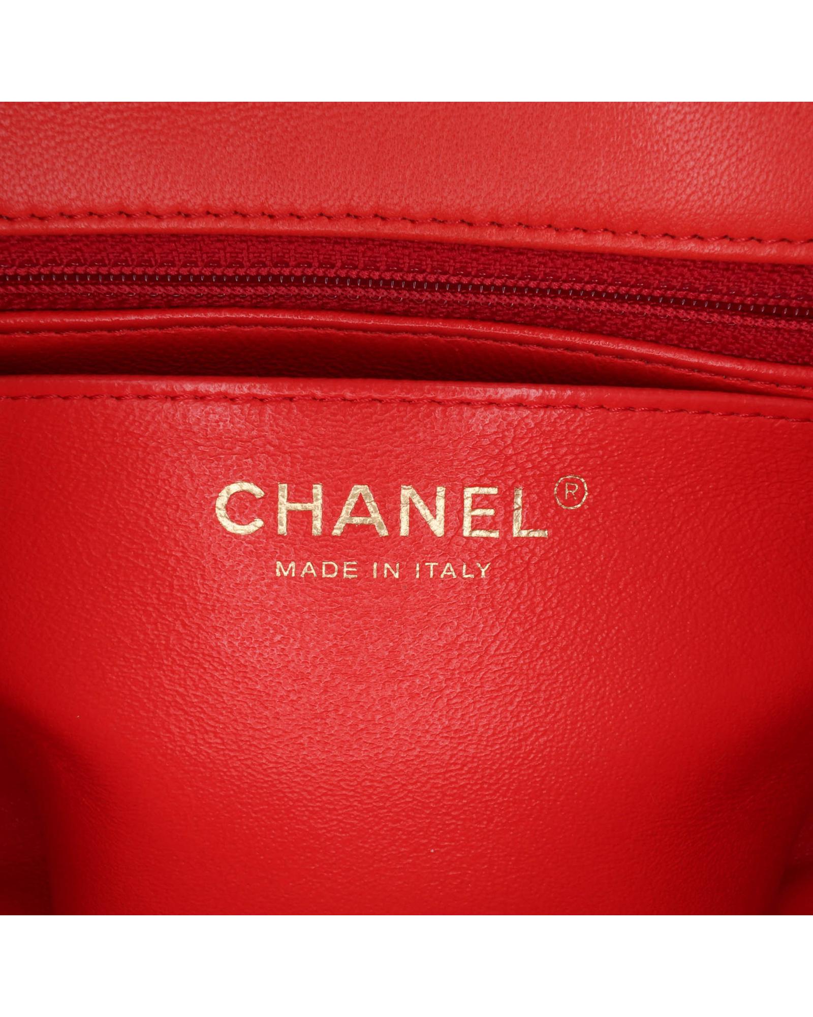The Square Flap features a lambskin leather body a leather woven chain shoulder strap a front flap with turnlock closure an exterior back slip pocket and interior zip and slip pockets.Brand: Chanel