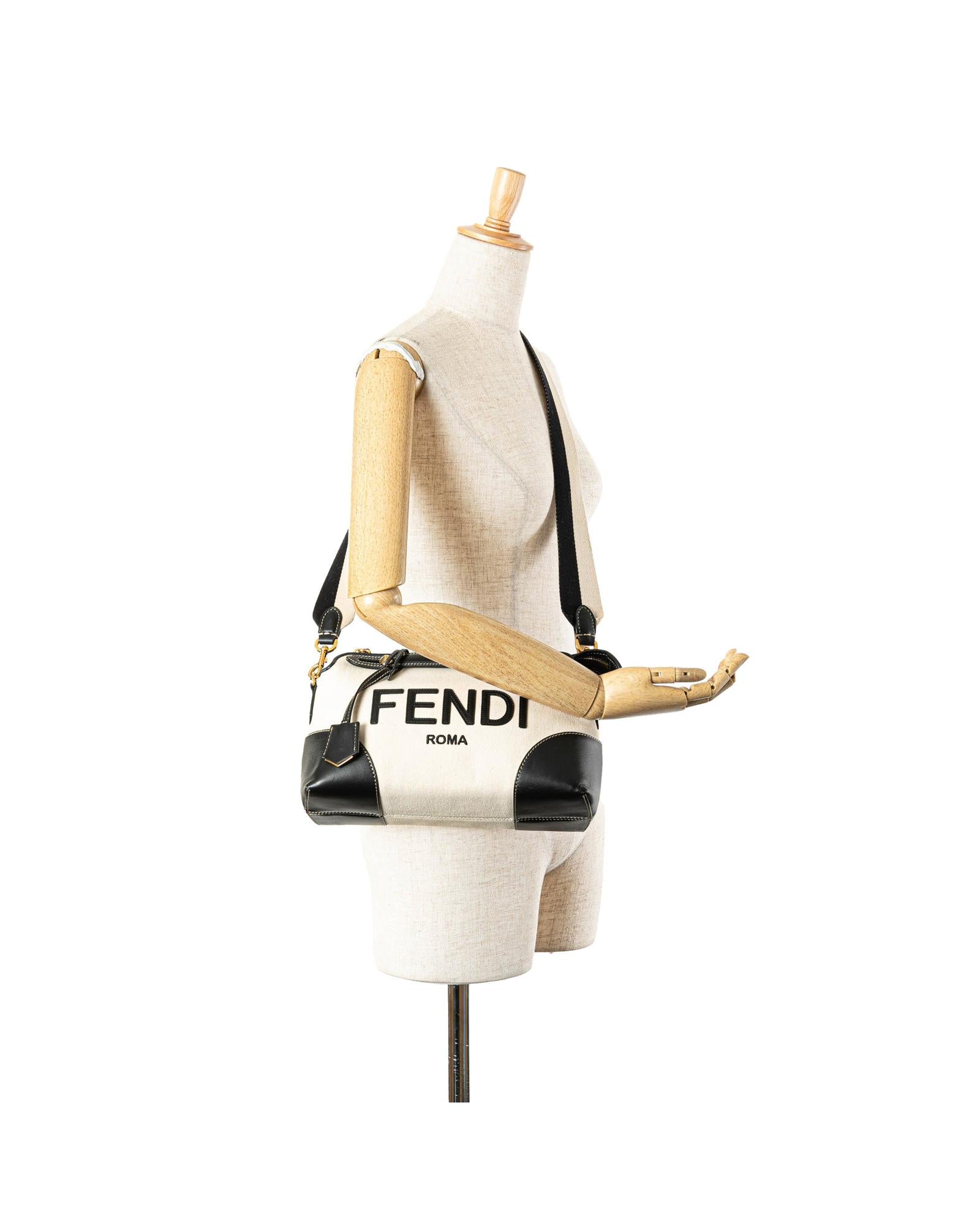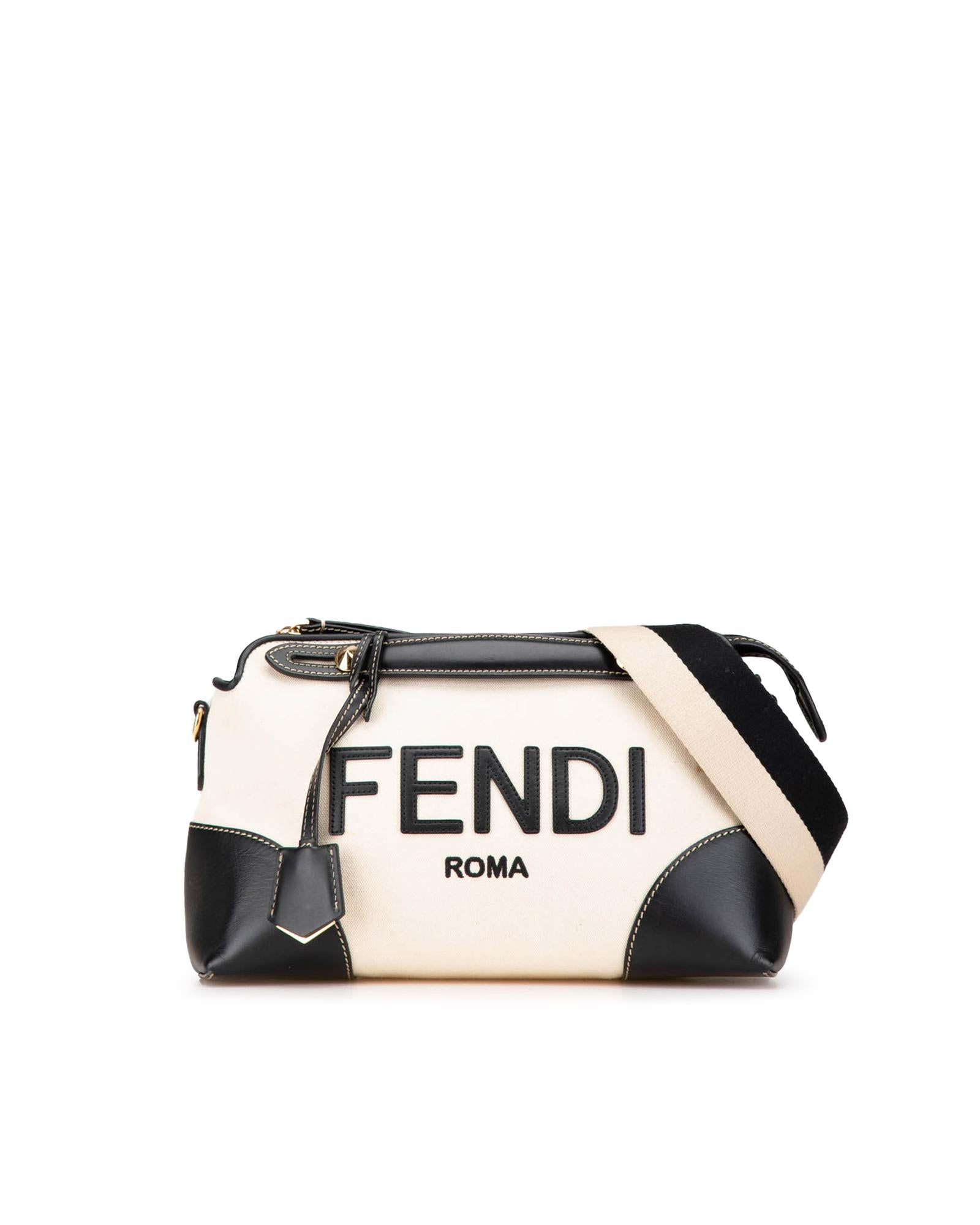 The By The Way satchel features a canvas body with leather trim flat leather handles a detachable flat strap a top zip closure and interior zip and slip pockets.Brand: Fendi