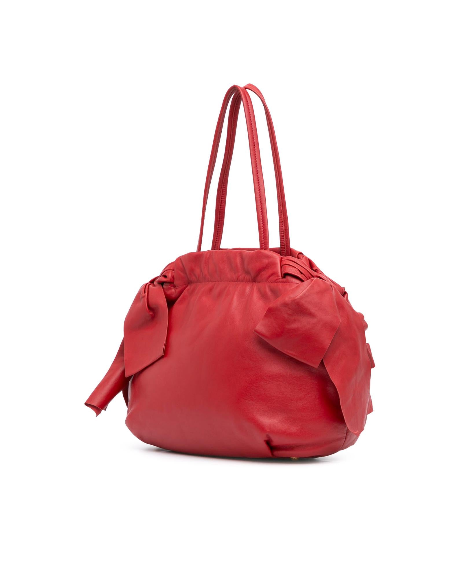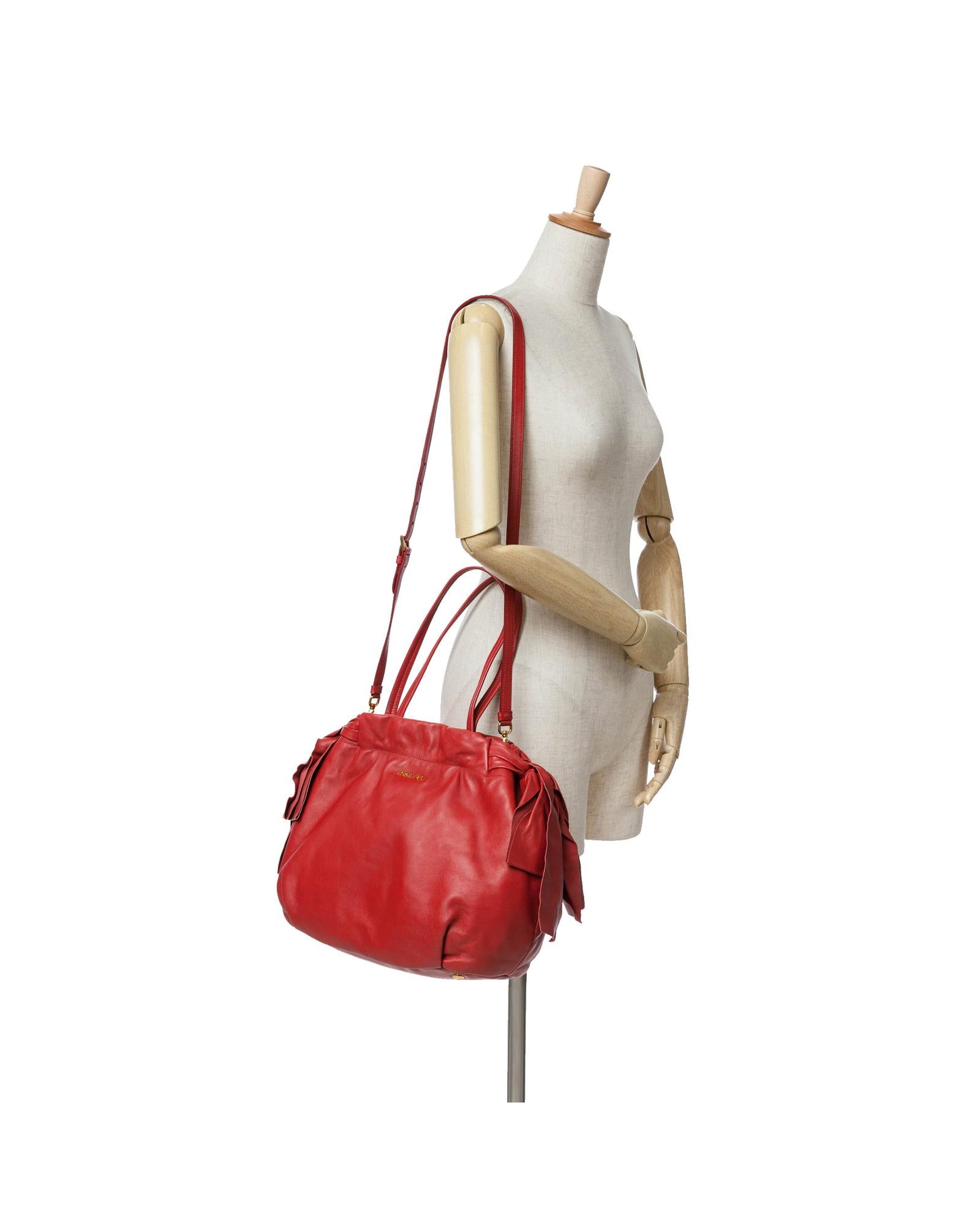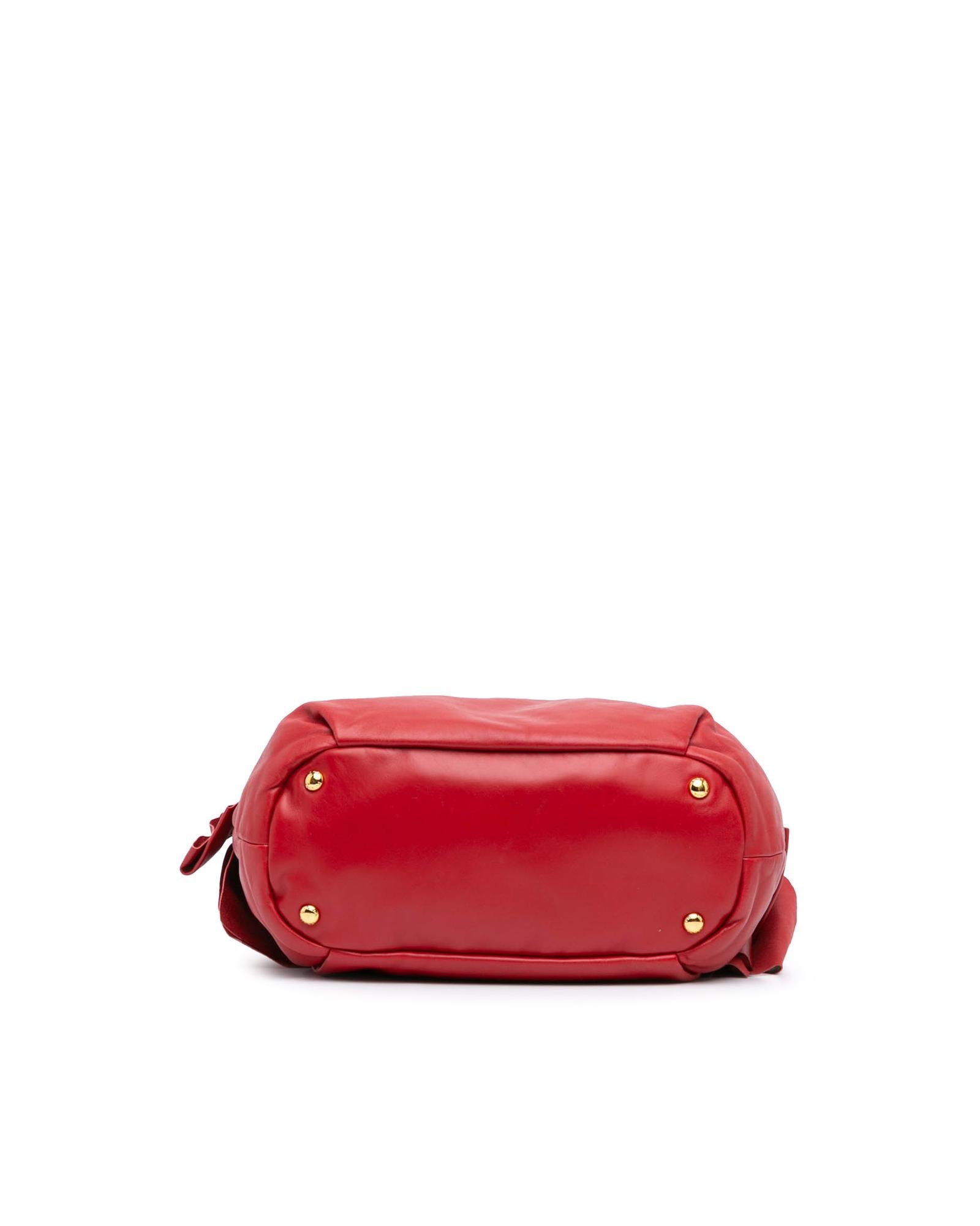 Nappa Bow Leather Satchel with Ribbon Details and Detachable Strap
