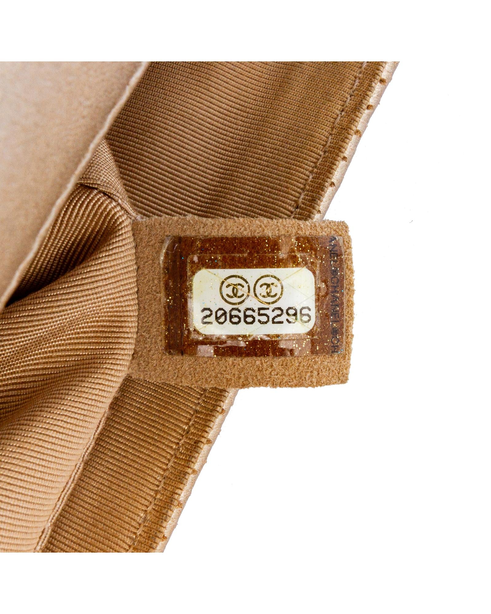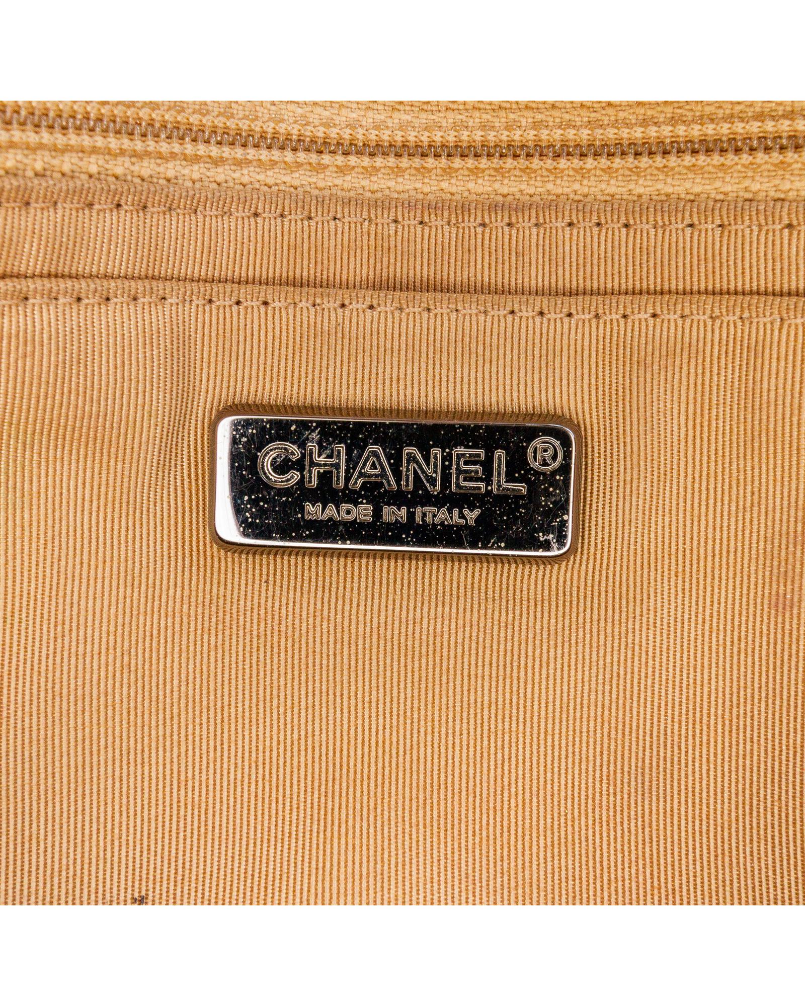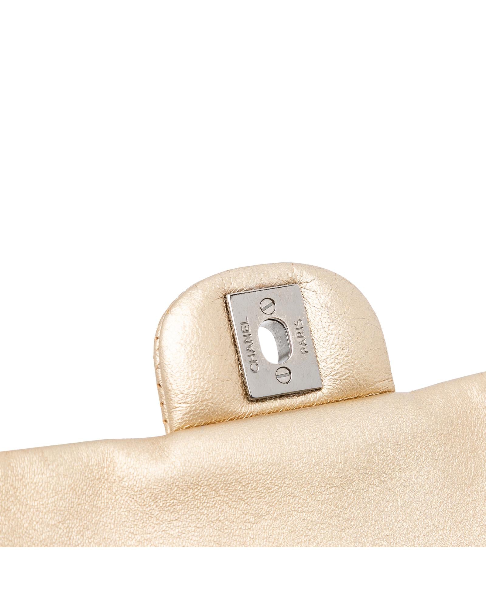 This shoulder bag features a perforated metallic lambskin leather body with eyelet embellishments leather woven chain link straps a front flap with CC turn lock closure and interior zip and slip pockets.Brand: Chanel